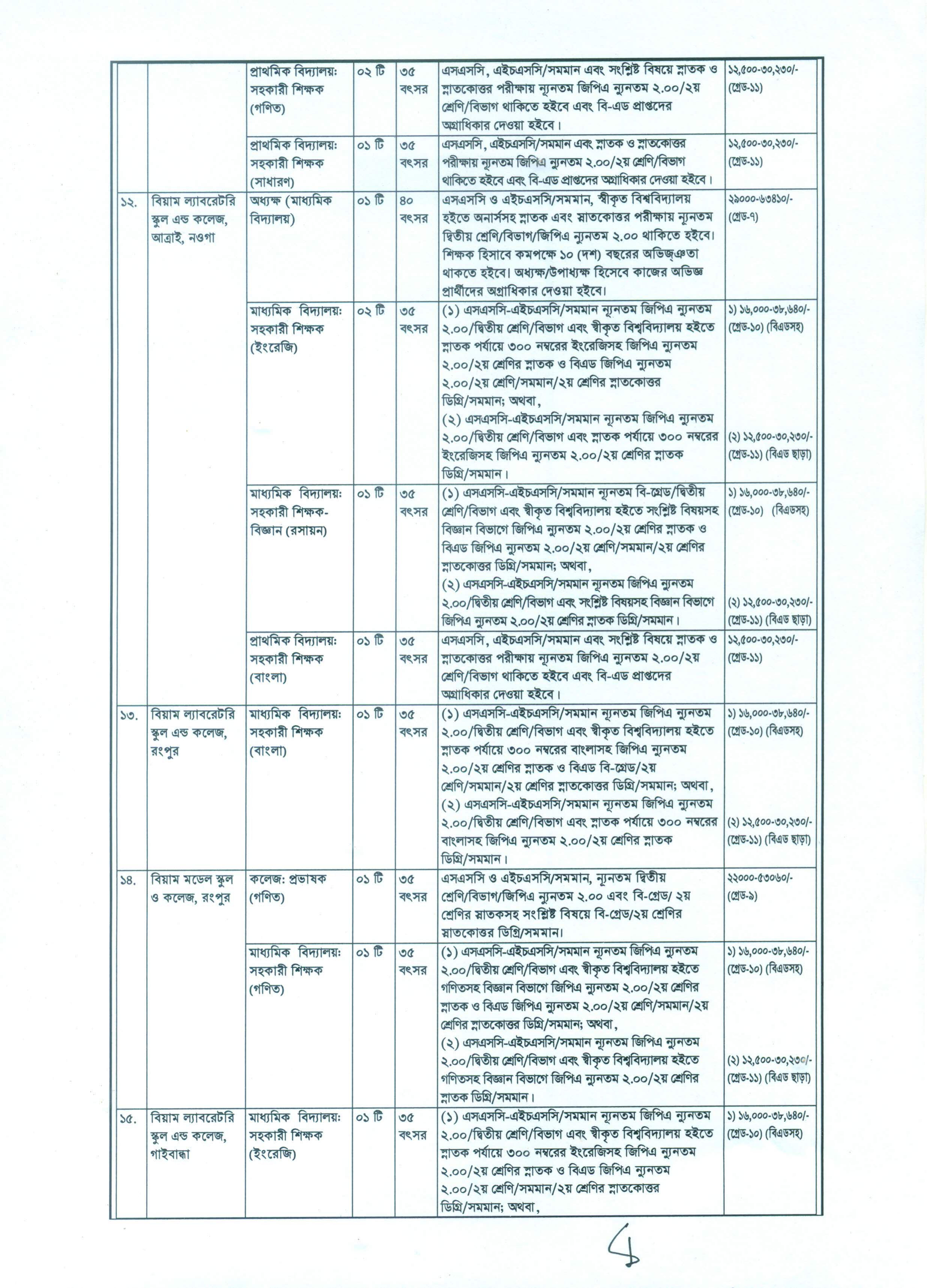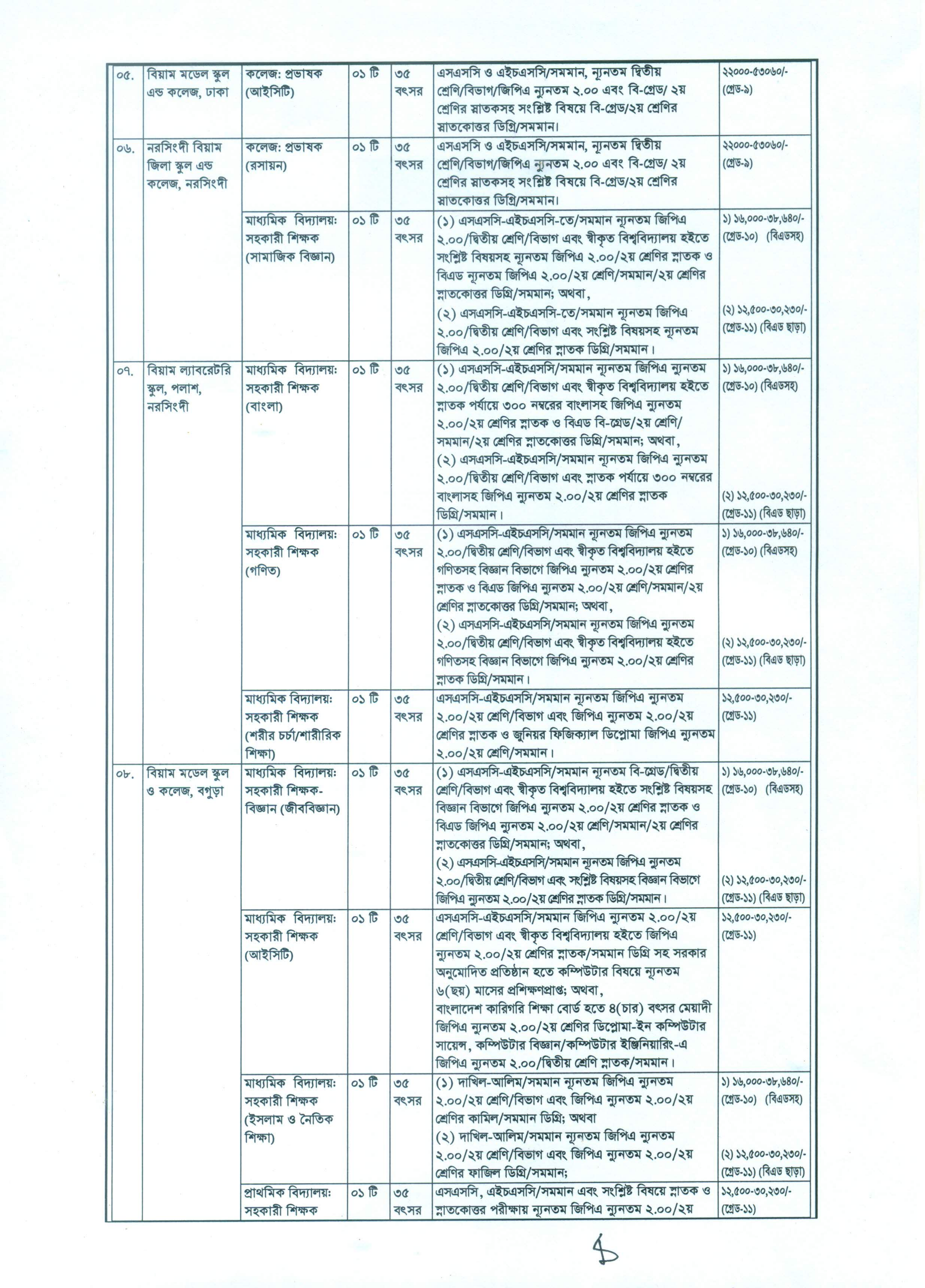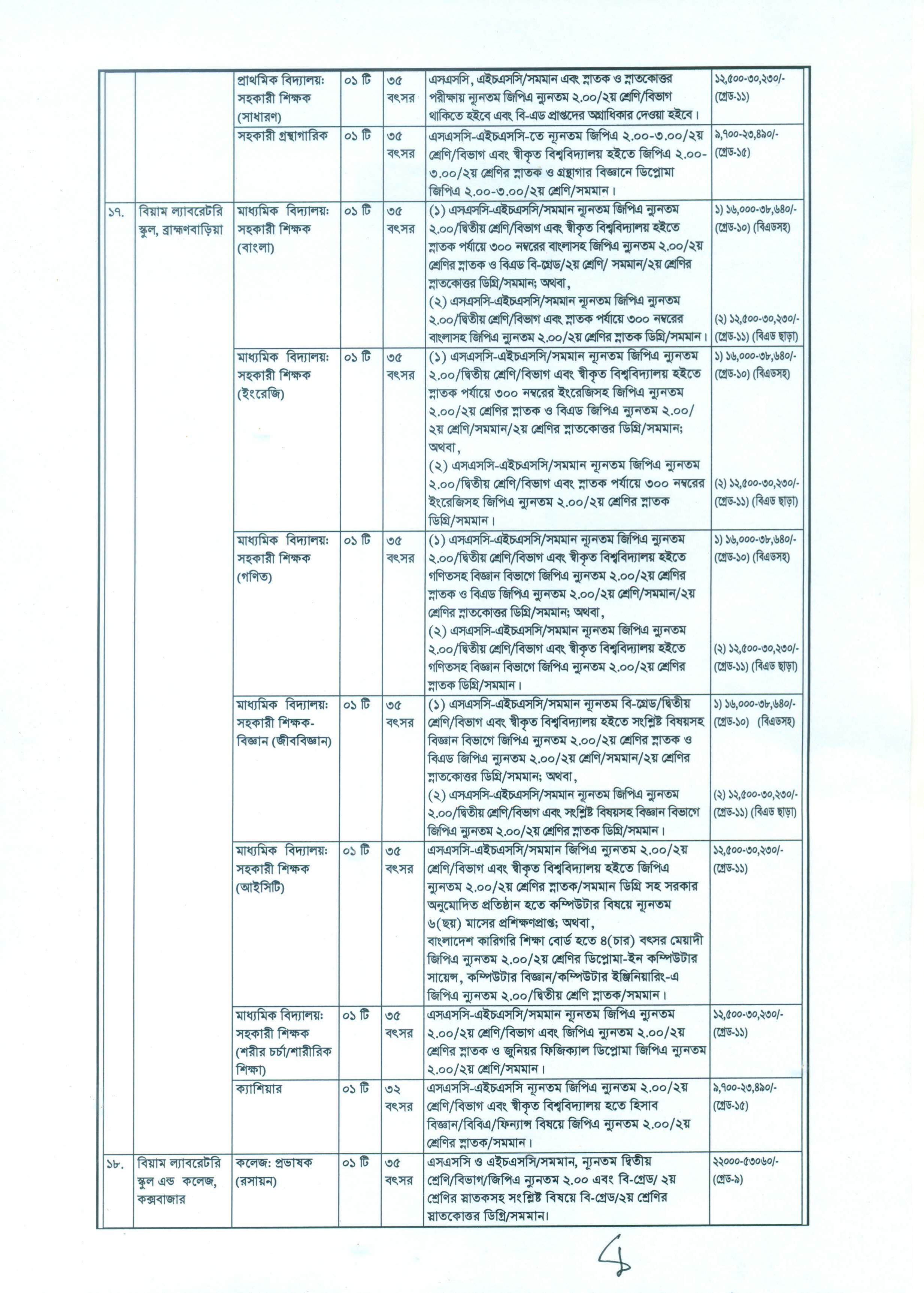 অধ্যক্ষ, উপাধ্যক্ষ, প্রভাষক (ইংরেজি, গণিত, আইসিটি, রসায়ন, জীববিজ্ঞান), সহকারী শিক্ষক (বিজ্ঞান, গণিত, চারু ও কারুকলা, বাংলা, ইংরেজি, ধর্ম, শারীরিক শিক্ষা), কম্পিউটার অপারেটর ও লাইব্রেরি সহকারীসহ সর্বমোট ৩৫টি পদ।