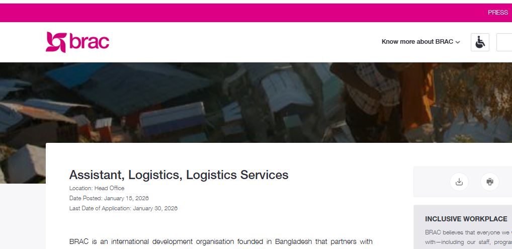 আবেদনের লিংক: [https://careers.brac.net/jobs/assistant-logistics-logistics-services-2642?bulk=false]