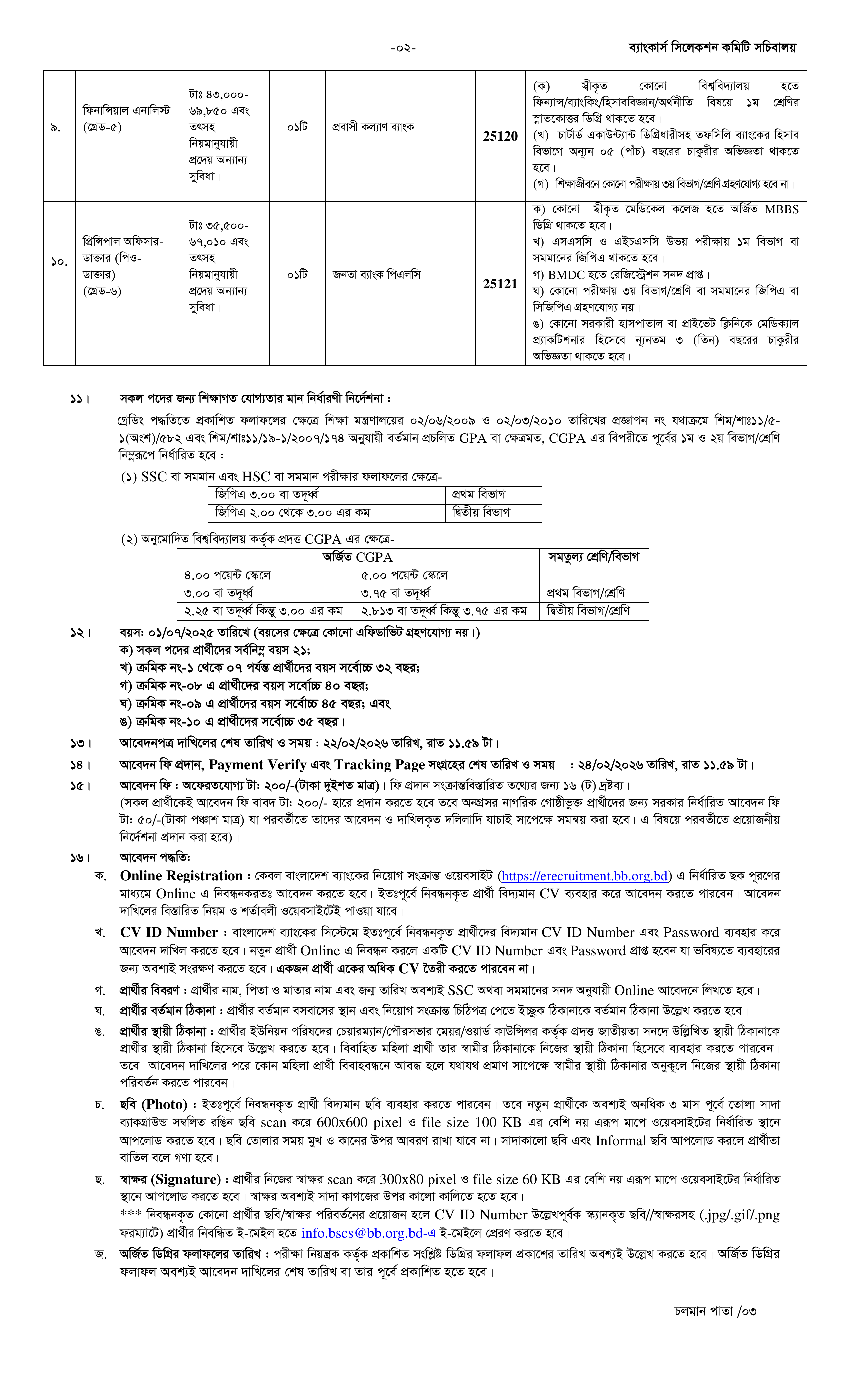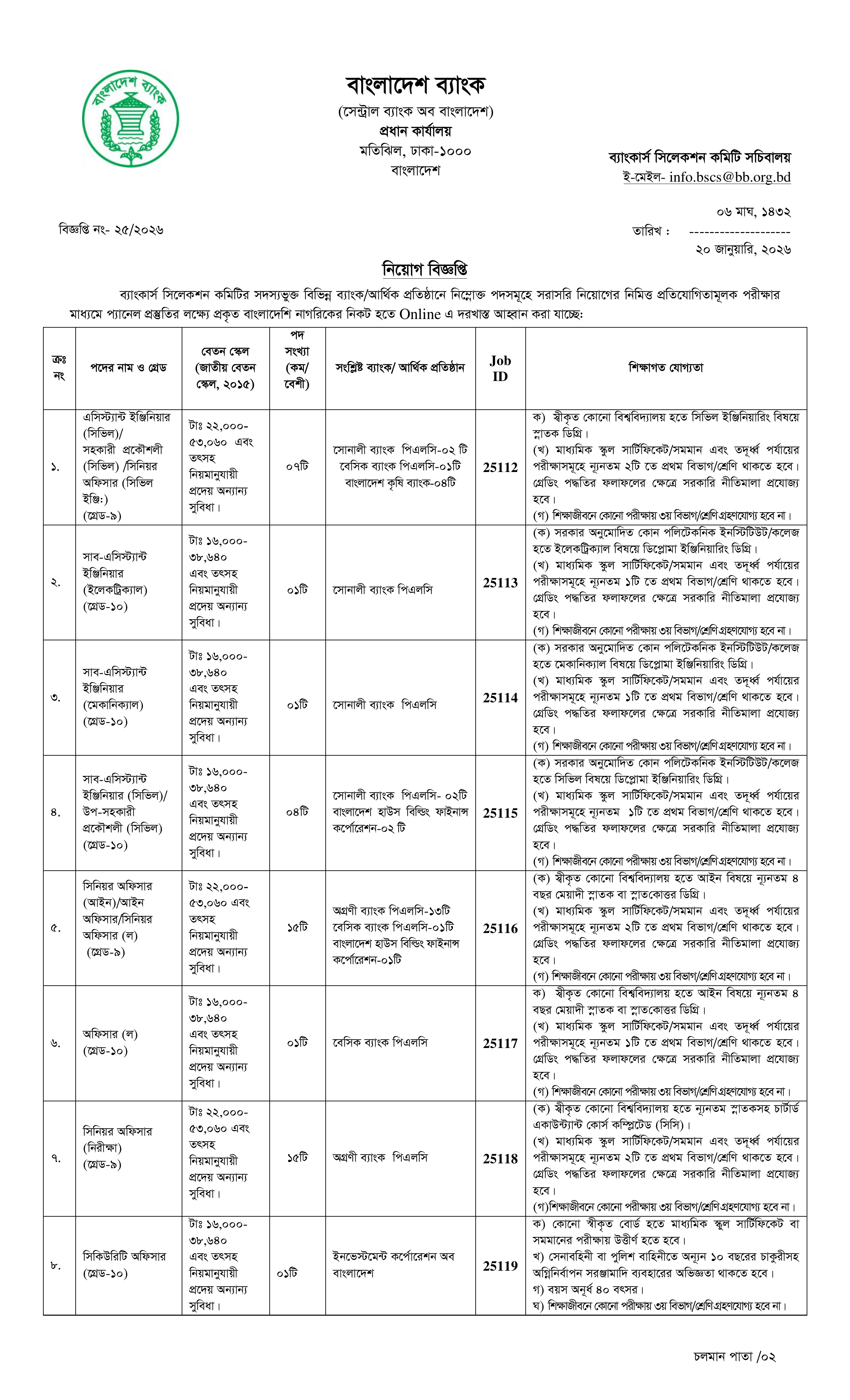 ব্যাংকার্স সিলেকশন কমিটির সদস্যভুক্ত বিভিন্ন ব্যাংক ও আর্থিক প্রতিষ্ঠানে সরাসরি নিয়োগের লক্ষ্যে প্রতিযোগিতামূলক পরীক্ষার মাধ্যমে প্যানেল প্রস্তুতির জন্য প্রকৃত বাংলাদেশি নাগরিকদের নিকট থেকে অনলাইন দরখাস্ত আহ্বান করা হয়েছে। এই নিয়োগ বিজ্ঞপ্তিতে মোট ৪৭টি শূন্য পদে লোকবল নিয়োগ করা হবে।