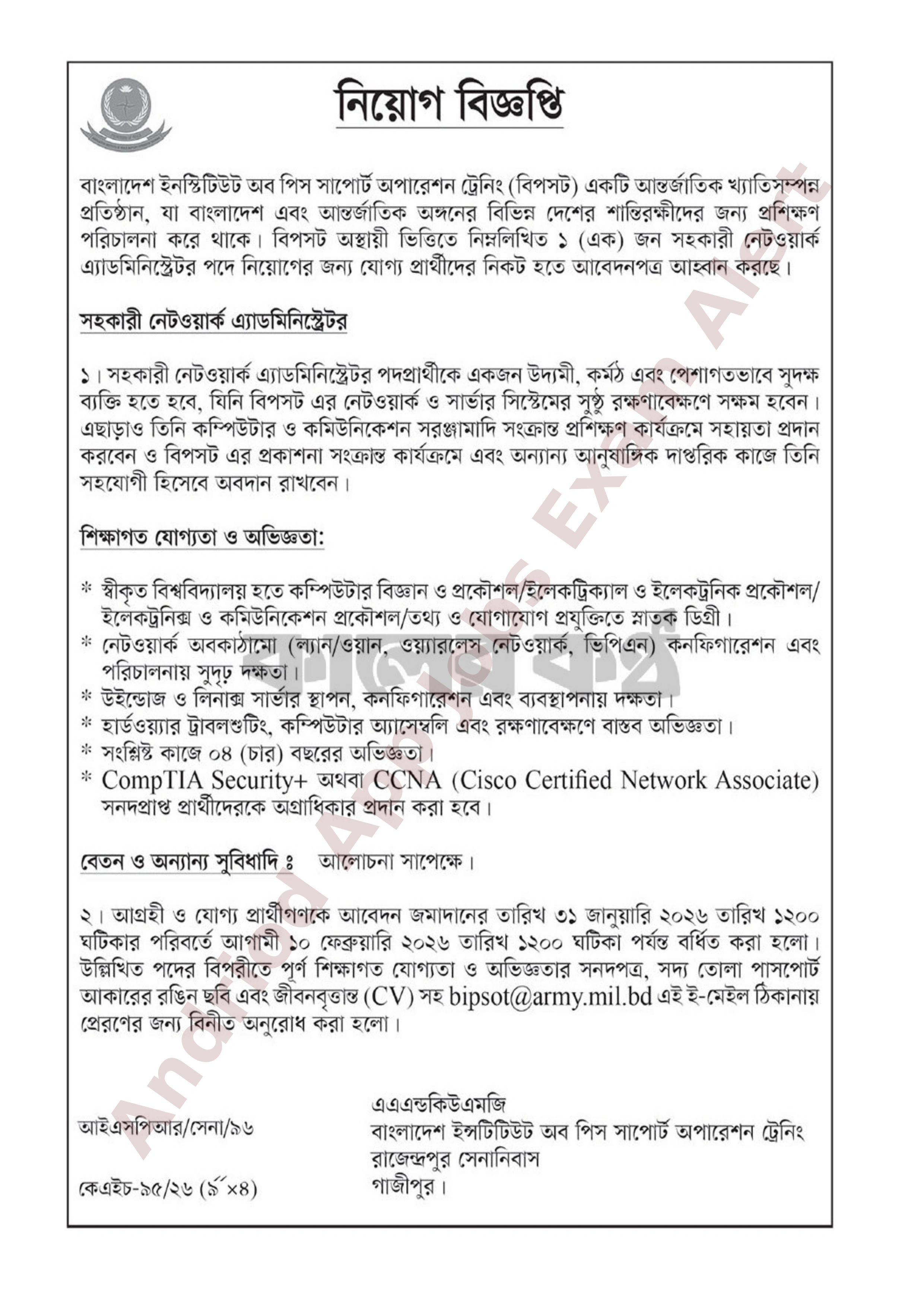 পদের নাম ও সংখ্যা: সহকারী নেটওয়ার্ক এ্যাডমিনিস্ট্রেটর (০১টি পদ)।