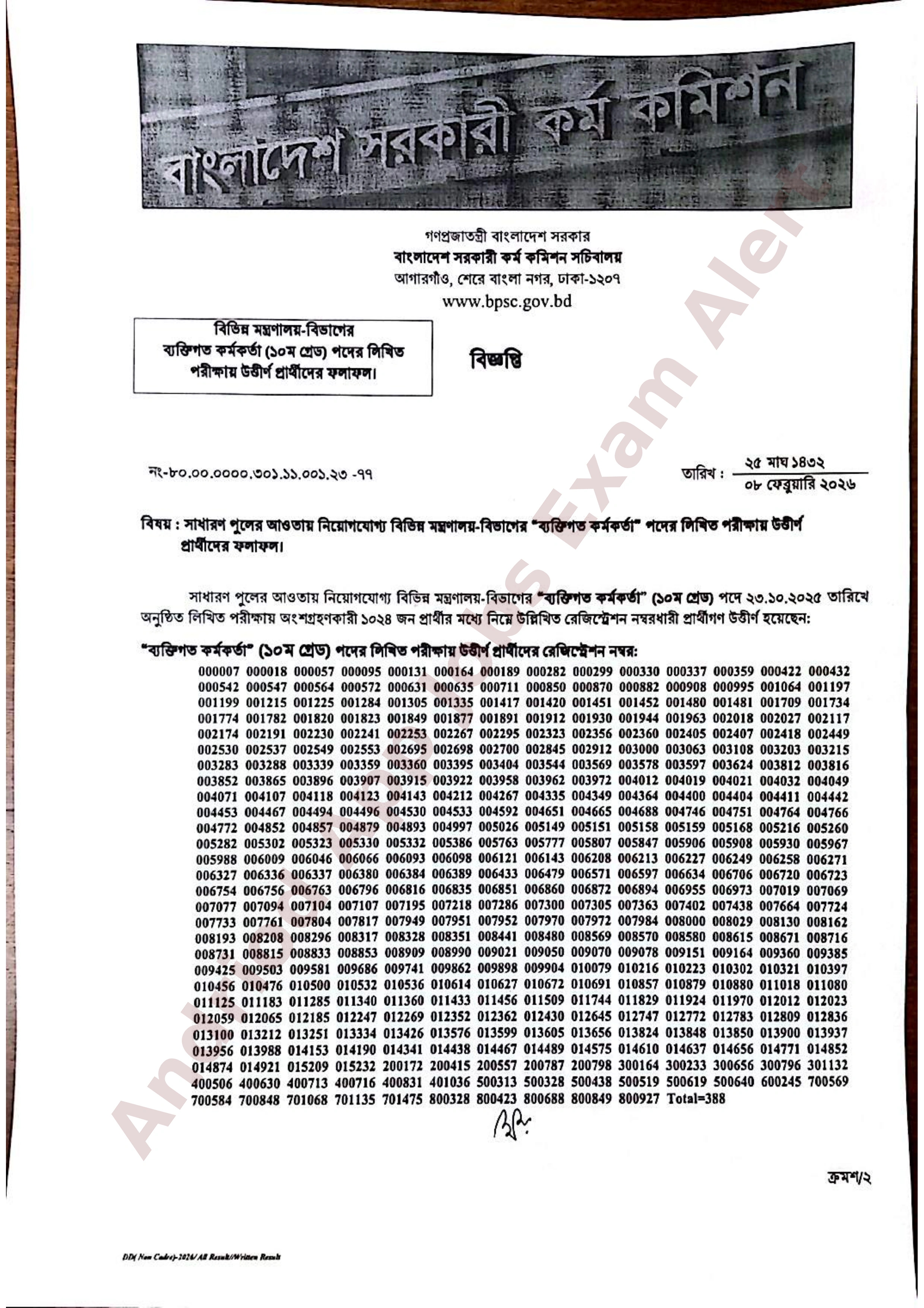 পরবর্তী ধাপ: লিখিত পরীক্ষায় উত্তীর্ণ প্রার্থীদের ব্যবহারিক পরীক্ষার তারিখ ও সময় পরবর্তীতে কমিশনের ওয়েবসাইট এবং বিজ্ঞপ্তির মাধ্যমে জানিয়ে দেওয়া হবে।