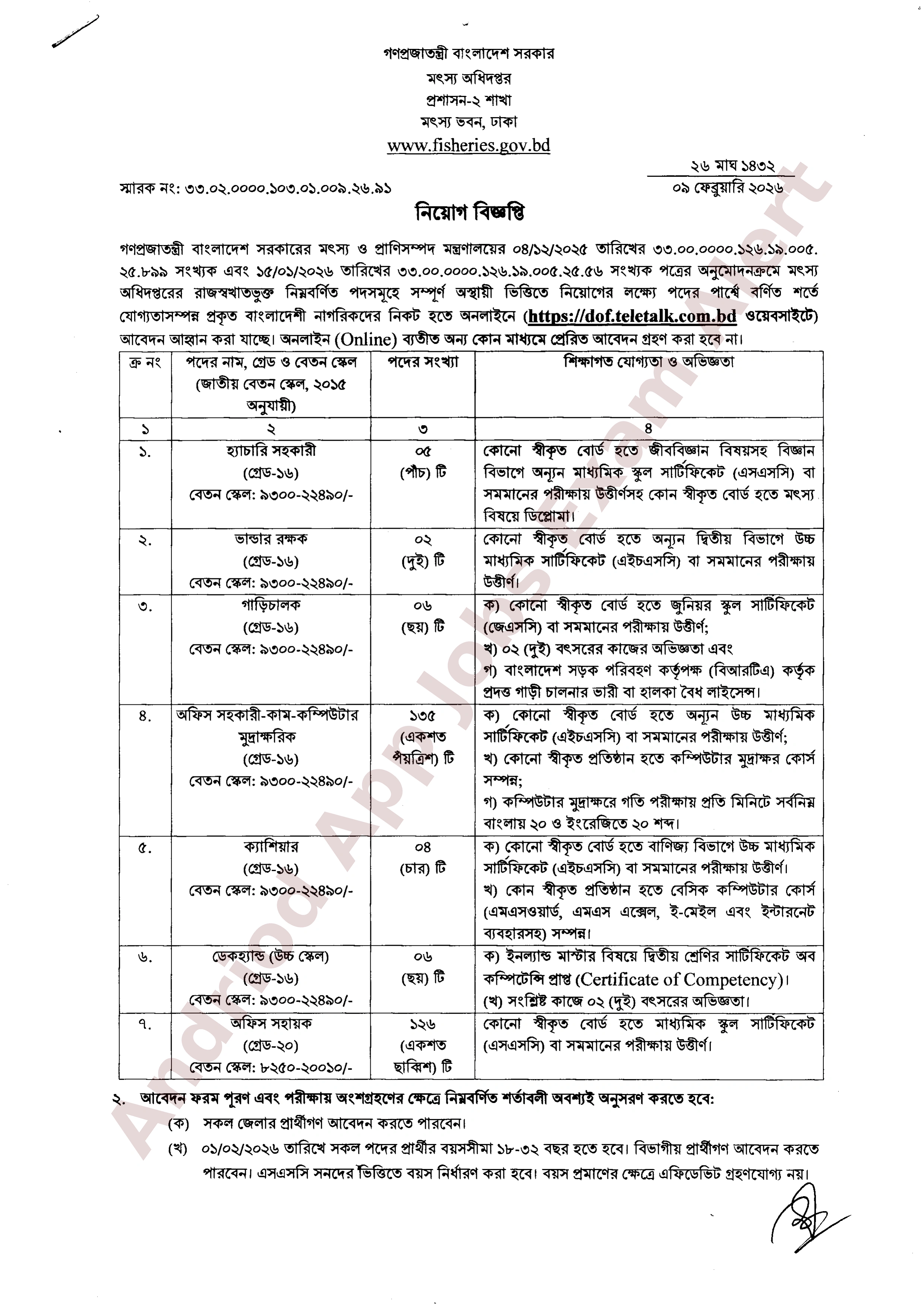আবেদনের প্রক্রিয়া: আগ্রহী ও যোগ্য প্রার্থীরা https://dof.teletalk.com.bd ওয়েবসাইটের মাধ্যমে অনলাইনে আবেদন করতে পারবেন। অনলাইন ব্যতীত অন্য কোনো মাধ্যমে প্রেরিত আবেদন গ্রহণ করা হবে না।