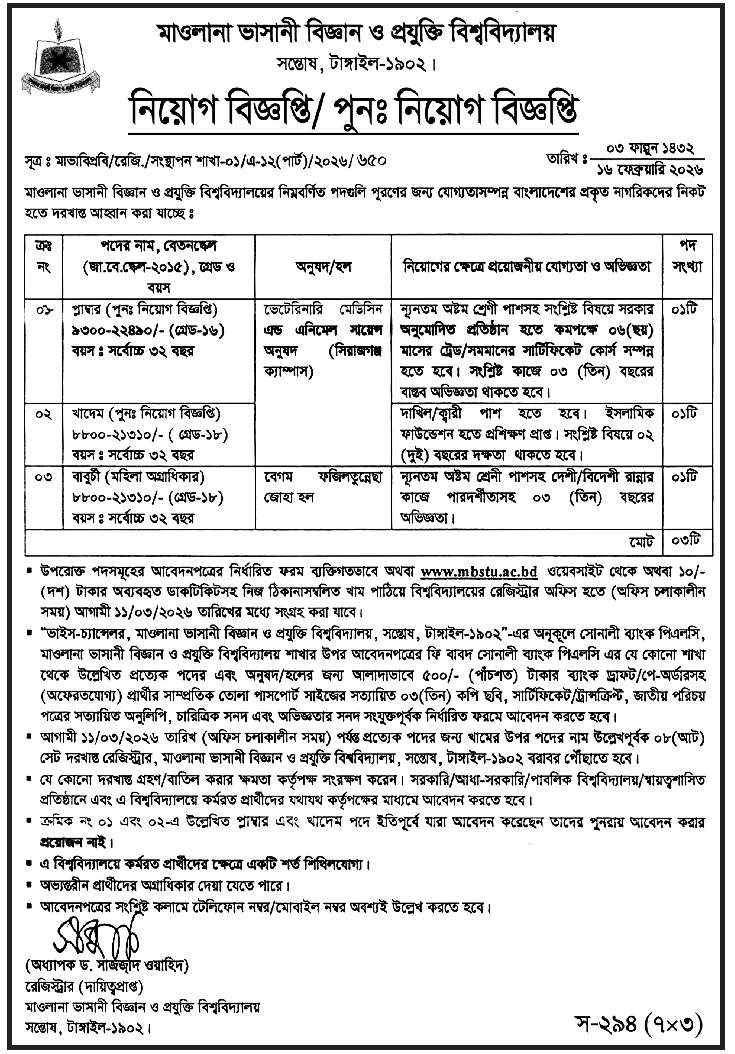 সূত্র: মাভাবিপ্রবি/রেজি:/সংস্থাপন শাখা-০১/এ-১২(পার্ট)/২০২৬/৬৫০