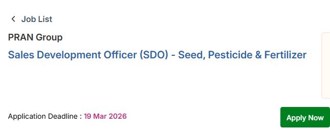 পদের নাম: সেলস ডেভেলপমেন্ট অফিসার (SDO) - সীড, পেস্টিসাইড ও ফার্টিলাইজার (Seed, Pesticide & Fertilizer)