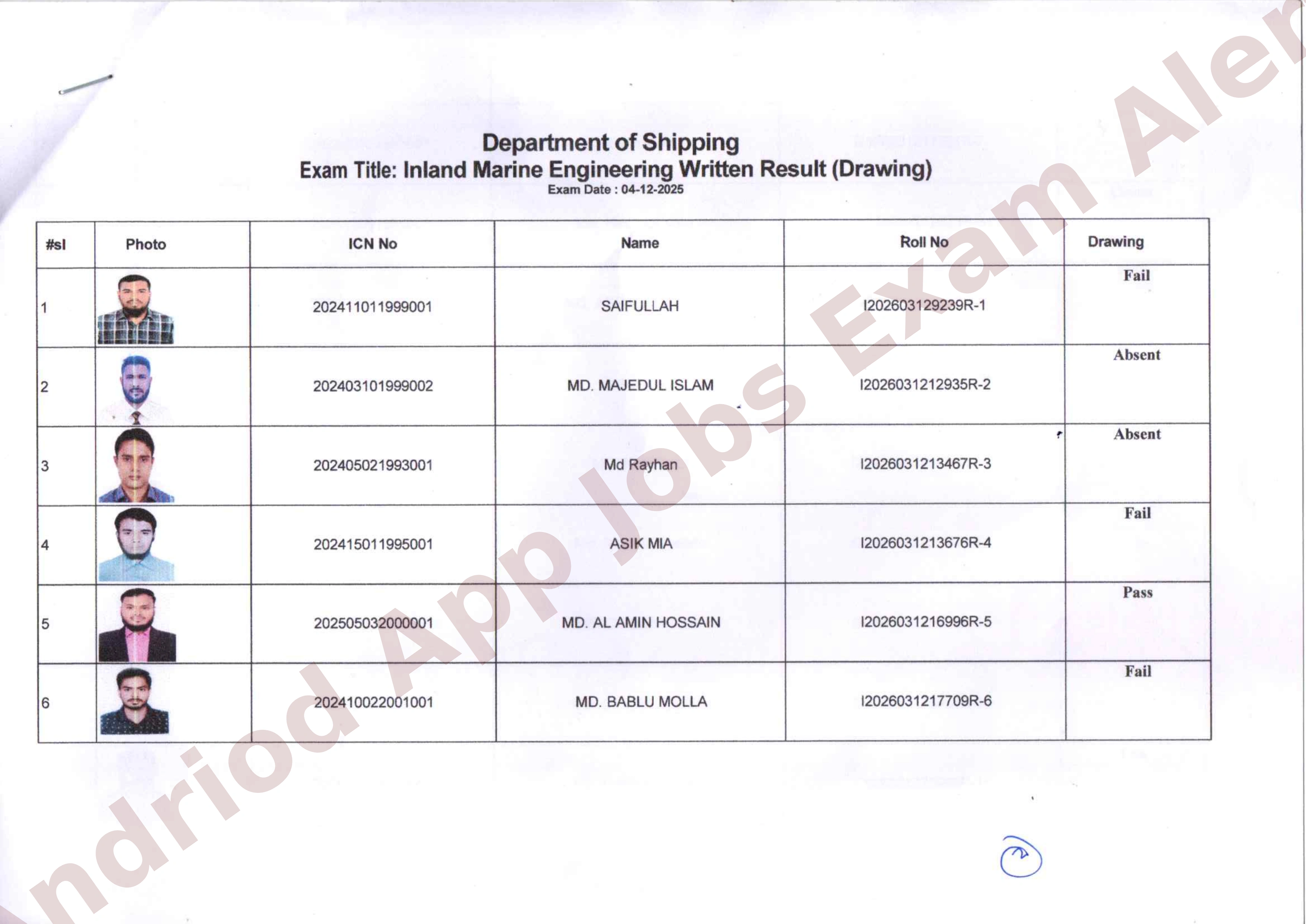 নৌপরিবহন অধিদপ্তরের মেরিন ইঞ্জিনিয়ারিং (ড্রয়িং) লিখিত পরীক্ষার ফলাফল প্রকাশ