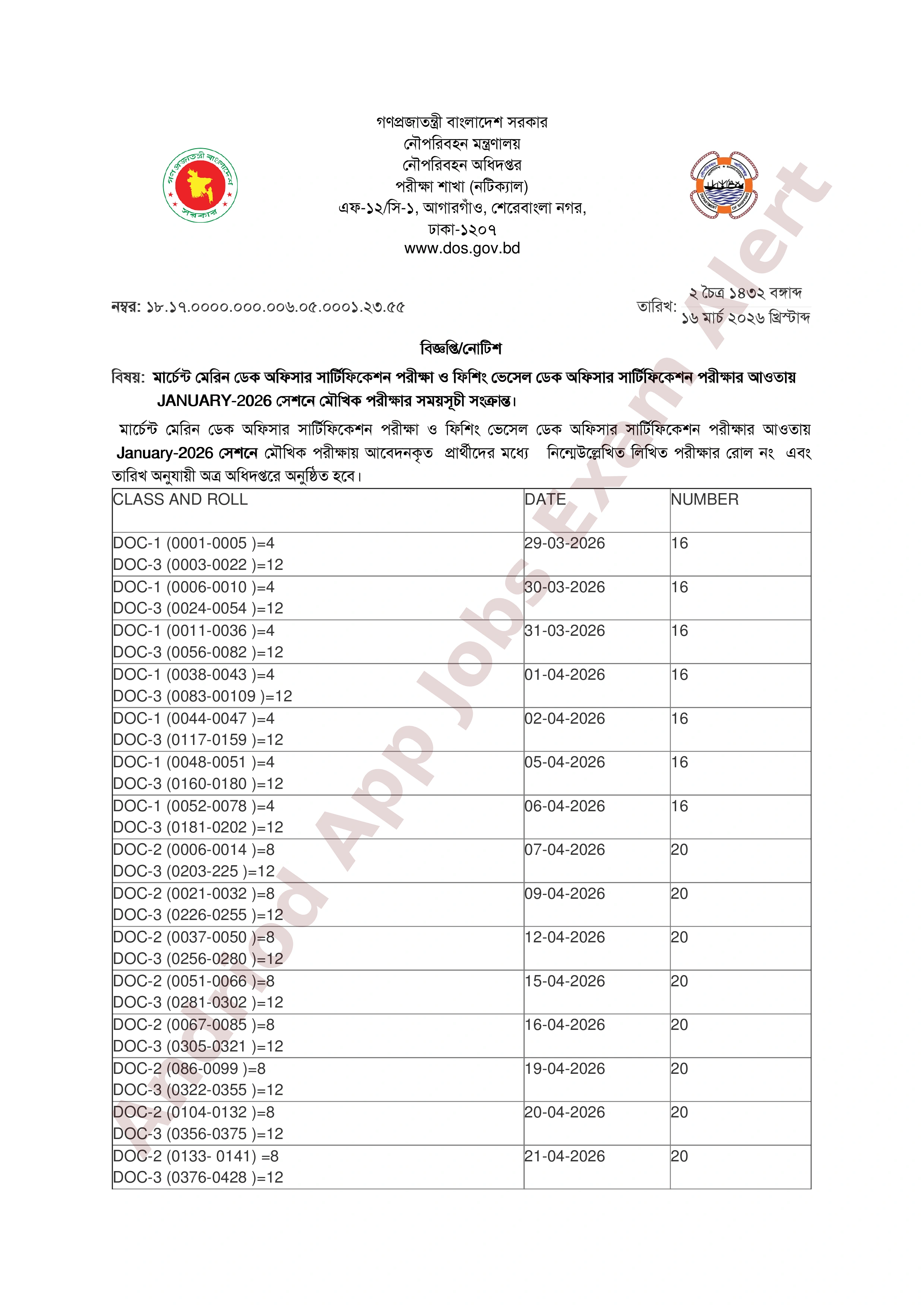 পরীক্ষার নাম: মার্চেন্ট মেরিন ও ফিশিং ভেসেল ডেক অফিসার সার্টিফিকেশন পরীক্ষা-২০২৬।