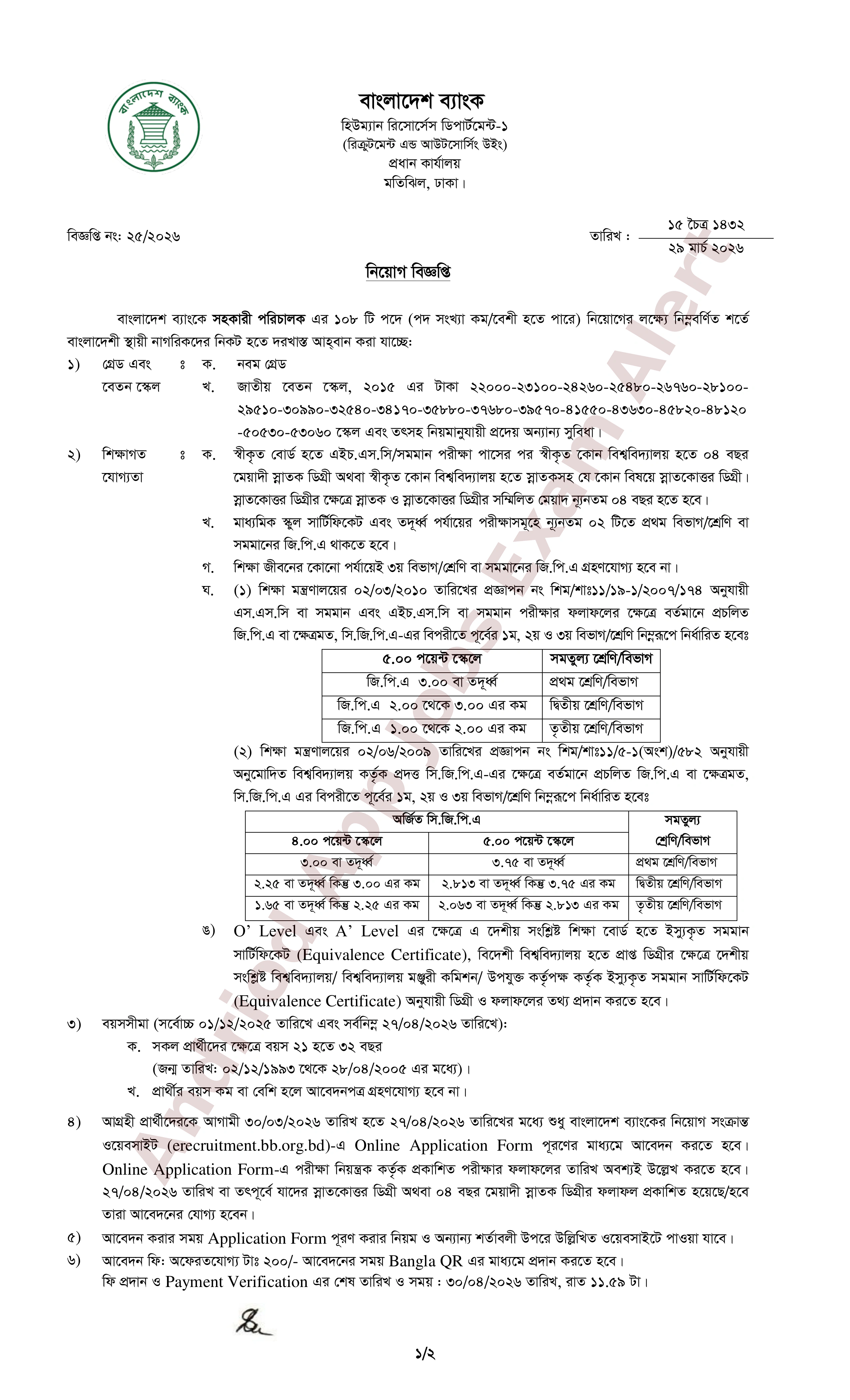 আবেদনের প্রক্রিয়া: আগ্রহী প্রার্থীদের বাংলাদেশ ব্যাংকের নিয়োগ সংক্রান্ত ওয়েবসাইট https://erecruitment.bb.org.bd/onlineapp/joblist.php-এ অনলাইন অ্যাপ্লিকেশন ফর্ম পূরণের মাধ্যমে আবেদন করতে হবে। আবেদন ফি ২০০ টাকা যা বাংলা কিউআর (Bangla QR) এর মাধ্যমে প্রদান করতে হবে।