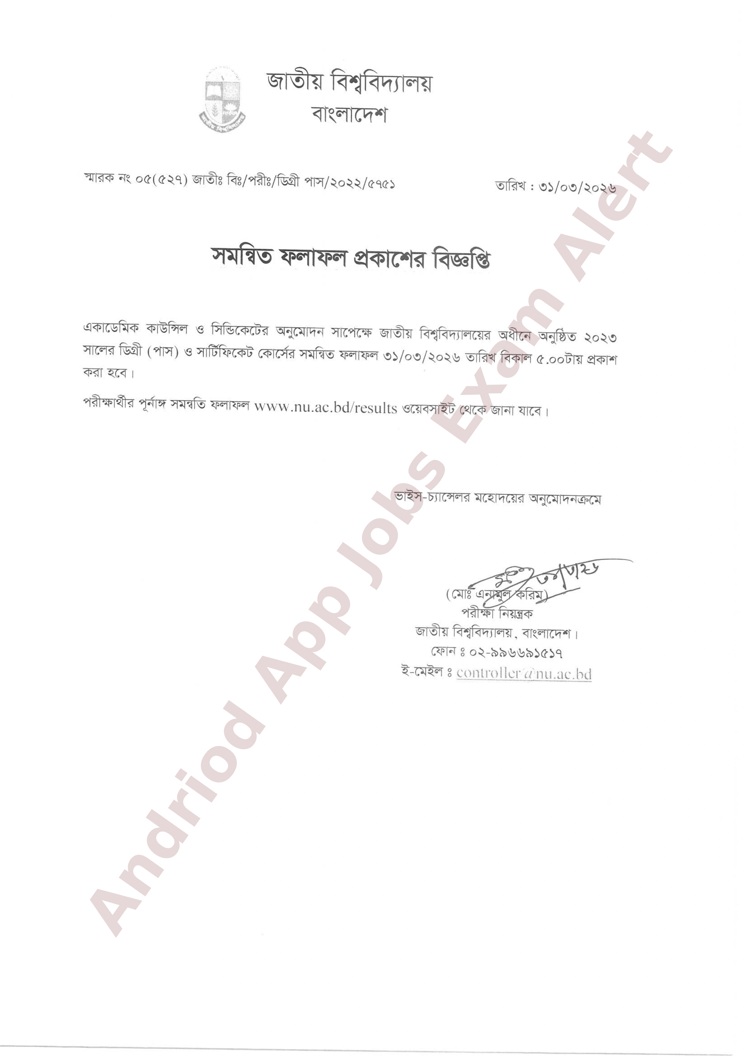 ফলাফল দেখার পদ্ধতি: পরীক্ষার্থীরা জাতীয় বিশ্ববিদ্যালয়ের নির্দিষ্ট ওয়েবসাইট www.nu.ac.bd/results থেকে তাদের পূর্ণাঙ্গ সমন্বিত ফলাফল সংগ্রহ করতে পারবেন।