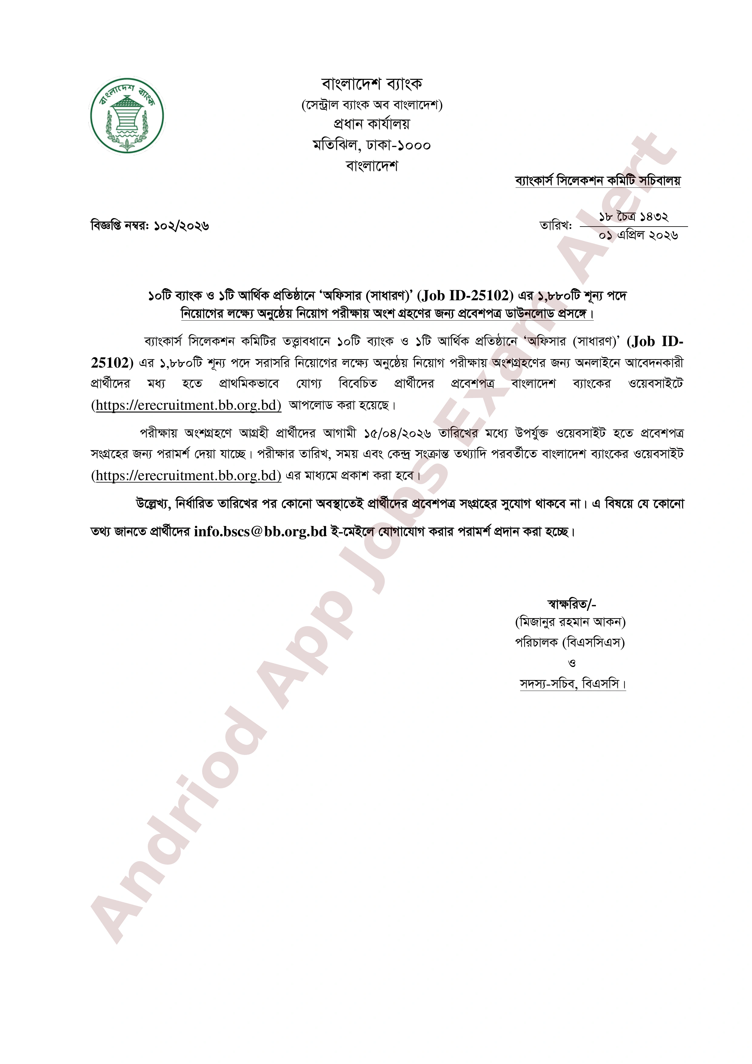 প্রবেশপত্র সংগ্রহের শেষ তারিখ: ১৫ এপ্রিল ২০২৬।