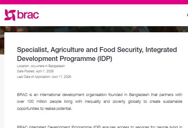 ব্র্যাক (BRAC) তাদের ইন্টারগ্রেটেড ডেভেলপমেন্ট প্রোগ্রাম (IDP Job Circular 2026 )-এর জন্য দক্ষ জনবল নিয়োগের বিজ্ঞপ্তি প্রকাশ করেছে। আপনি যদি কৃষি, খাদ্য নিরাপত্তা এবং জলবায়ু পরিবর্তন মোকাবিলায় কাজ করতে আগ্রহী হন, তবে এই সুযোগটি আপনার জন্য।