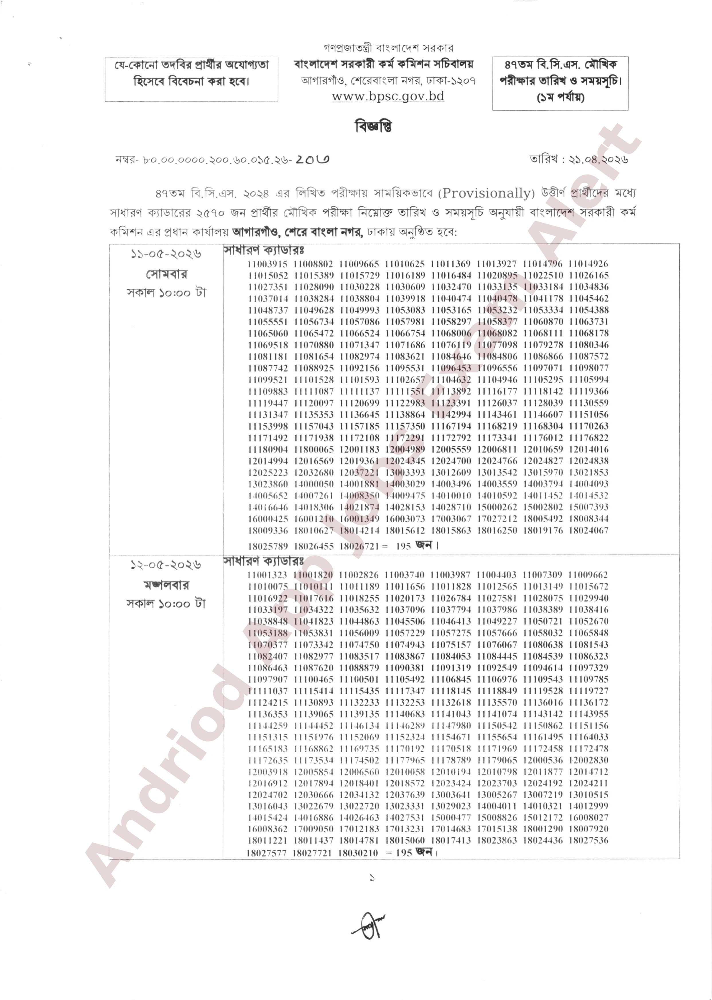 ৩. মৌখিক পরীক্ষার সাক্ষাৎকারপত্র (Interview Letter) কমিশনের ওয়েবসাইট থেকে ডাউনলোড করতে হবে। কোনো সাক্ষাৎকারপত্র ডাকযোগে পাঠানো হবে না।