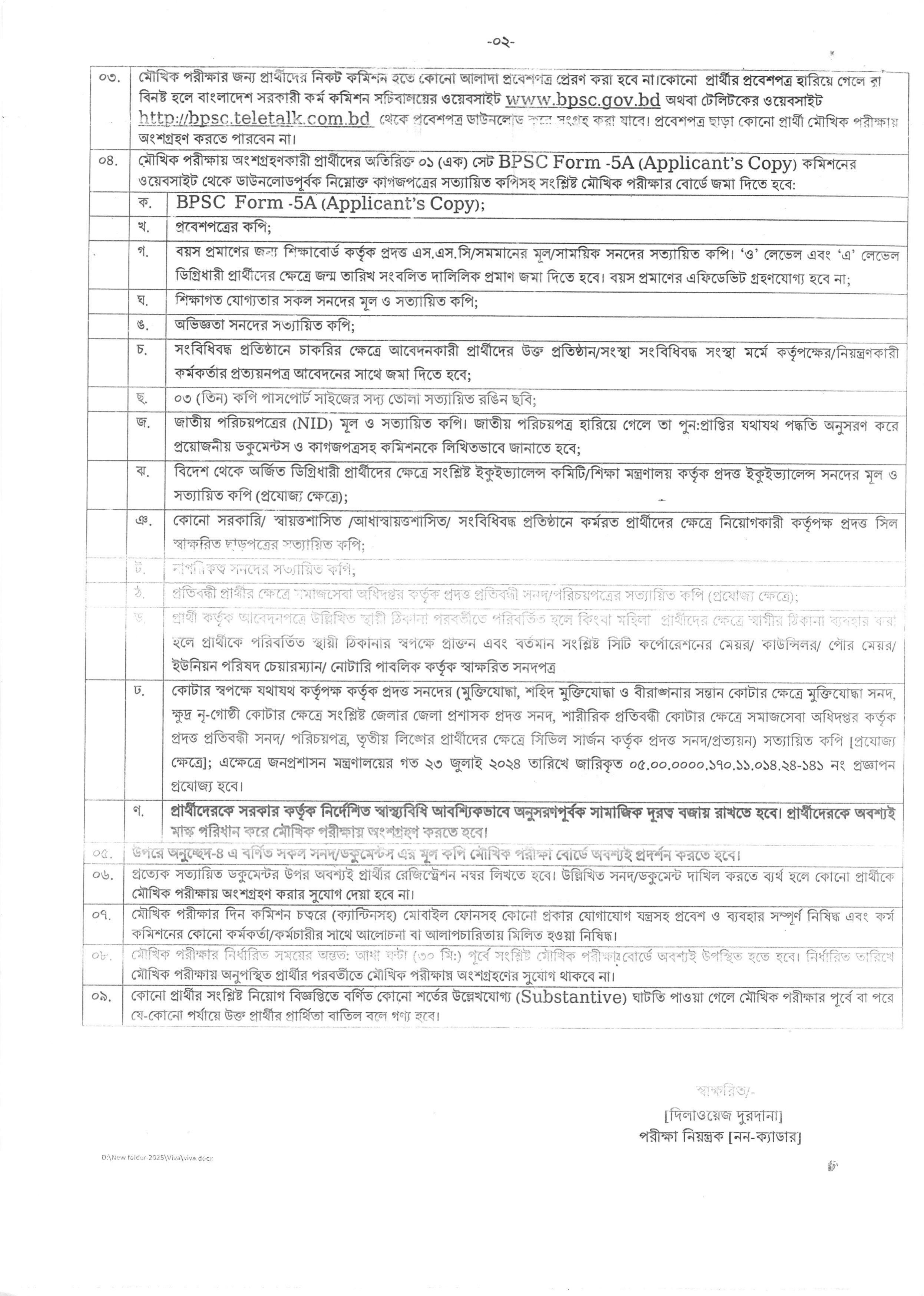এছাড়াও, প্রার্থীদের সরকার কর্তৃক নির্দেশিত স্বাস্থ্যবিধি ও সামাজিক দূরত্ব বজায় রেখে মাস্ক পরিধান করে মৌখিক পরীক্ষায় অংশগ্রহণ করতে হবে।