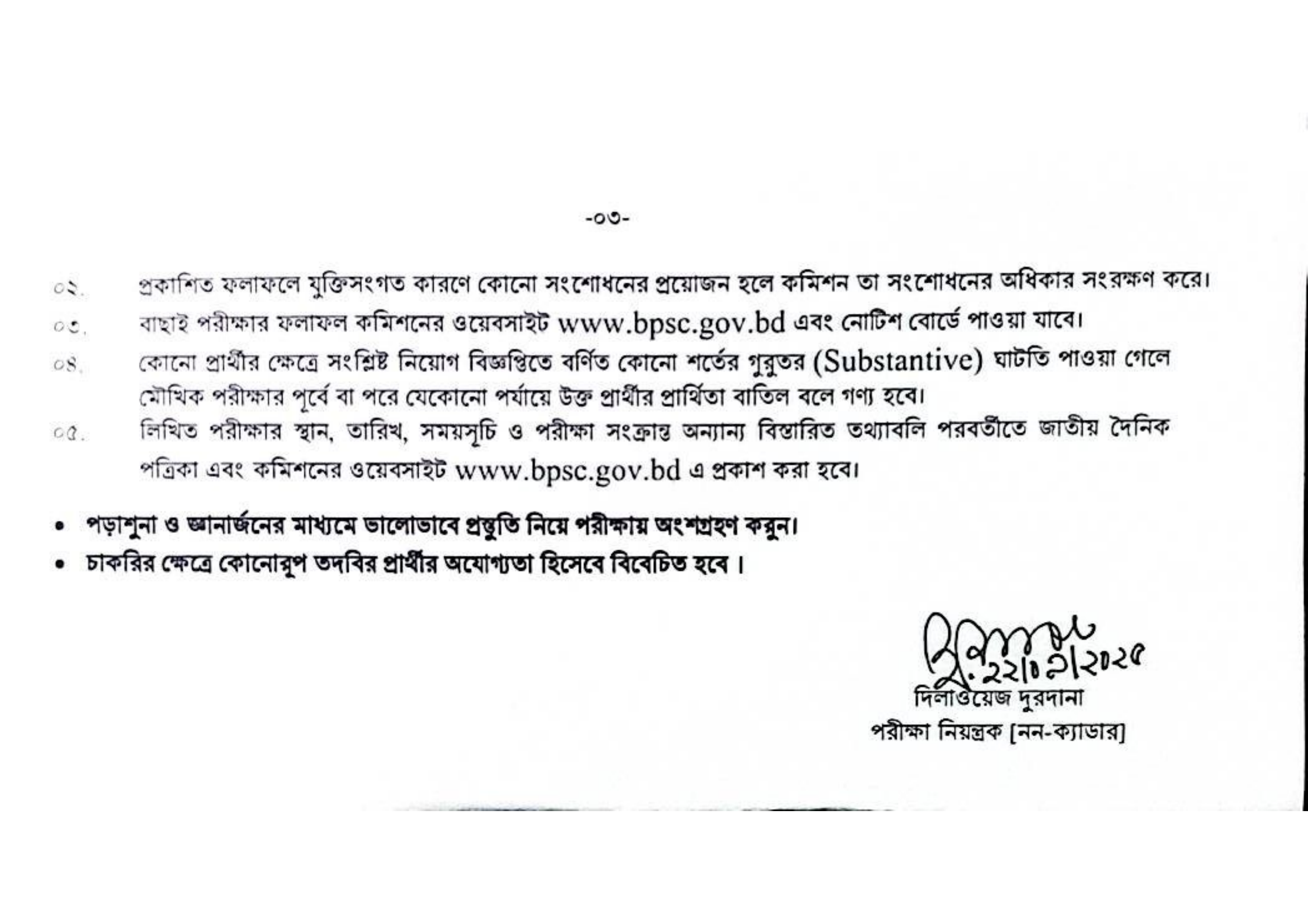 নির্বাচিত প্রার্থীদের জন্য লিখিত পরীক্ষার স্থান, তারিখ, সময়সূচি ও পরীক্ষা সংক্রান্ত অন্যান্য বিস্তারিত তথ্যাবলি পরবর্তীতে জাতীয় দৈনিক পত্রিকা এবং কমিশনের ওয়েবসাইটে প্রকাশ করা হবে।