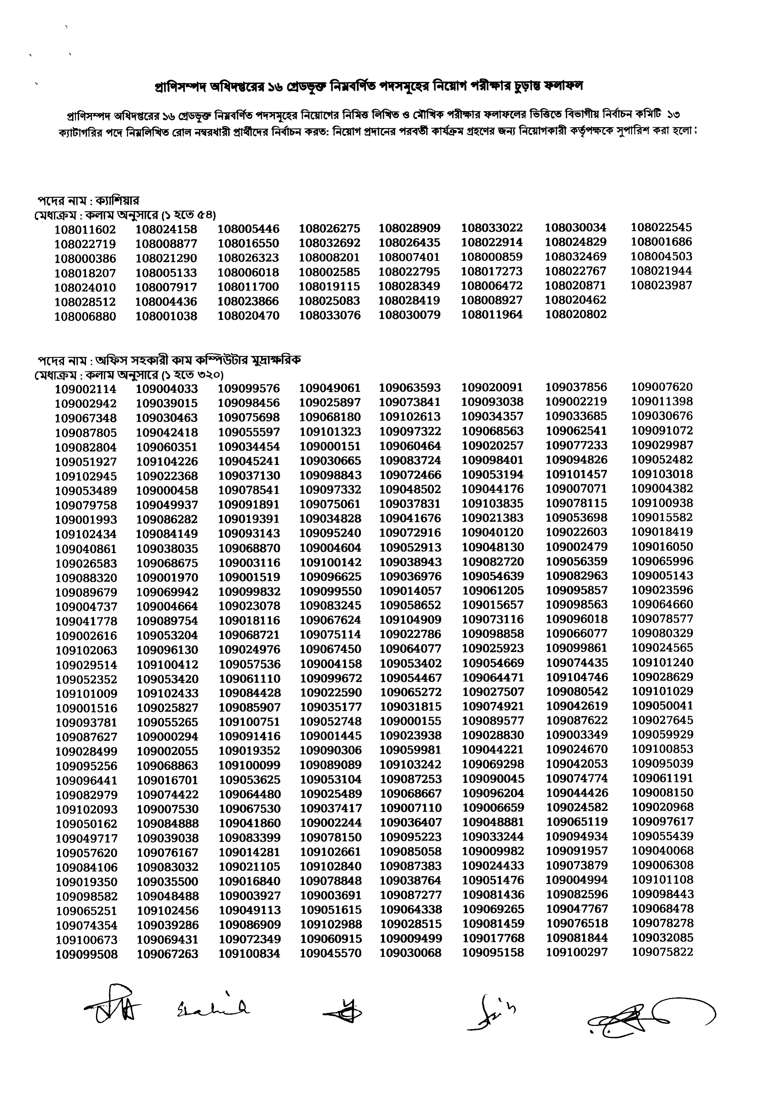গণপ্রজাতন্ত্রী বাংলাদেশ সরকার, প্রাণিসম্পদ অধিদপ্তর তাদের ১৬তম গ্রেডভুক্ত বিভিন্ন পদে জনবল নিয়োগের জন্য অনুষ্ঠিত লিখিত ও মৌখিক পরীক্ষার চূড়ান্ত ফলাফল প্রকাশ করেছে।