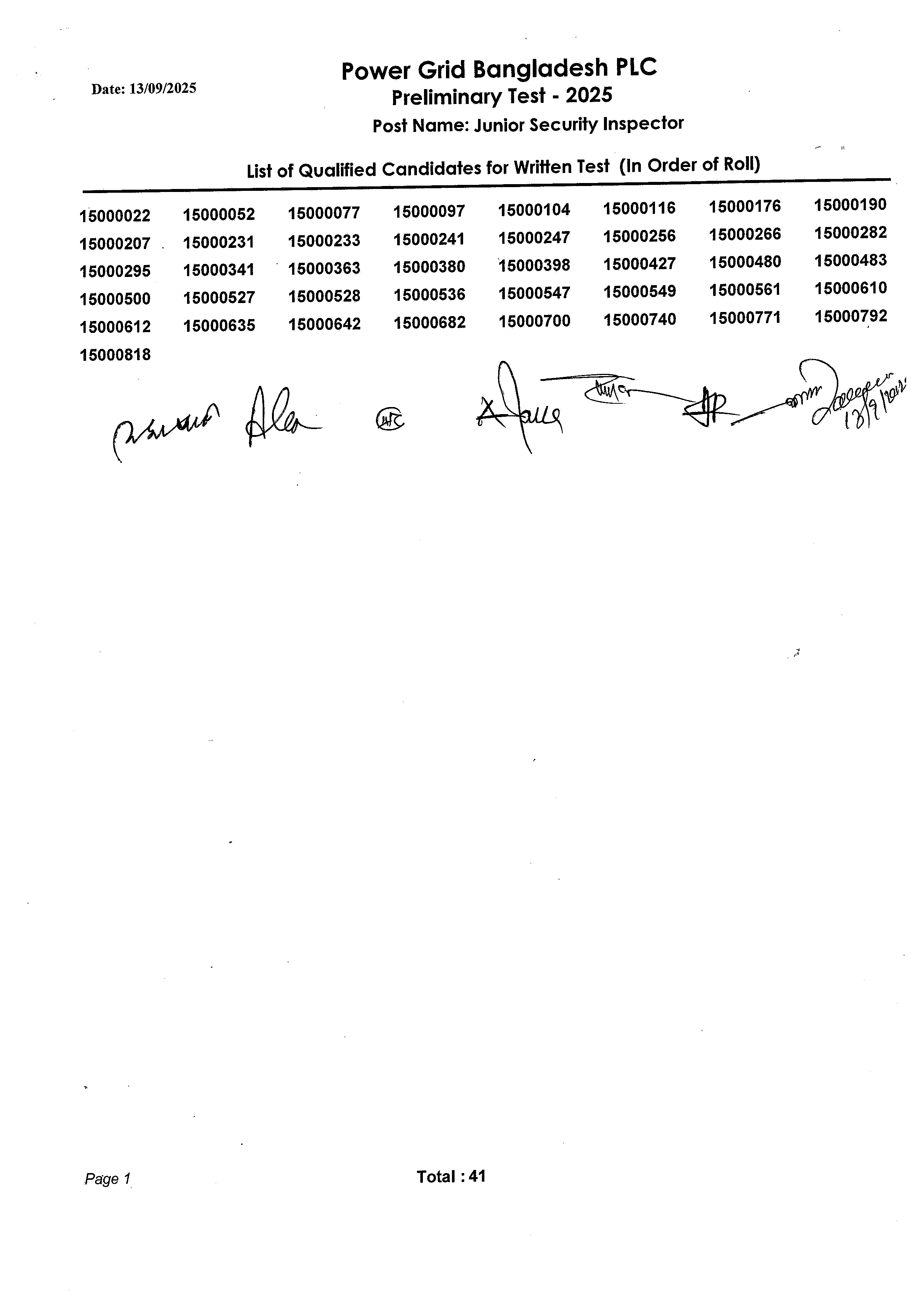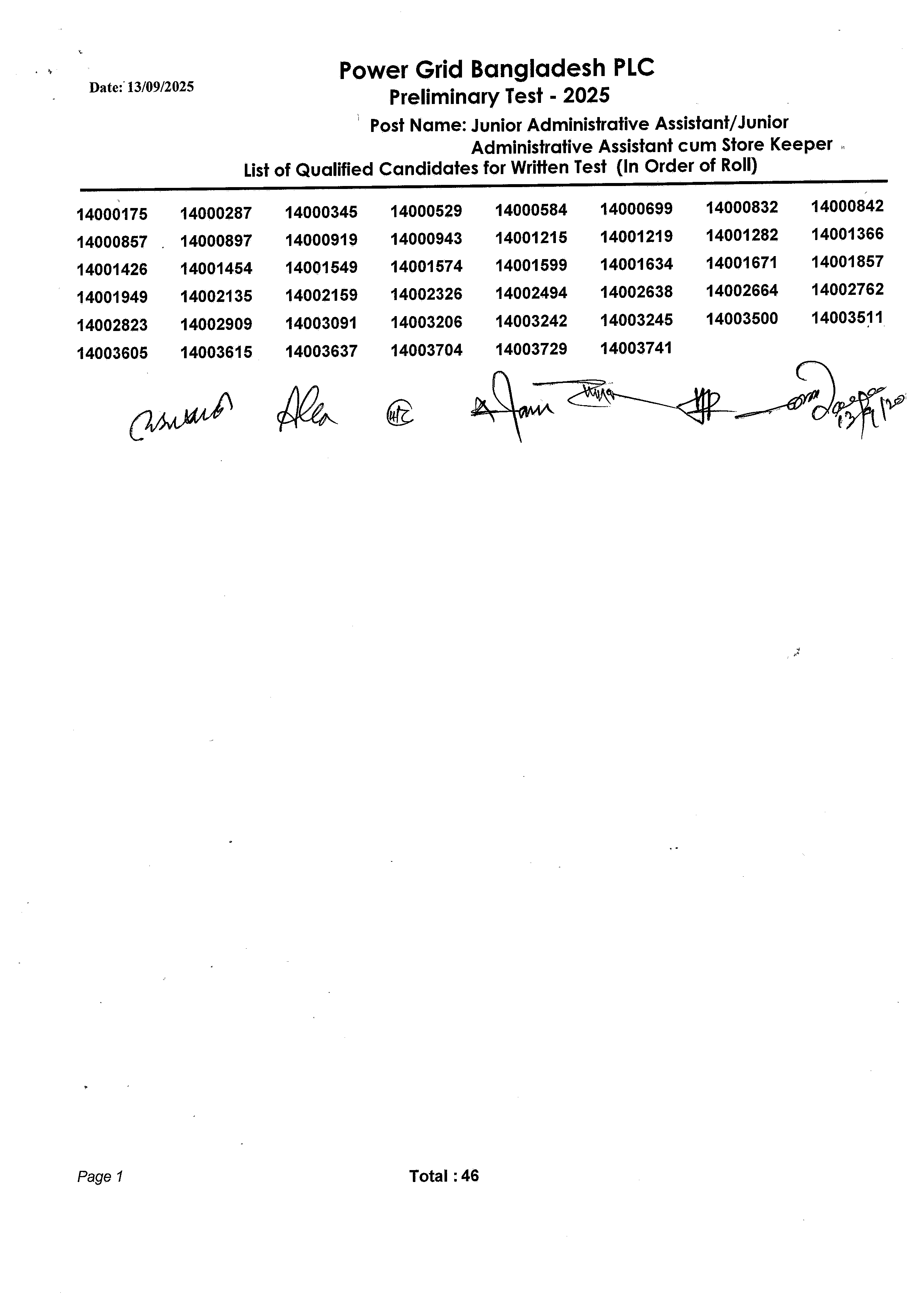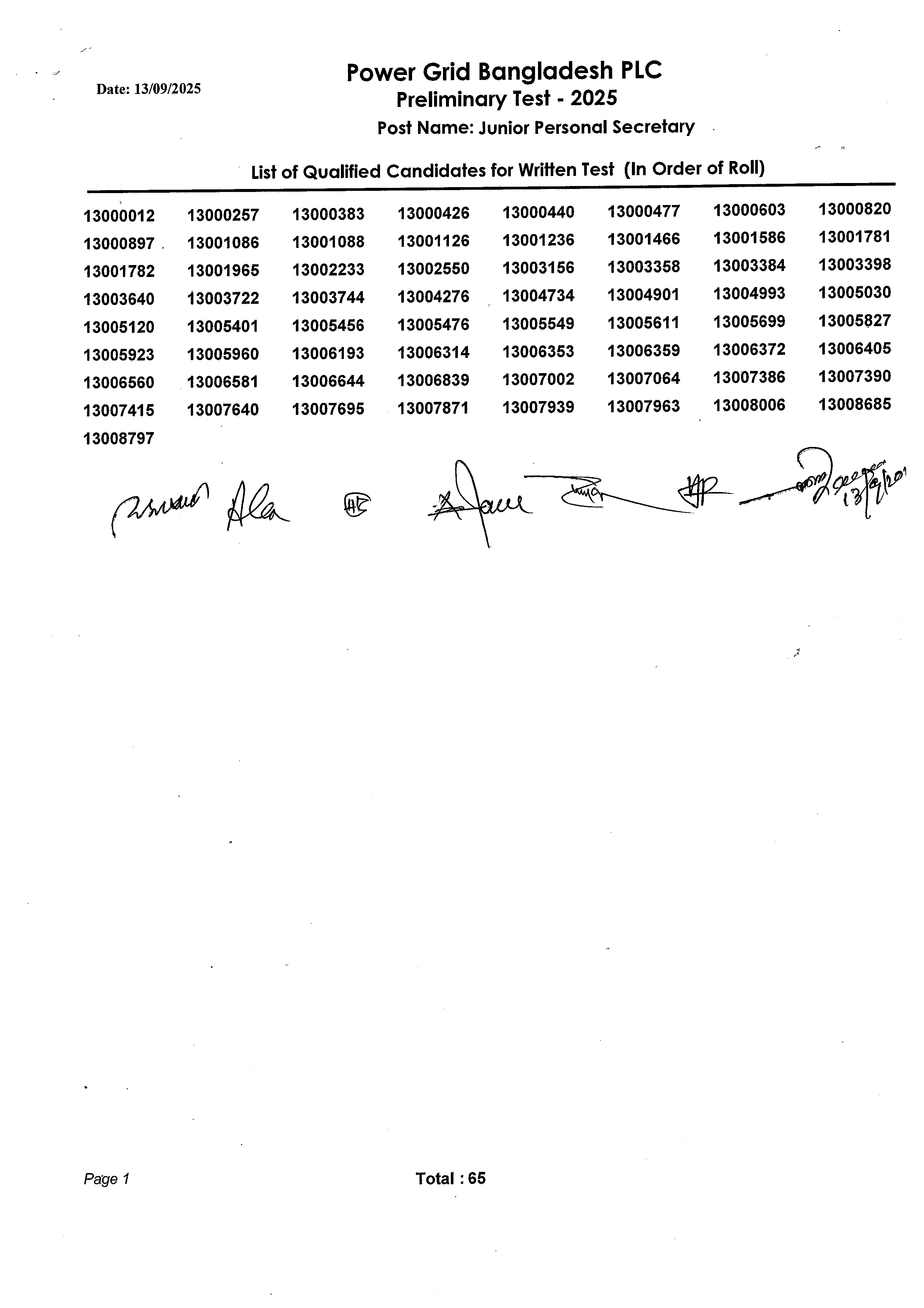 গত ১৩/০৯/২০২৫ তারিখে অনুষ্ঠিত এই পরীক্ষায় নির্বাচিত মোট প্রার্থীগণের তালিকা প্রকাশ করা হয়েছে।