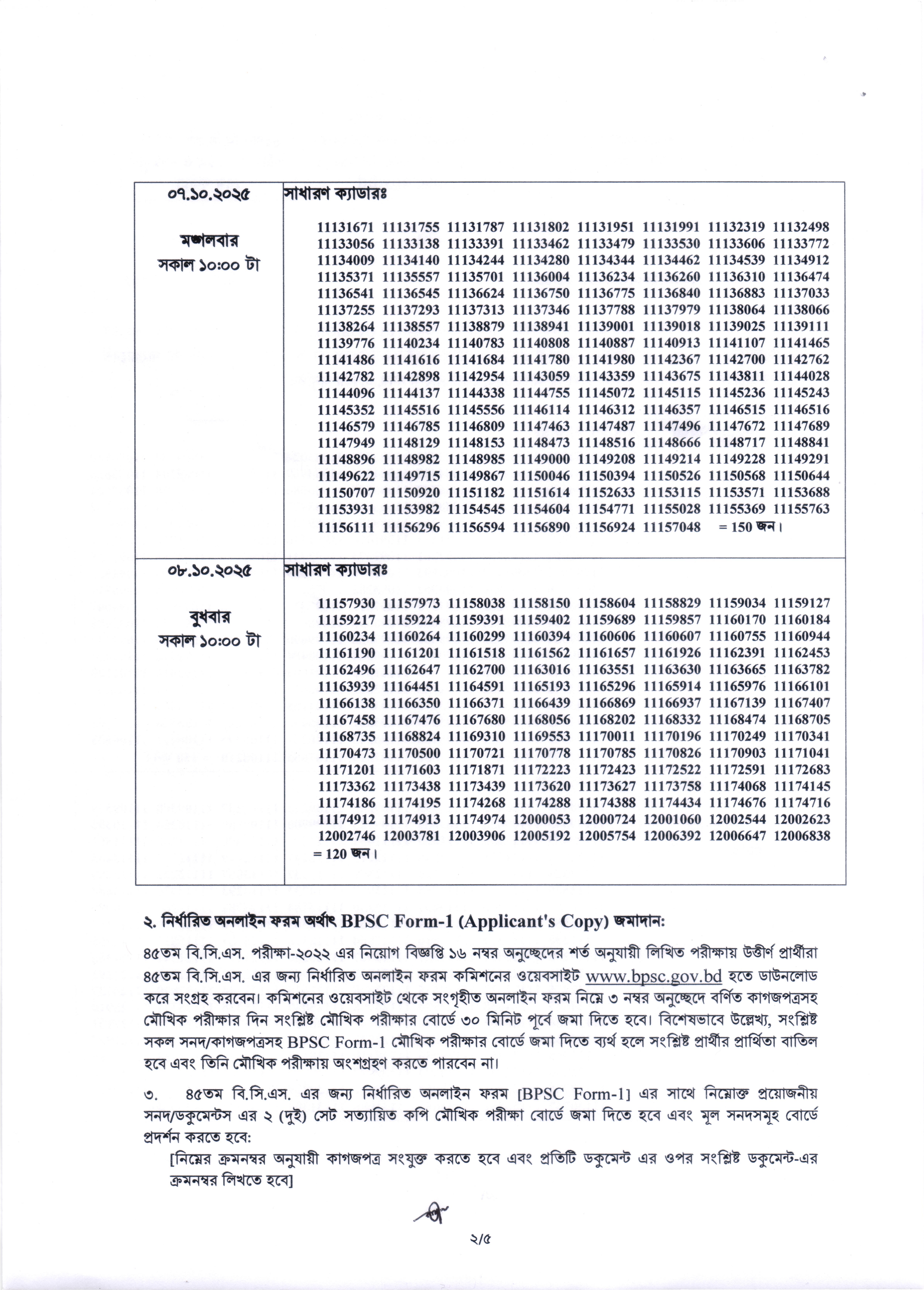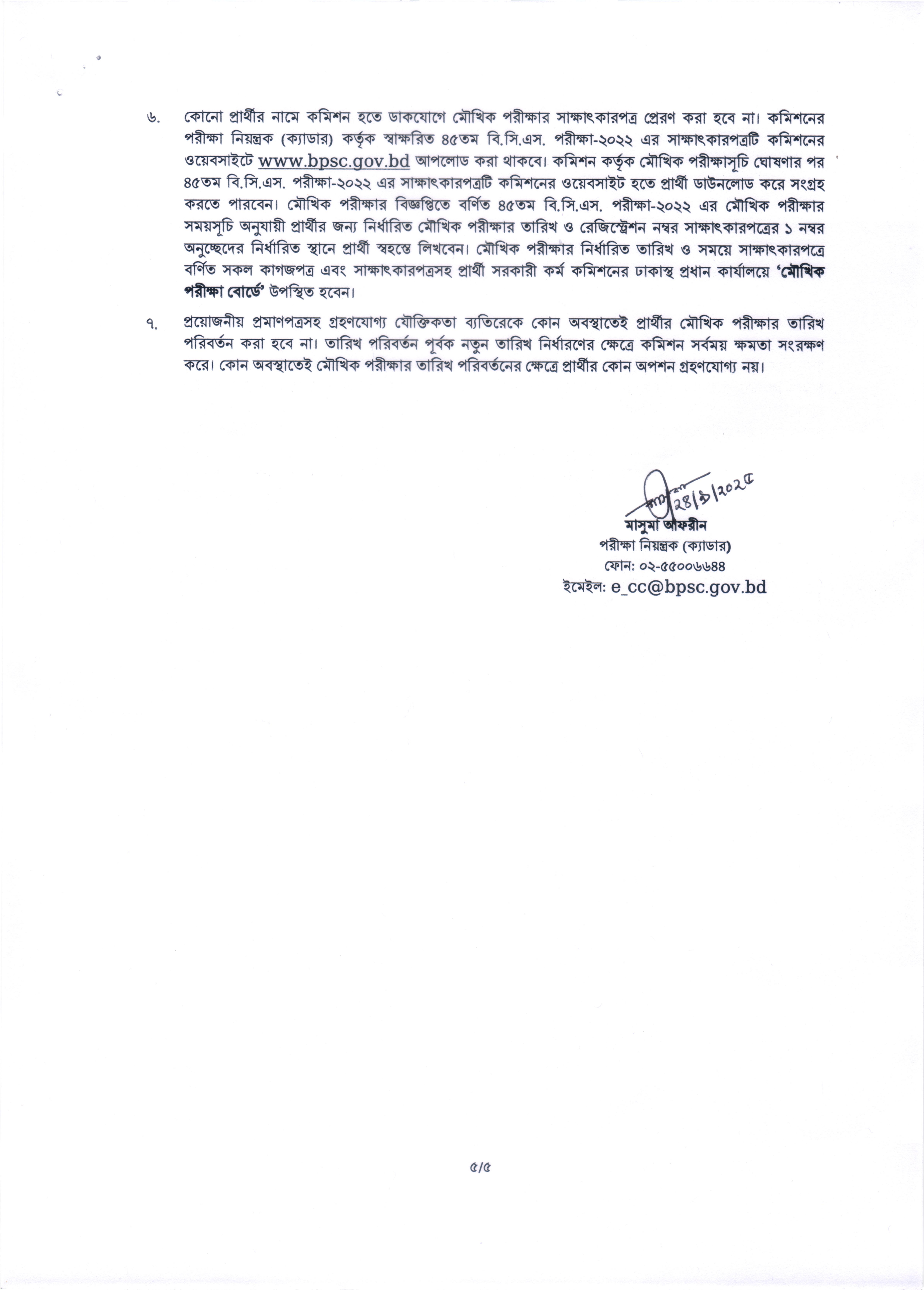 কমিশনের ওয়েবসাইট থেকে প্রার্থীরা সাক্ষাৎকারপত্র ডাউনলোড করে সংগ্রহ করতে পারবেন। মৌখিক পরীক্ষার তারিখ কোনো অবস্থাতেই পরিবর্তন করা হবে না।
