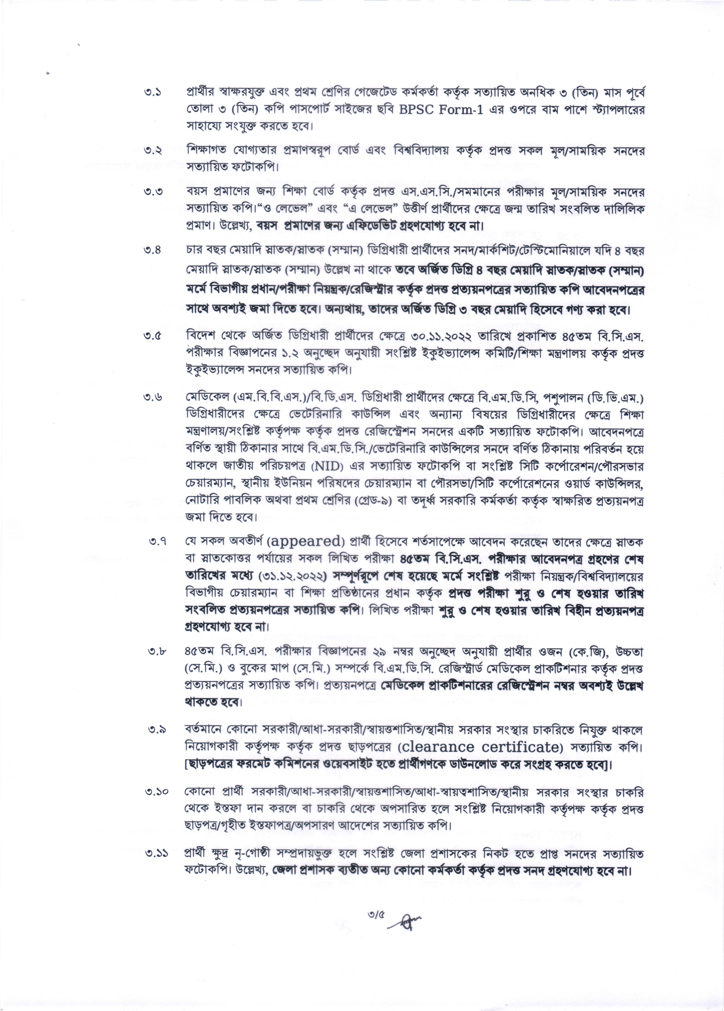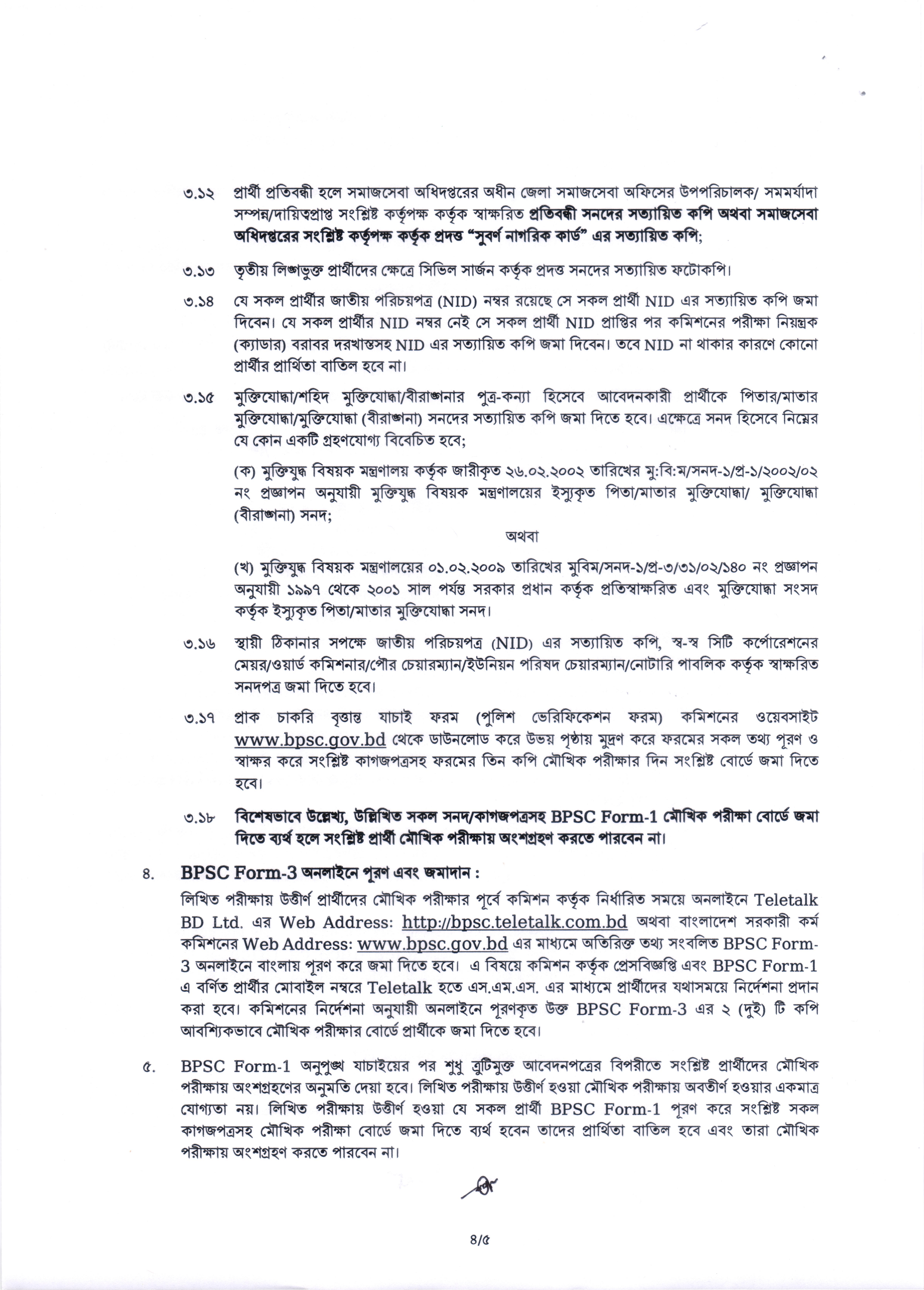 লিখিত পরীক্ষায় উত্তীর্ণ প্রার্থীদের কমিশনের ওয়েবসাইট (bpsc.gov.bd) থেকে বিপিএসসি ফরম-১ (BPSC Form-1) ডাউনলোড করে সংগ্রহ করতে হবে। মৌখিক পরীক্ষার দিন সকল প্রয়োজনীয় সনদ/ডকুমেন্টস এর ২ (দুই) সেট সত্যায়িত কপি এবং মূল সনদপত্রসহ মৌখিক পরীক্ষার বোর্ডে ৩০ মিনিট পূর্বে জমা দিতে হবে। এছাড়া, কমিশন কর্তৃক নির্ধারিত সময়ে অনলাইনে বিপিএসসি ফরম-৩ (BPSC Form-3) পূরণ করে জমা দিতে হবে এবং এর ২ (দুই) টি কপি মৌখিক পরীক্ষার বোর্ডে জমা দিতে হবে।
