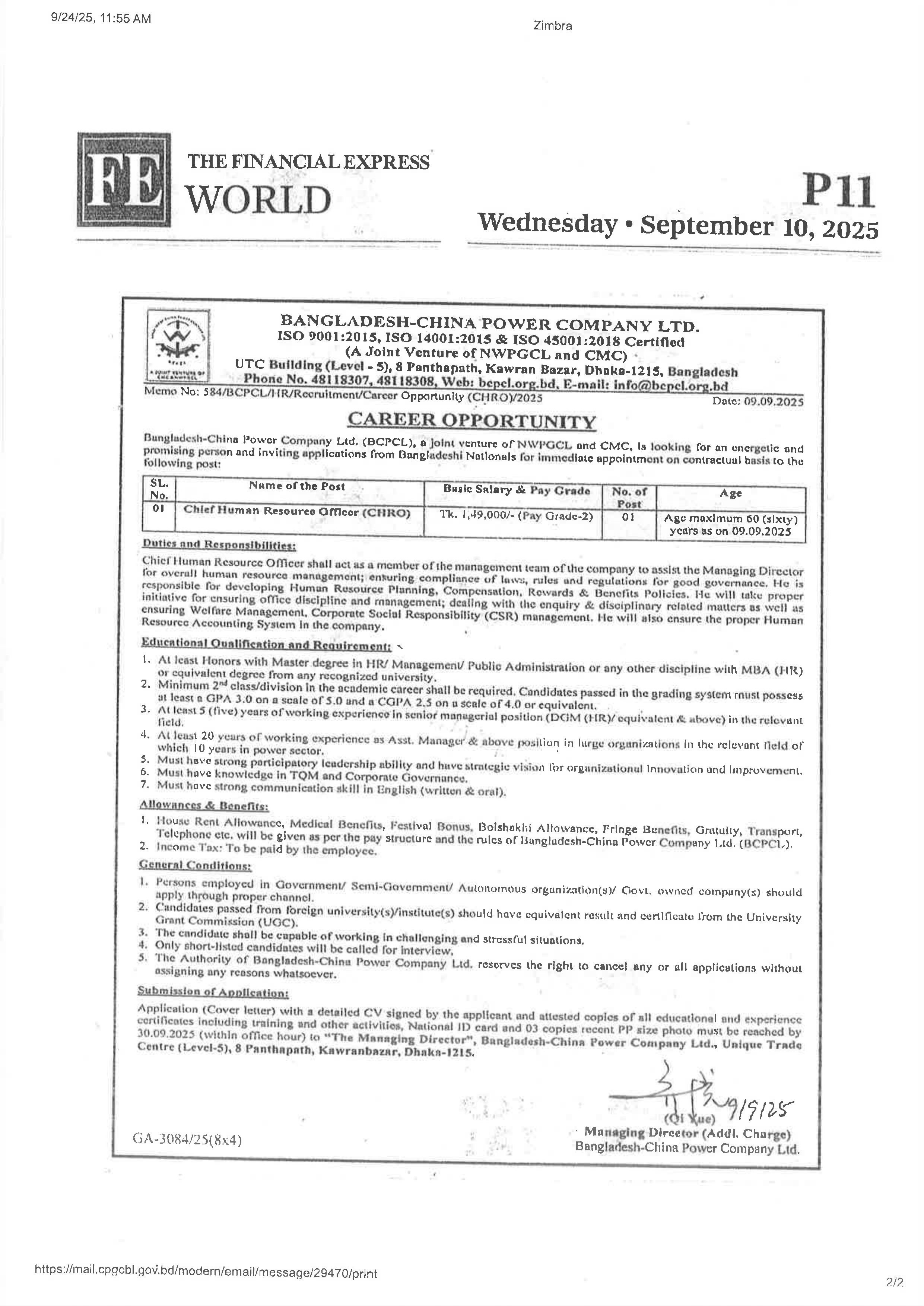 আবেদনের প্রক্রিয়া: আগ্রহী ও যোগ্য প্রার্থীদের বিজ্ঞপ্তিতে উল্লেখিত পদ্ধতি অনুসরণ করে আবেদন করতে হবে। আবেদন সংক্রান্ত বিস্তারিত নির্দেশনা মূল বিজ্ঞপ্তিতে দেওয়া আছে।