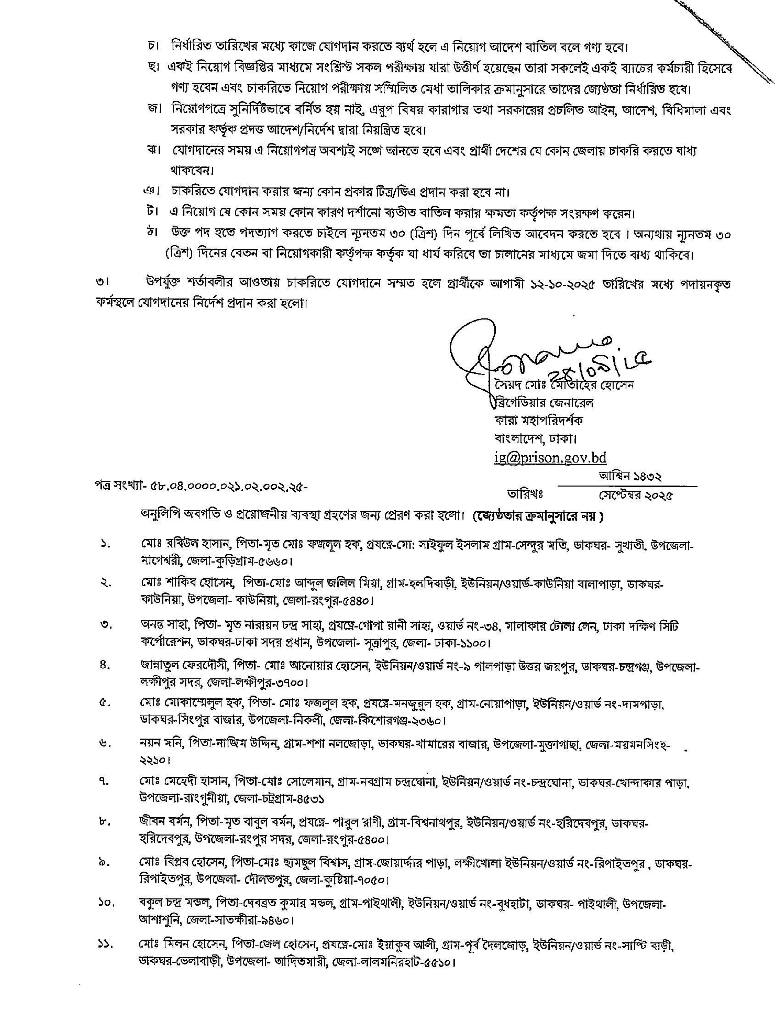 নিয়োগপ্রাপ্ত প্রার্থীদের আগামী ১২-১০-২০২৫ তারিখের মধ্যে তাদের পদায়নকৃত কর্মস্থলে যোগদান করার নির্দেশ দেওয়া হয়েছে।
