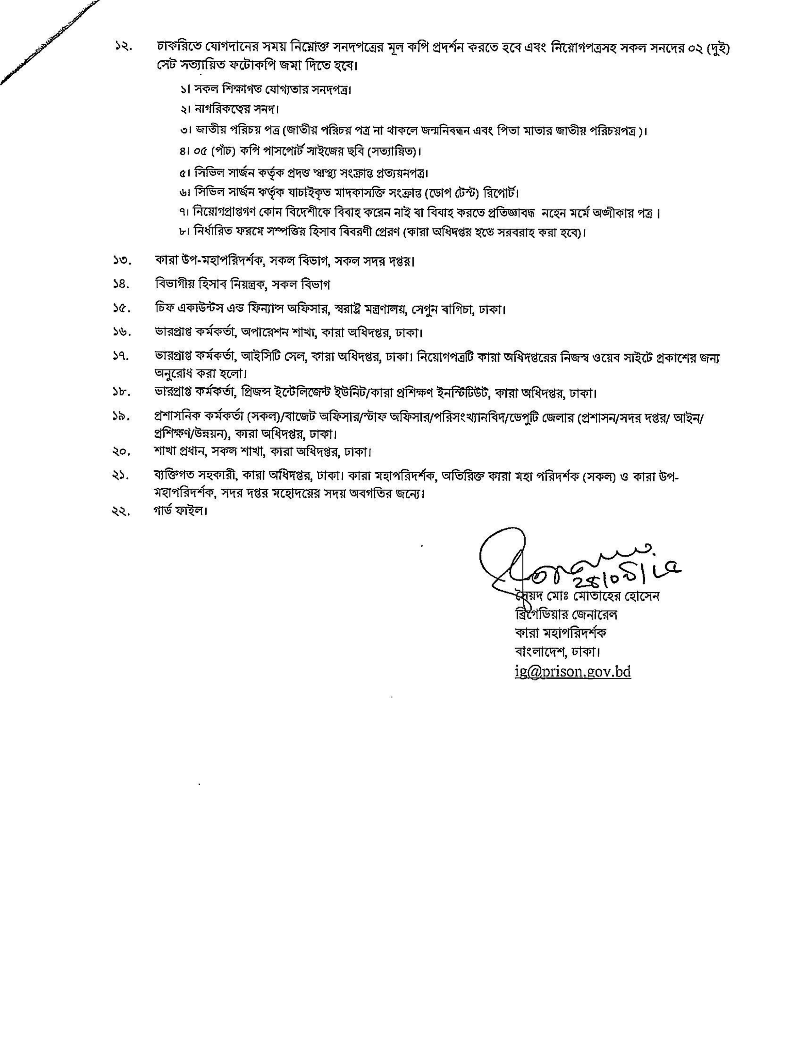 নিয়োগপ্রাপ্ত প্রার্থীগণকে অবশ্যই মূল কপি প্রদর্শন করতে হবে এবং সকল সনদের ০২ (দুই) সেট সত্যায়িত ফটোকপি জমা দিতে হবে।