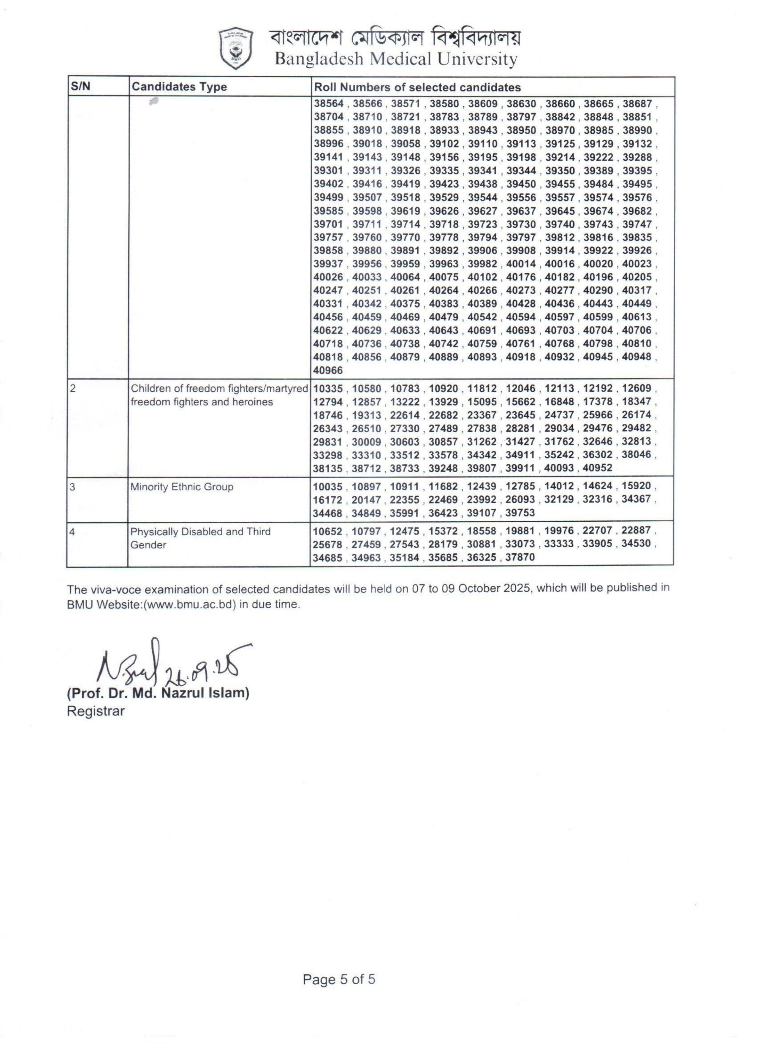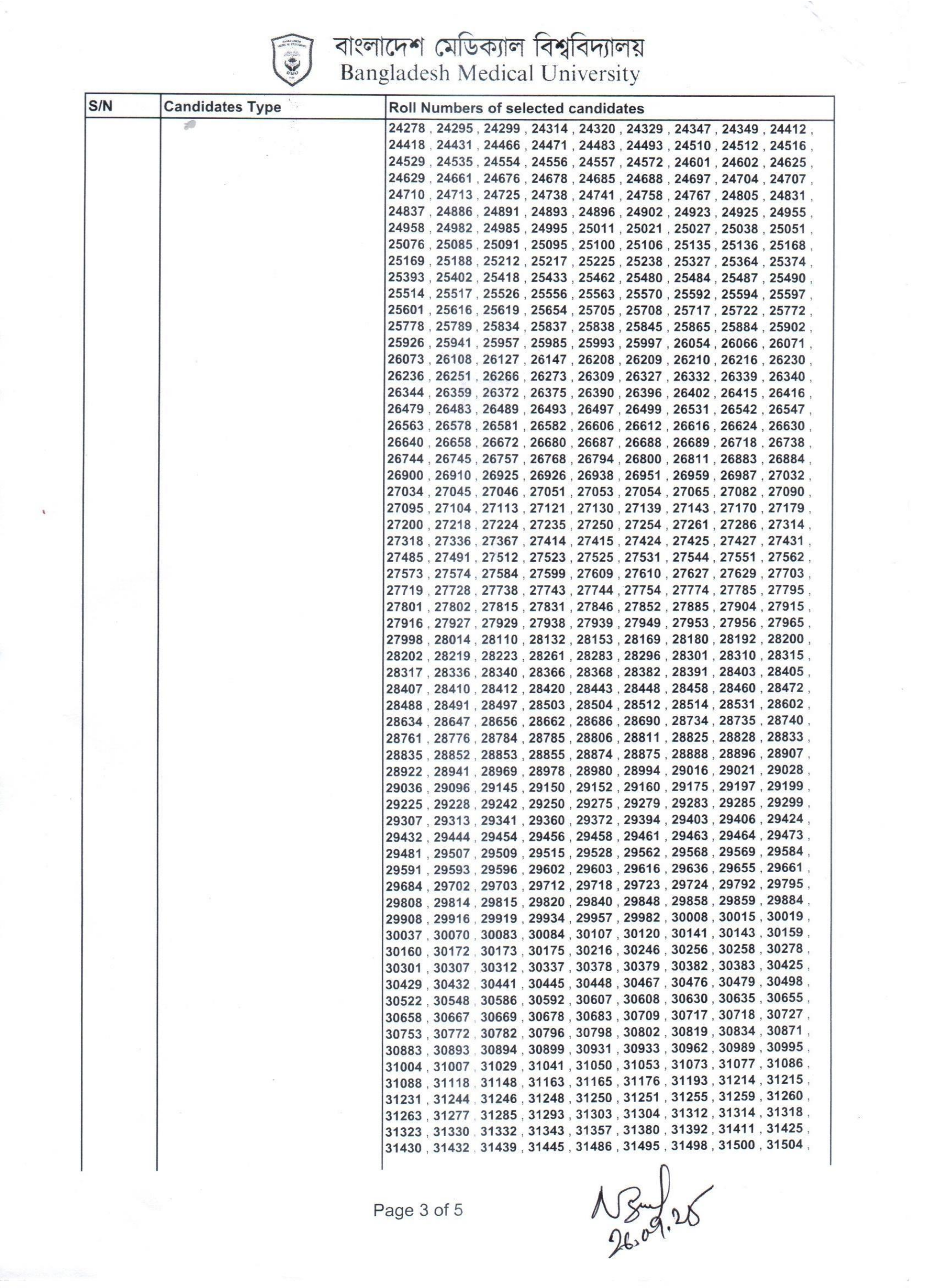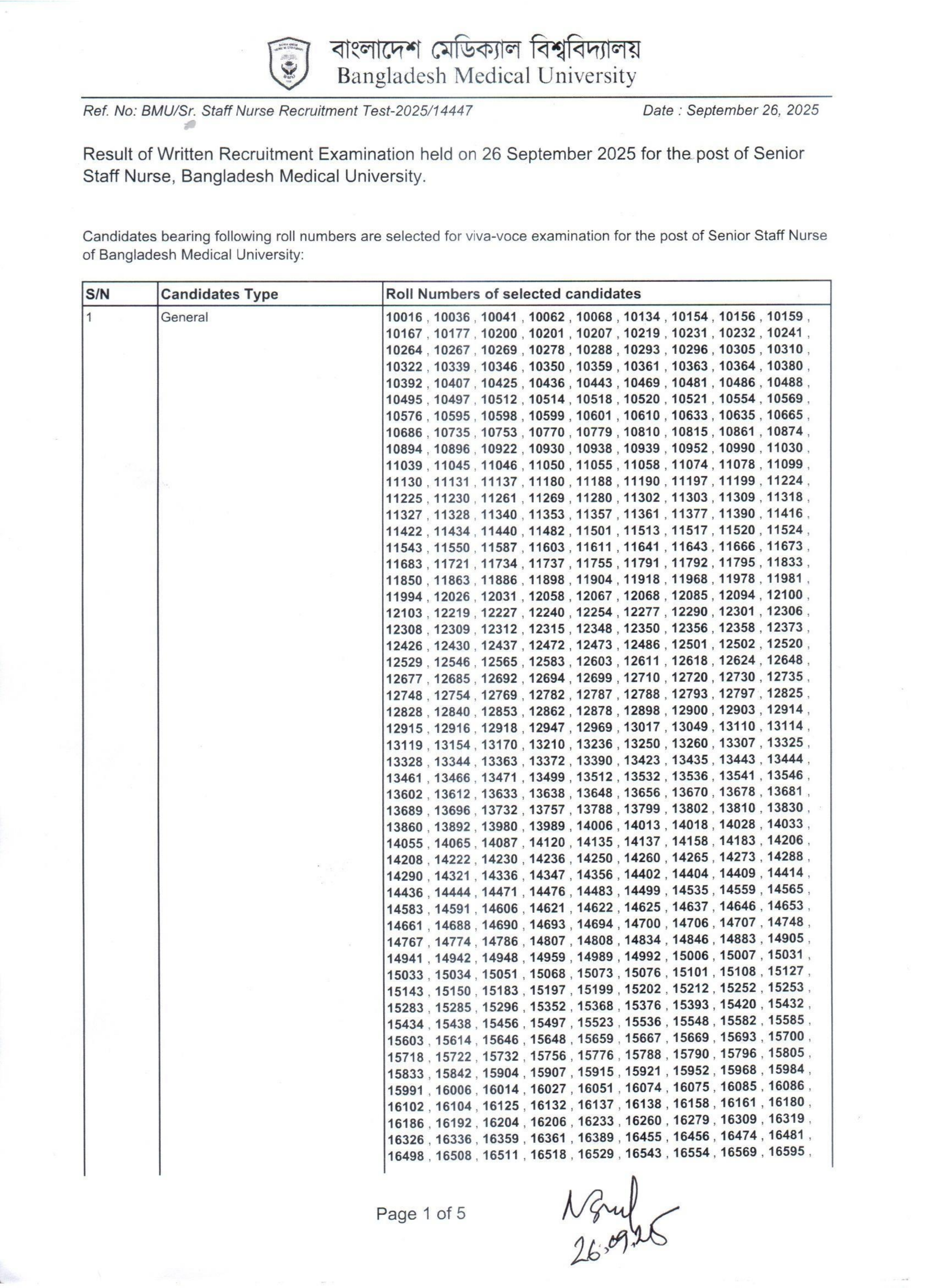 ৮০০টি সিনিয়র স্টাফ নার্স পদে বাংলাদেশ মেডিক্যাল বিশ্ববিদ্যালয় এর নিয়োগ পরীক্ষার ফলাফল ২০২৫ প্রকাশ।
