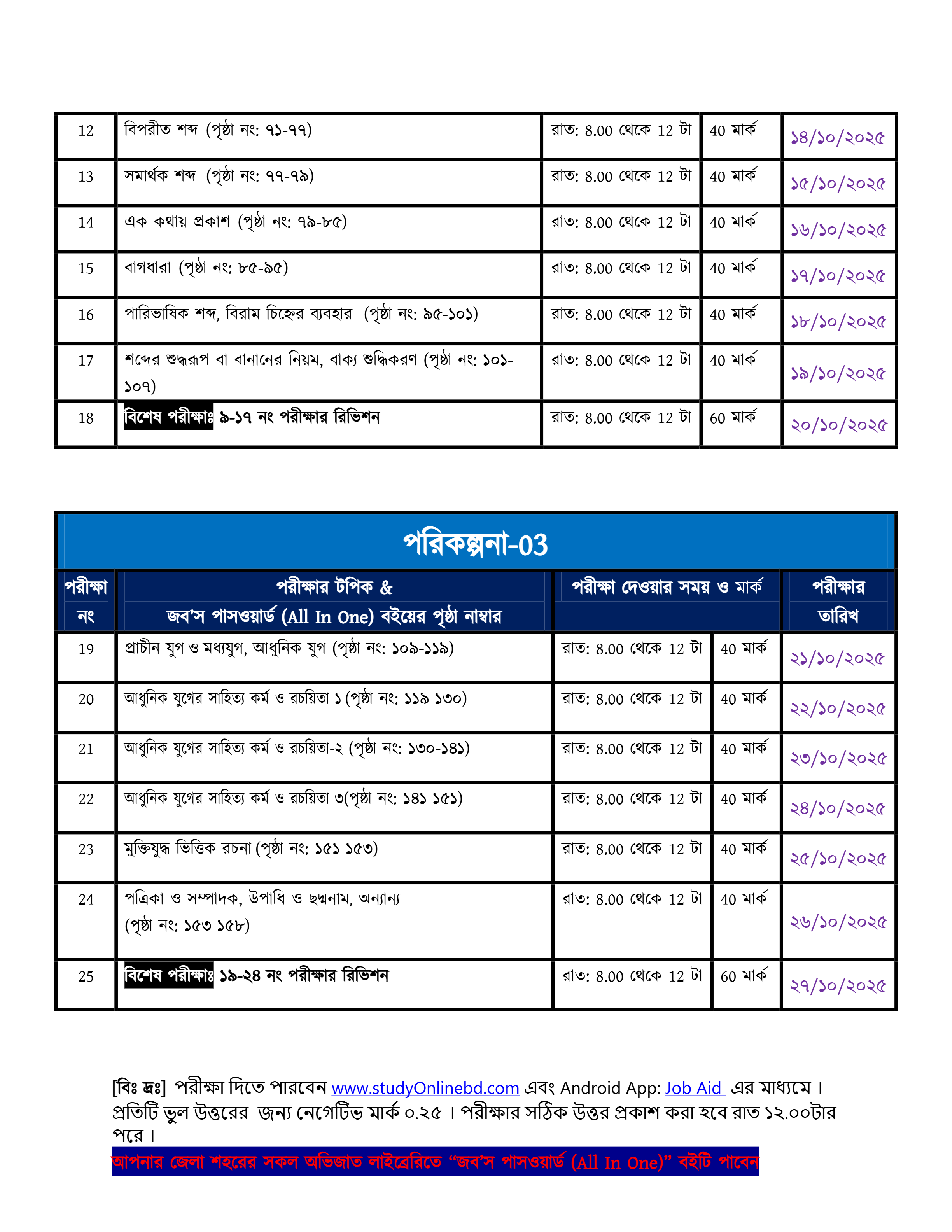 পরীক্ষার সম্পূর্ণ রুটিনঃ Download now