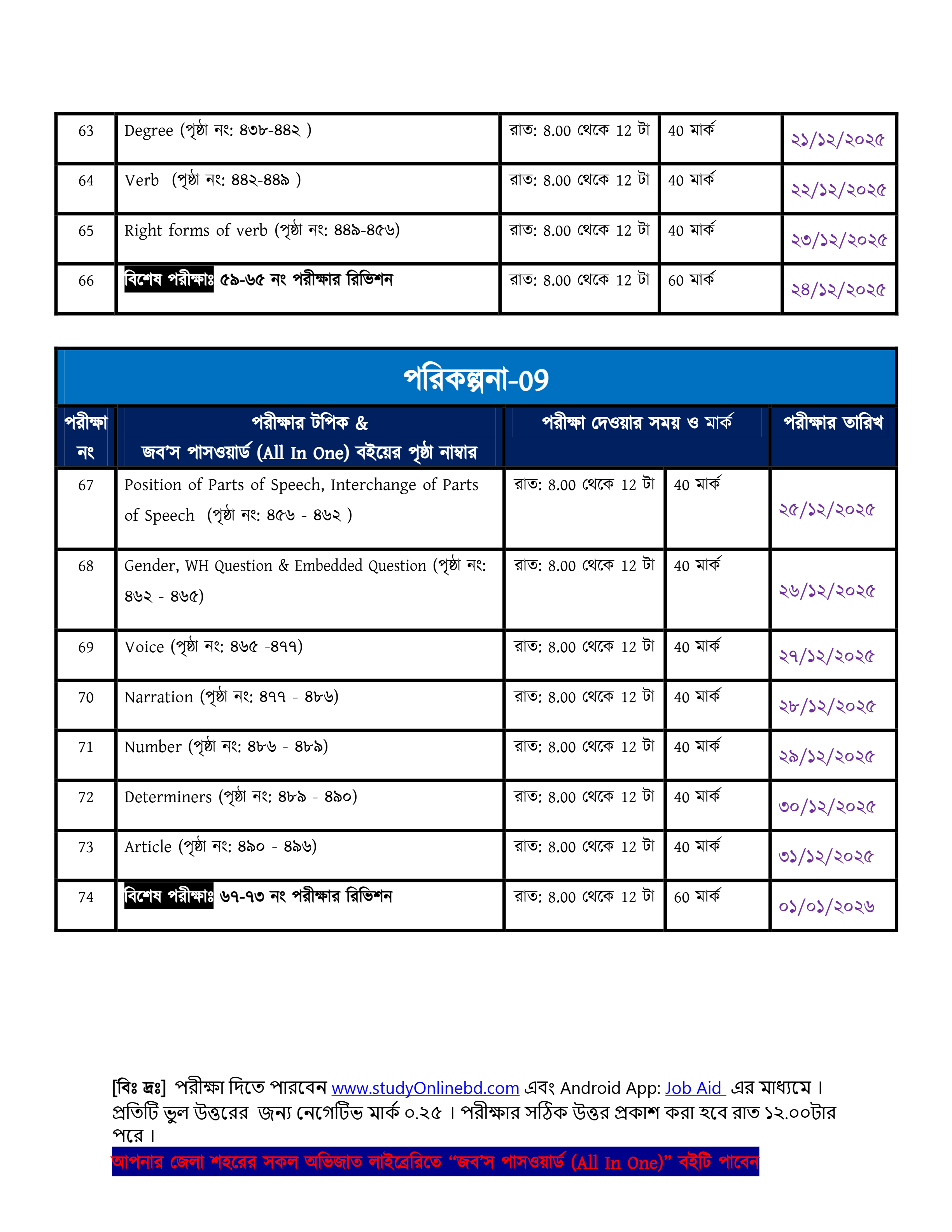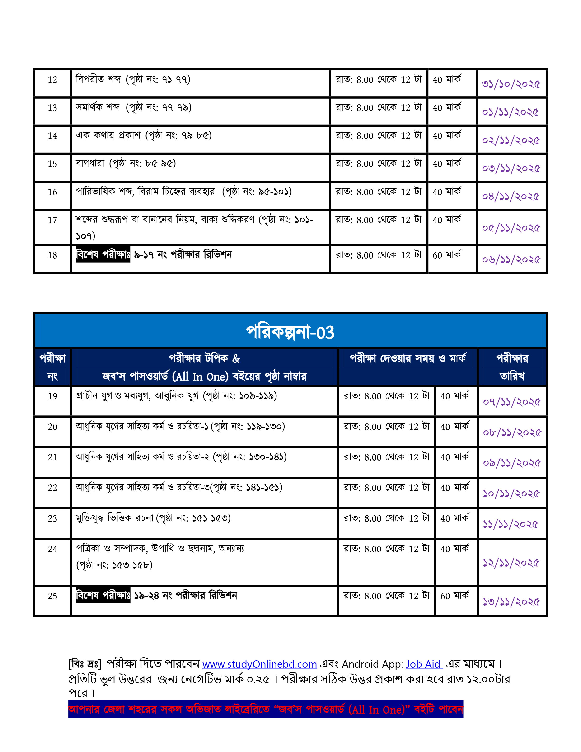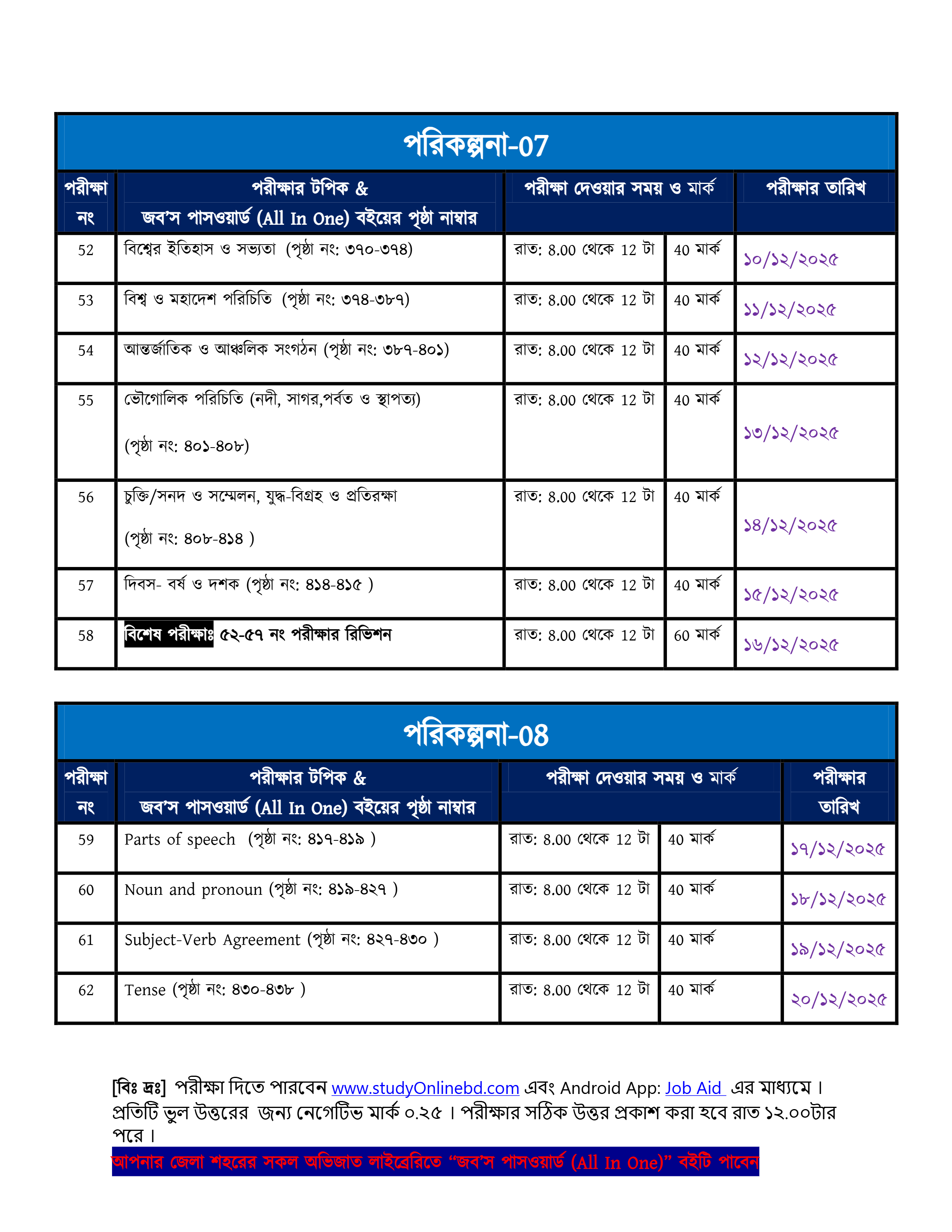 জব'স পাসওয়ার্ড বইটির মূল্যঃ ৪৫০ টাকা। সেই সাথে প্রতিটা মেম্বারের জন্য আলাদা ১০০ দিনের পরীক্ষার রুটিন পরিকল্পনা করা হয়েছে । আপনি যে দিন বইটি ক্রয় করবেন এবং পরীক্ষার রুটিন ডাউনলোড দিবেন, সেই দিন থেকে আপনার জন্য ১০০ দিনের পরীক্ষার রুটিন তৈরি হবে এবং আপনি ১০০ দিনে বইটি শেষ করতে পারবেন।