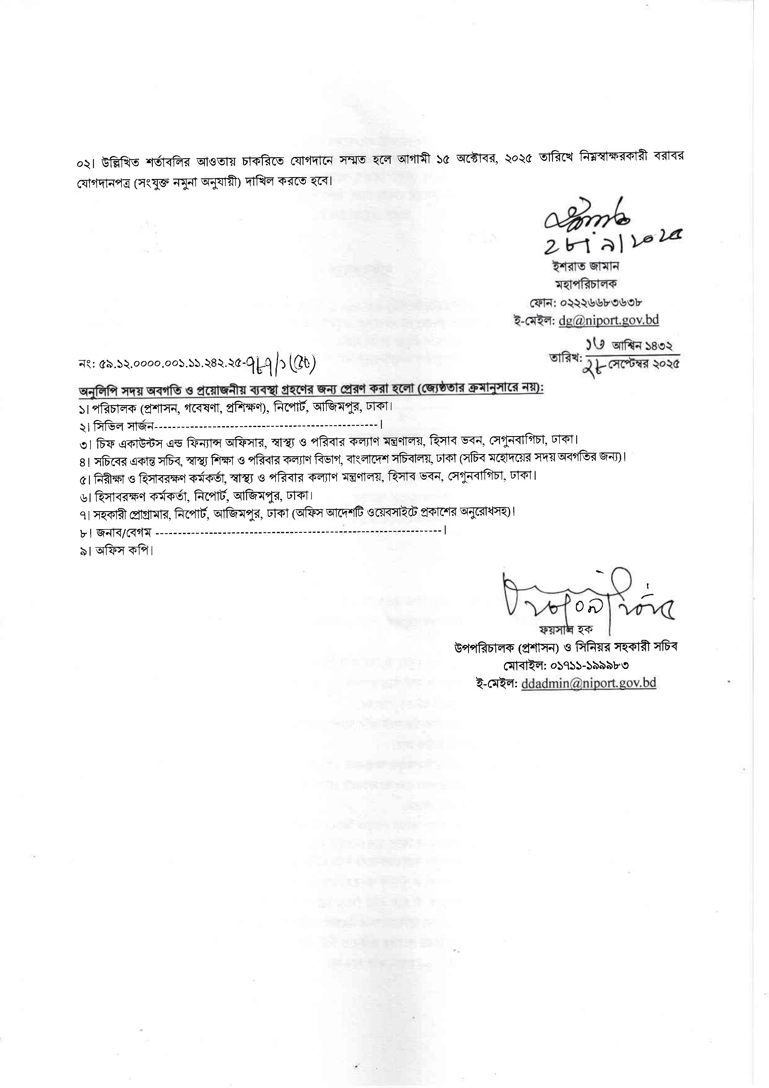 নির্বাচিত প্রার্থীকে আগামী ১৫ অক্টোবর, ২০২৫ তারিখের মধ্যে যোগদানপত্র দাখিল করতে হবে। যোগদানের তারিখ থেকে এ নিয়োগ কার্যকর হবে এবং নির্ধারিত তারিখে যোগদানে ব্যর্থ হলে নিয়োগপত্র বাতিল বলে গণ্য হবে।