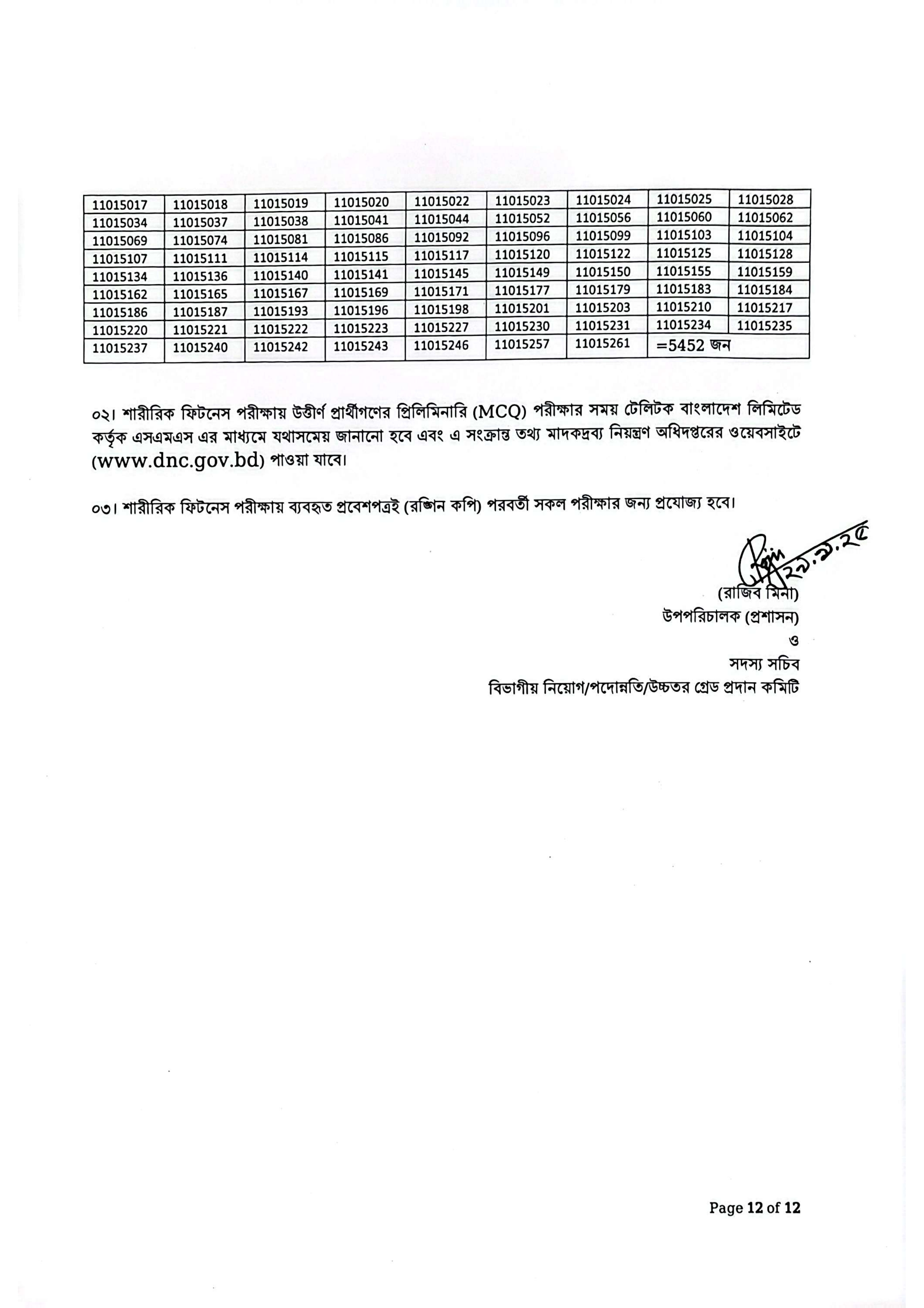 পরীক্ষা সংক্রান্ত বিস্তারিত তথ্য মাদকদ্রব্য নিয়ন্ত্রণ অধিদপ্তরের অফিসিয়াল ওয়েবসাইটে (dnc.gov.bd) পাওয়া যাবে। শারীরিক ফিটনেস পরীক্ষায় ব্যবহৃত প্রবেশপত্র (রঙিন কপি) পরবর্তী সকল পরীক্ষার জন্য প্রযোজ্য হবে।