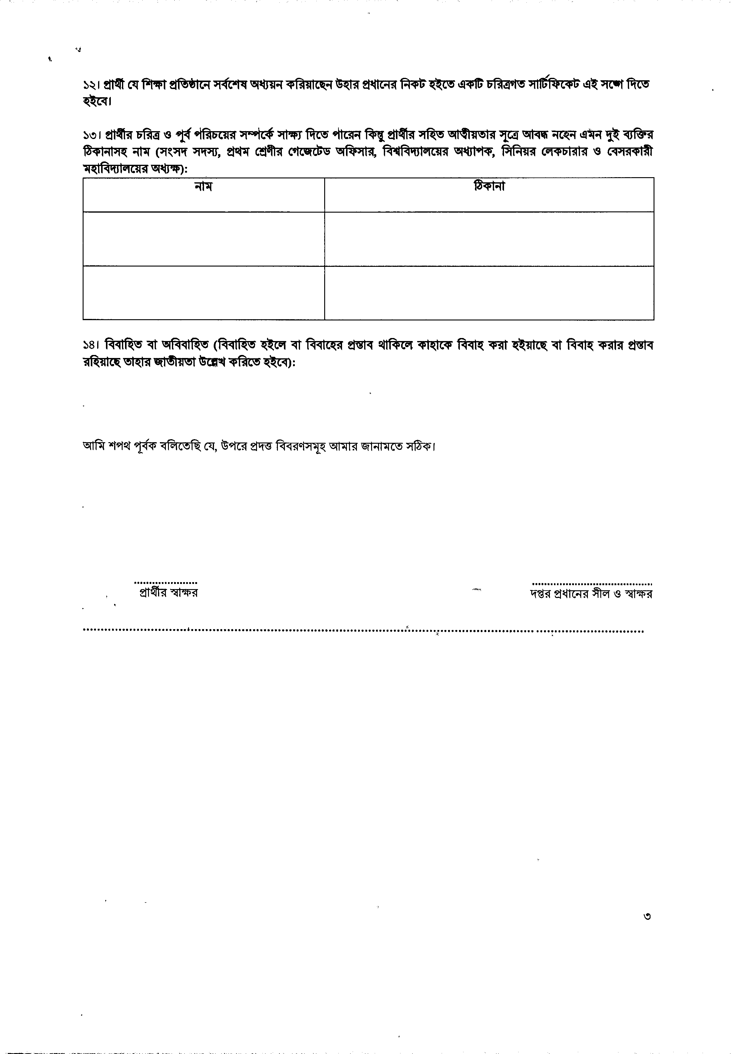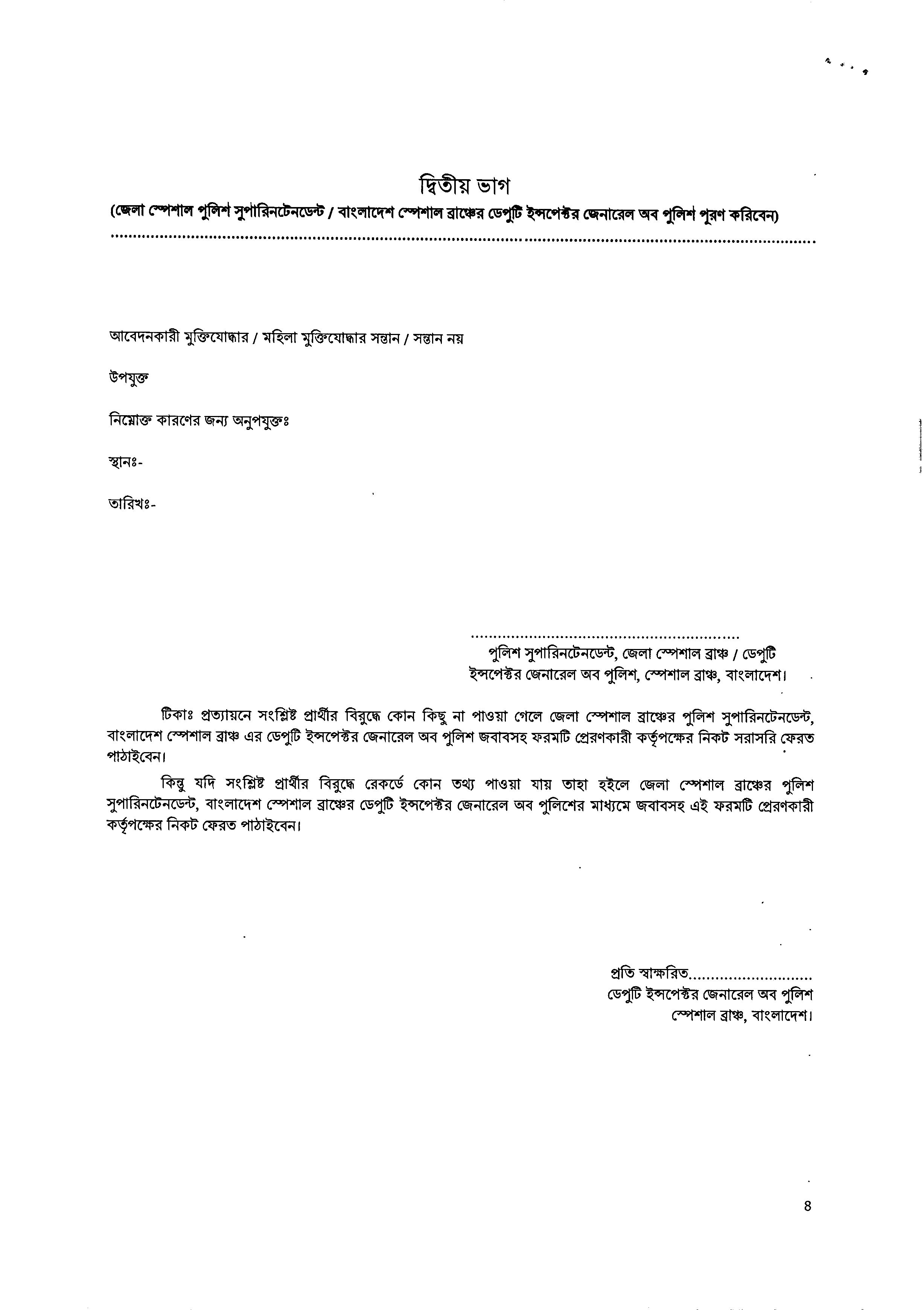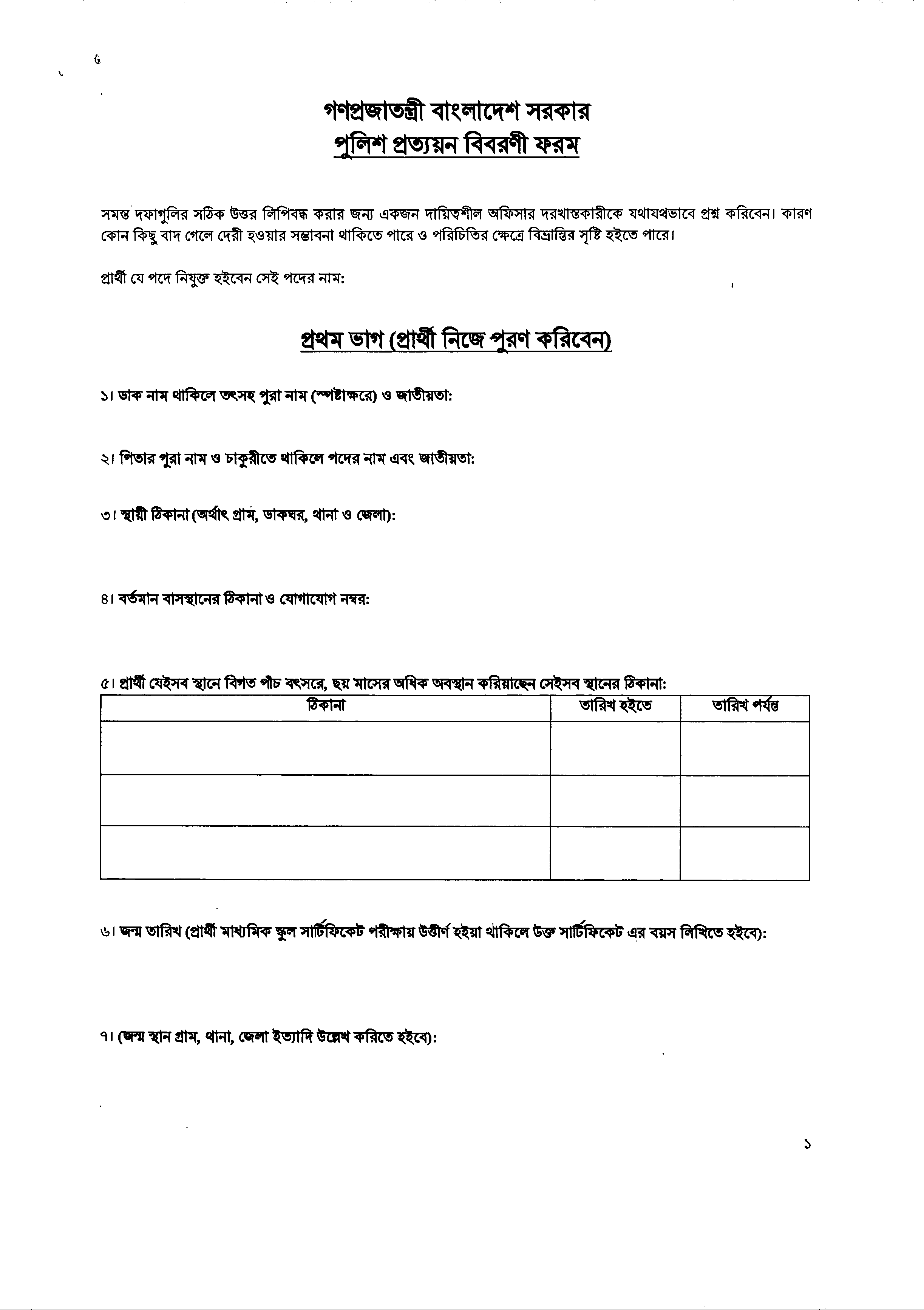 জমাদানের সময় ২ কপি পুলিশ ভেরিফিকেশন ফরমের সাথে মৌখিক পরীক্ষায় জমাদানকৃত সকল কাগজপত্র, ইউনিয়ন পরিষদ/পৌরসভা/সিটি কর্পোরেশনের মেয়র কর্তৃক প্রদত্ত নাগরিক সনদপত্র এবং চারিত্রিক সনদপত্র অবশ্যই সংযুক্ত করতে হবে।