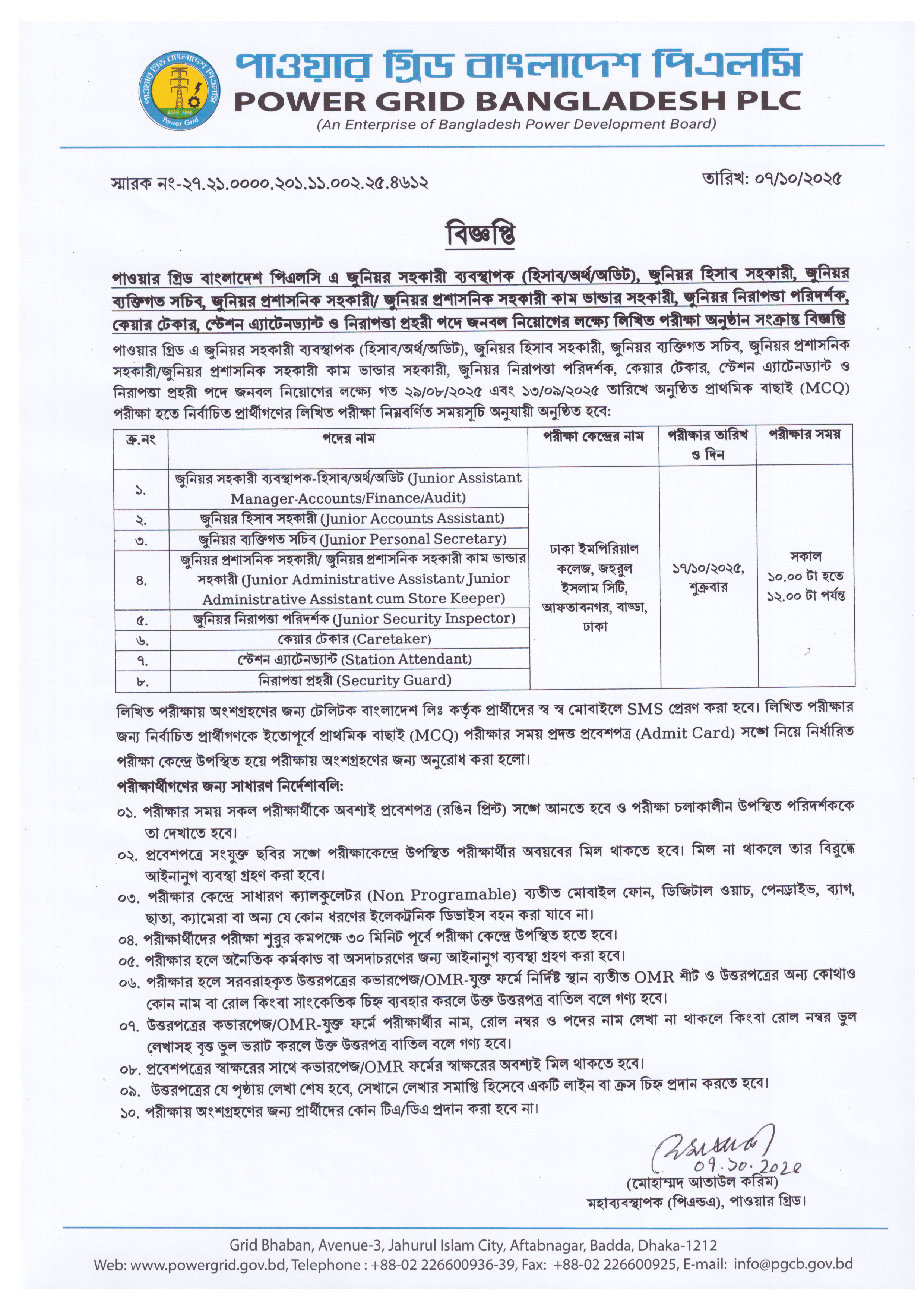 - পরীক্ষার তারিখ: ১৭/১০/২০২৫, শুক্রবার