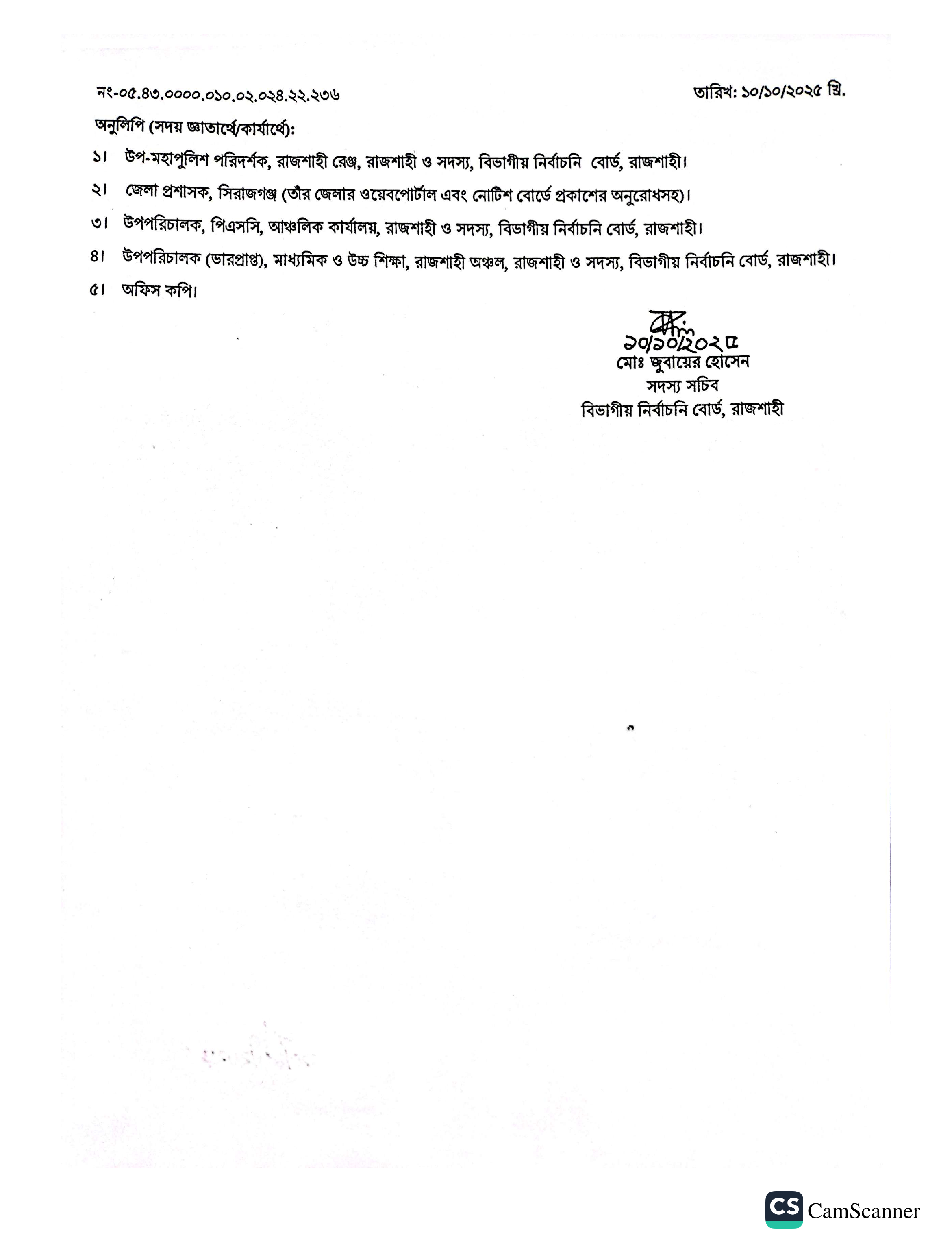 লিখিত পরীক্ষায় উত্তীর্ণ প্রার্থীদের ব্যবহারিক পরীক্ষা আগামী ১১/১০/২০২৫ খ্রি, তারিখ সকাল ১০:০০ টায় সিরাজগঞ্জ পলিটেকনিক ইনস্টিটিউট, সিরাজগঞ্জ-এ অনুষ্ঠিত হবে।