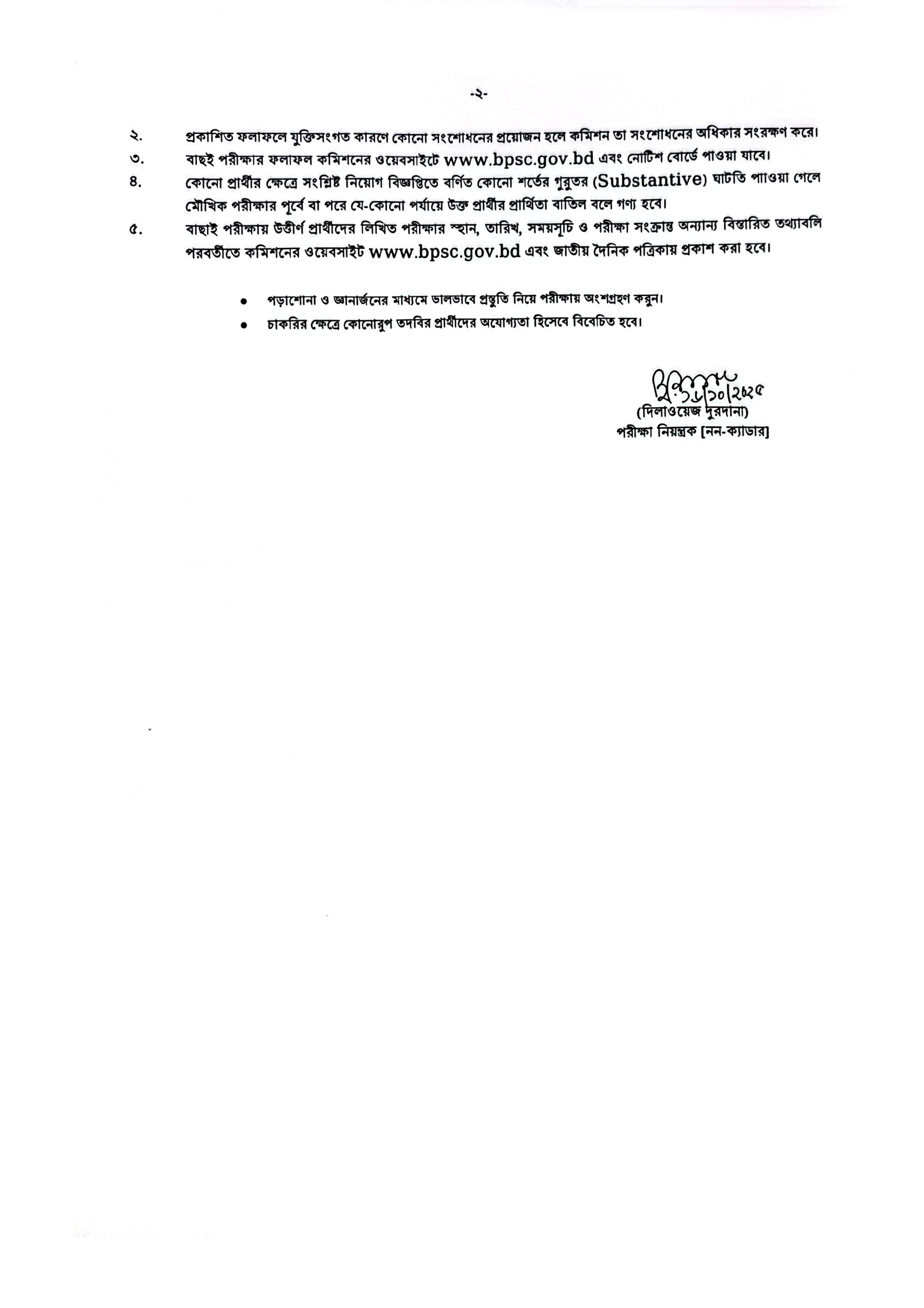 কমিশন প্রকাশিত ফলাফলে কোনো সংশোধনের প্রয়োজন হলে তা করার অধিকার সংরক্ষণ করে। এছাড়াও, নিয়োগ বিজ্ঞপ্তিতে বর্ণিত কোনো শর্তের গুরুতর ঘাটতি পাওয়া গেলে প্রার্থীর প্রার্থিতা মৌখিক পরীক্ষার পূর্বে বা পরে যে-কোনো পর্যায়ে বাতিল বলে গণ্য হবে।