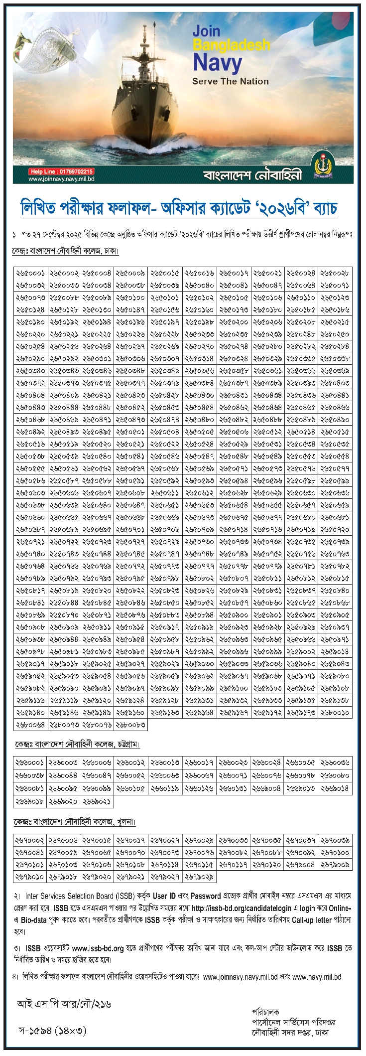 বাংলাদেশ নৌবাহিনীর পরীক্ষার ফলাফল প্রকাশ