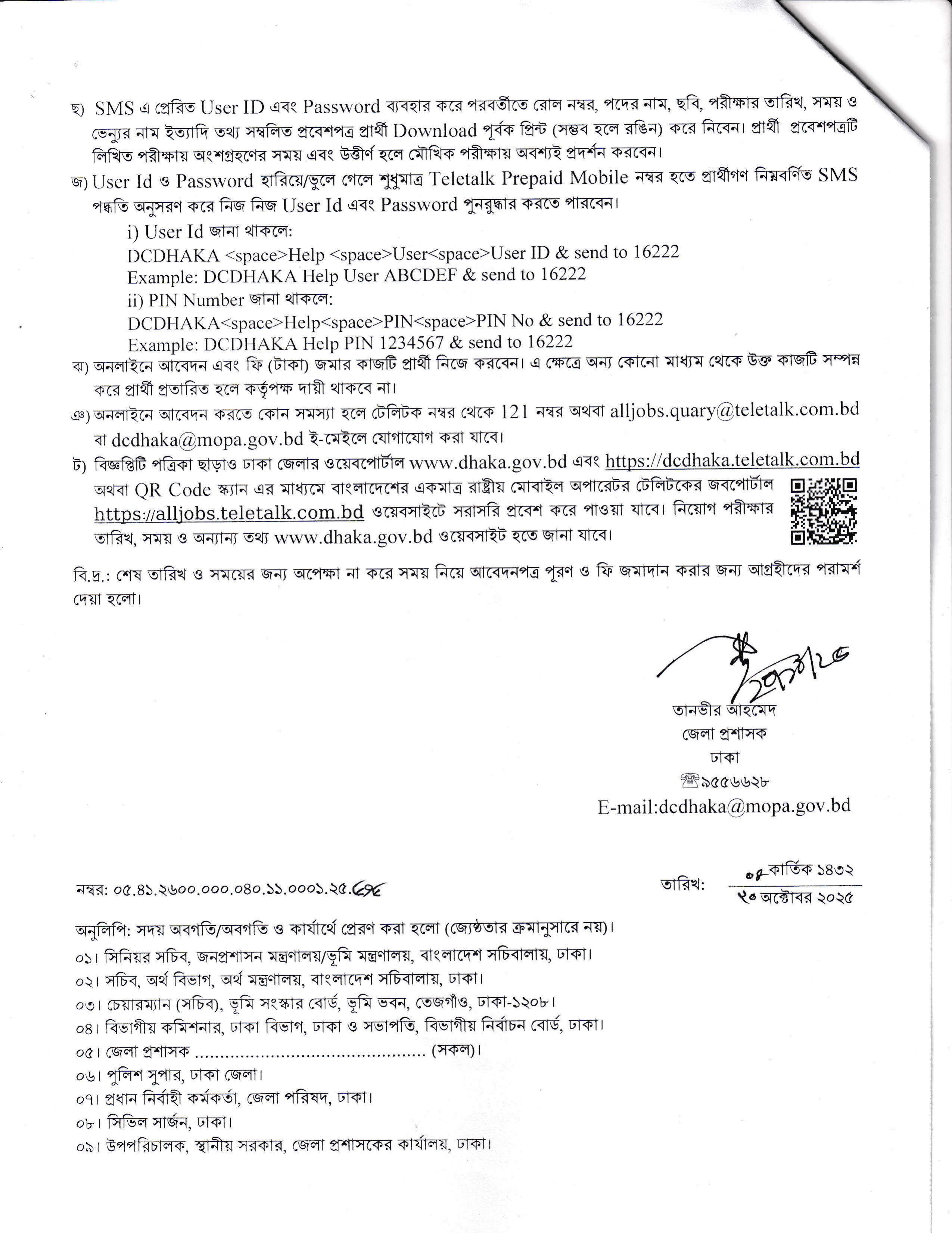 আবেদনের শেষ তারিখ: ১৬ নভেম্বর ২০২৫, বিকাল ০৫:০০টা