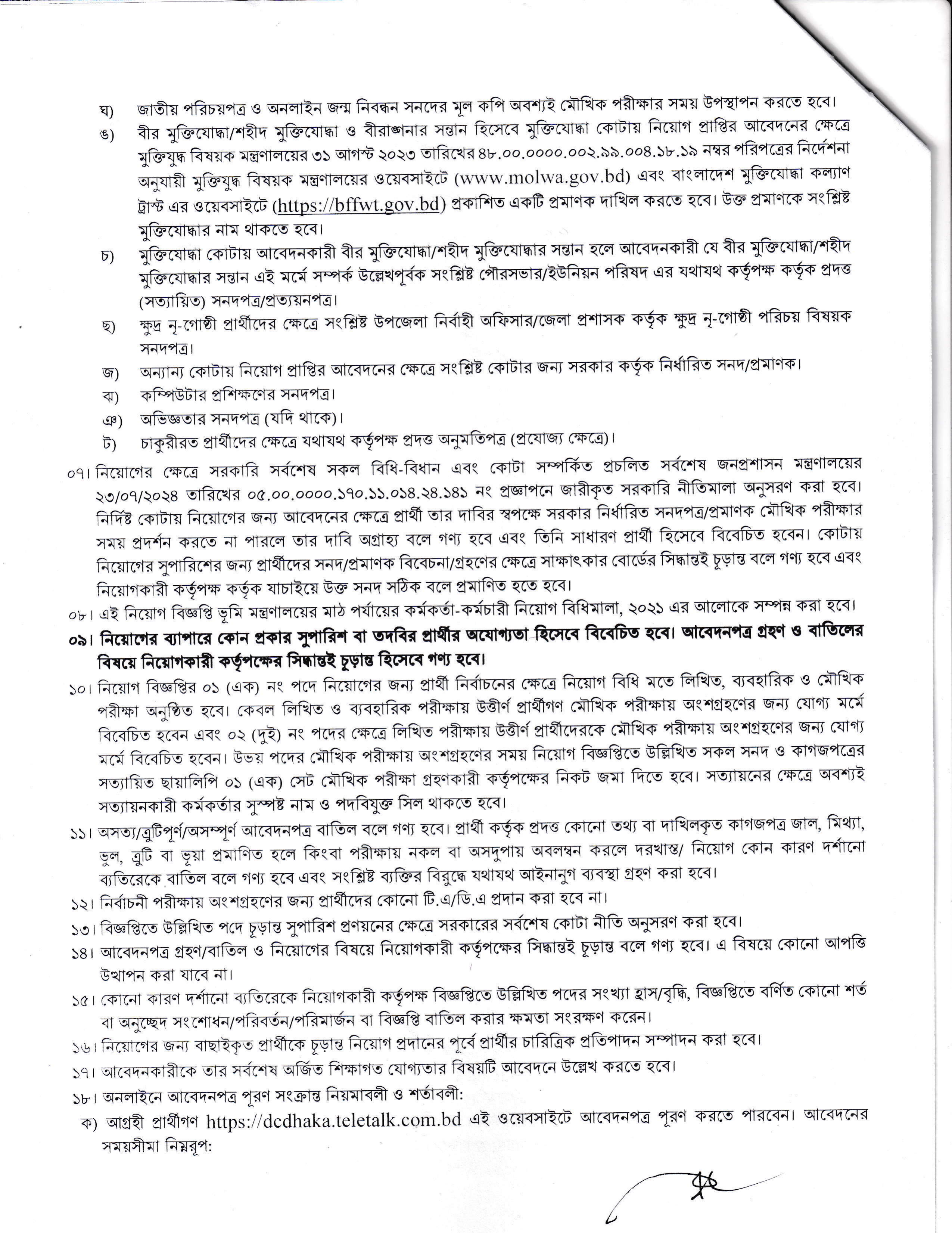 অফিস সহকারী কাম-কম্পিউটার মুদ্রাক্ষরিক: কোনো স্বীকৃত বোর্ড হতে অন্যুন দ্বিতীয় বিভাগ বা সমমানের সিজিপিএসহ উচ্চ মাধ্যমিক সাটিফিকেট বা সমমানের পরীক্ষায় উত্তীর্ণ; কম্পিউটার চালনায় দক্ষতা এবং কম্পিউটার মুদ্রাক্ষর গতি মিনিটে বাংলায় সর্বনিম্ন ২০ শব্দ এবং ইংরেজিতে সর্বনিম্ন ২০ শব্দ হতে হবে।