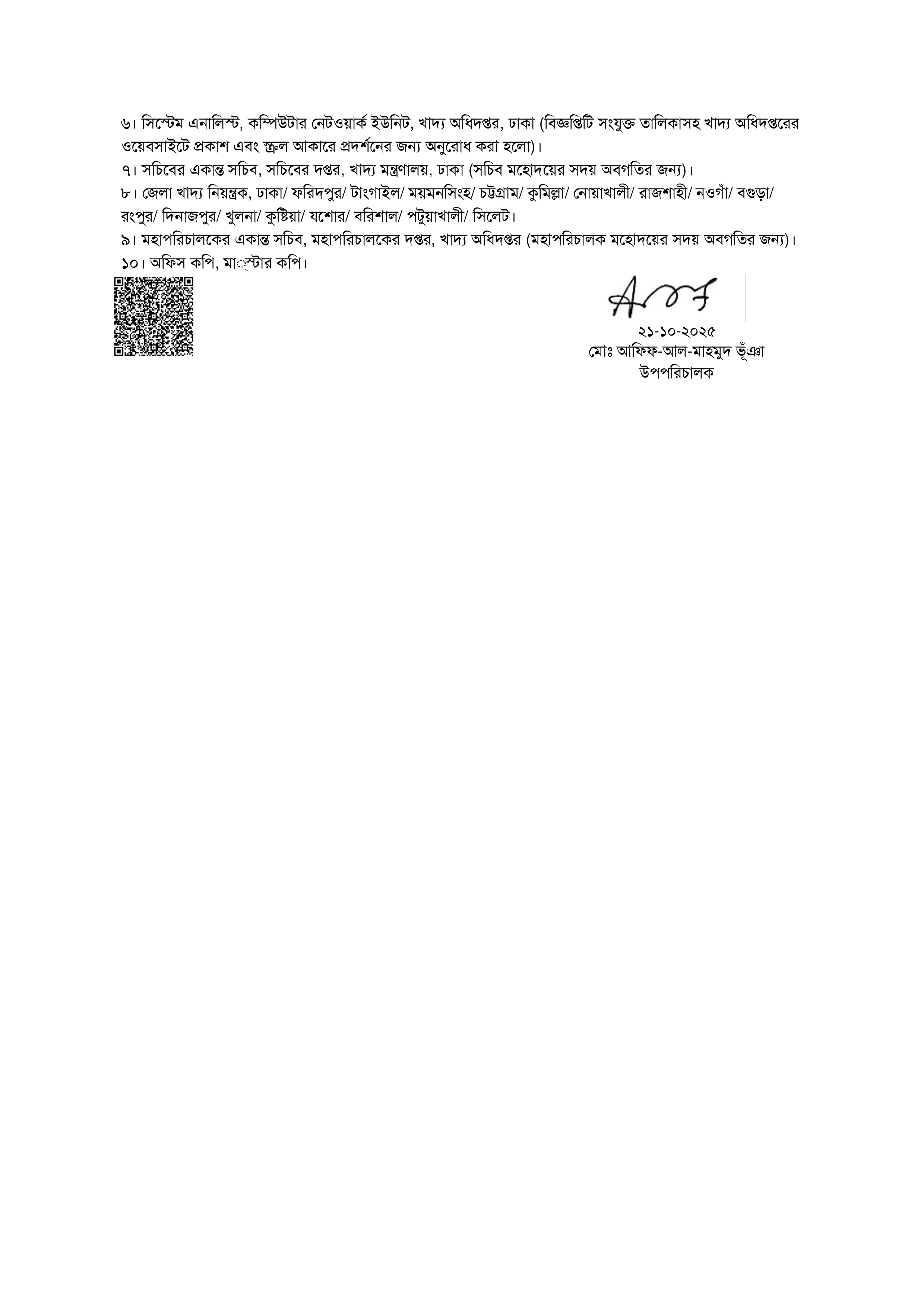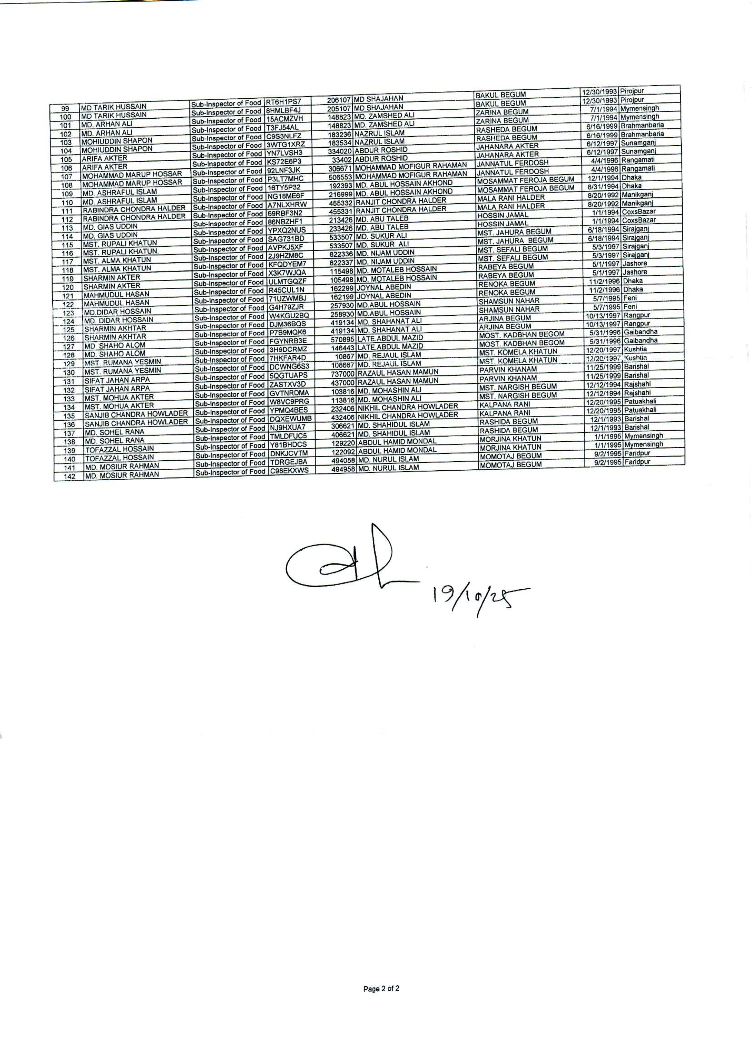 খাদ্য অধিদপ্তরের উপখাদ্য পরিদর্শক (গ্রেড-১৩) পদের ১৪২ জন প্রার্থীর আবেদন বাতিল করা হয়েছে।
