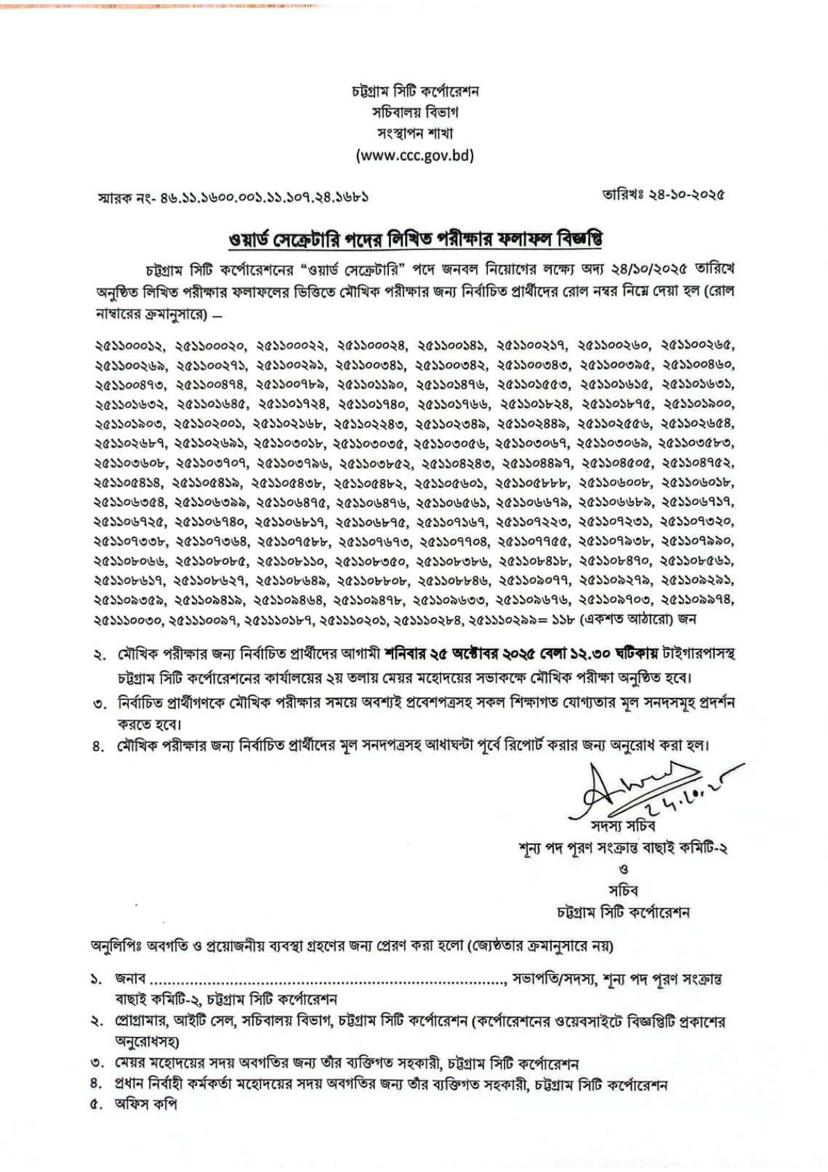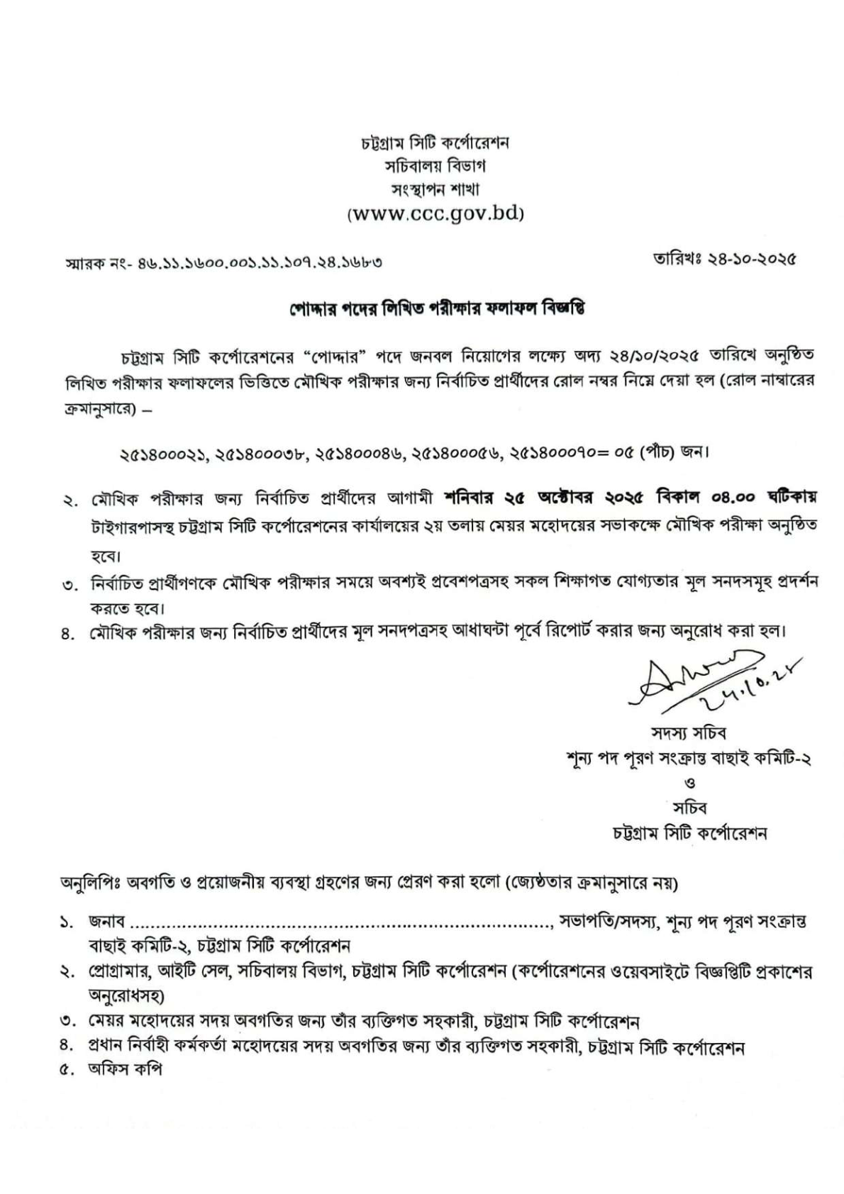 মৌখিক পরীক্ষার তারিখঃ ২৫-১০-২০২৫ তারিখ