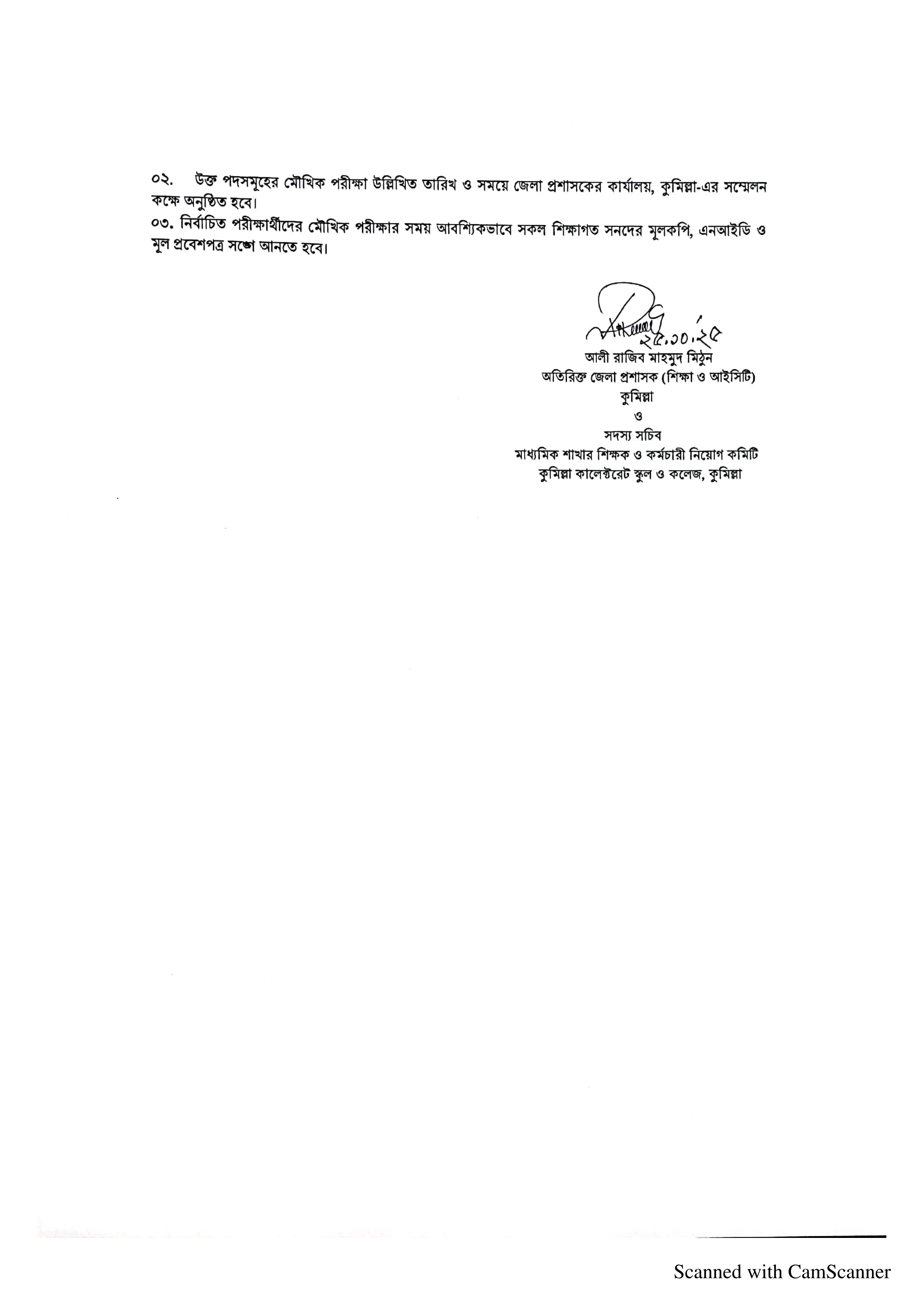 মৌখিক পরীক্ষা জেলা প্রশাসকের কার্যালয়, কুমিল্লা-এর সম্মেলন কক্ষে অনুষ্ঠিত হবে। মৌখিক পরীক্ষার সময় সকল শিক্ষাগত সনদের মুলকপি, এনআইডি এবং মূল প্রবেশপত্র আবশ্যিকভাবে সঙ্গে আনতে হবে।