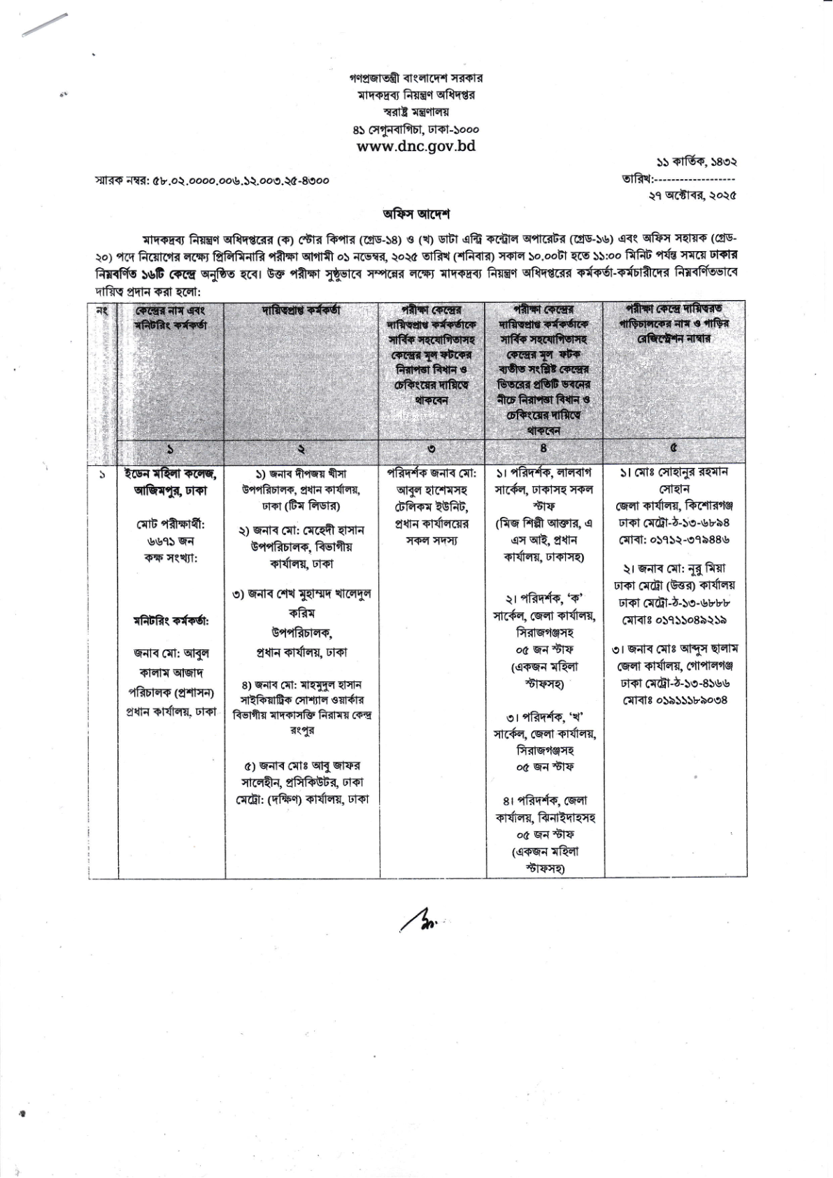 মাদকদ্রব্য নিয়ন্ত্রণ অধিদপ্তরের (ক) স্টোর কিপার, (খ) ডাটা এন্ট্রি কন্ট্রোল অপারেটর ও (গ) অফিস সহায়ক পদের প্রিলিমিনারি (MCQ) পরীক্ষা