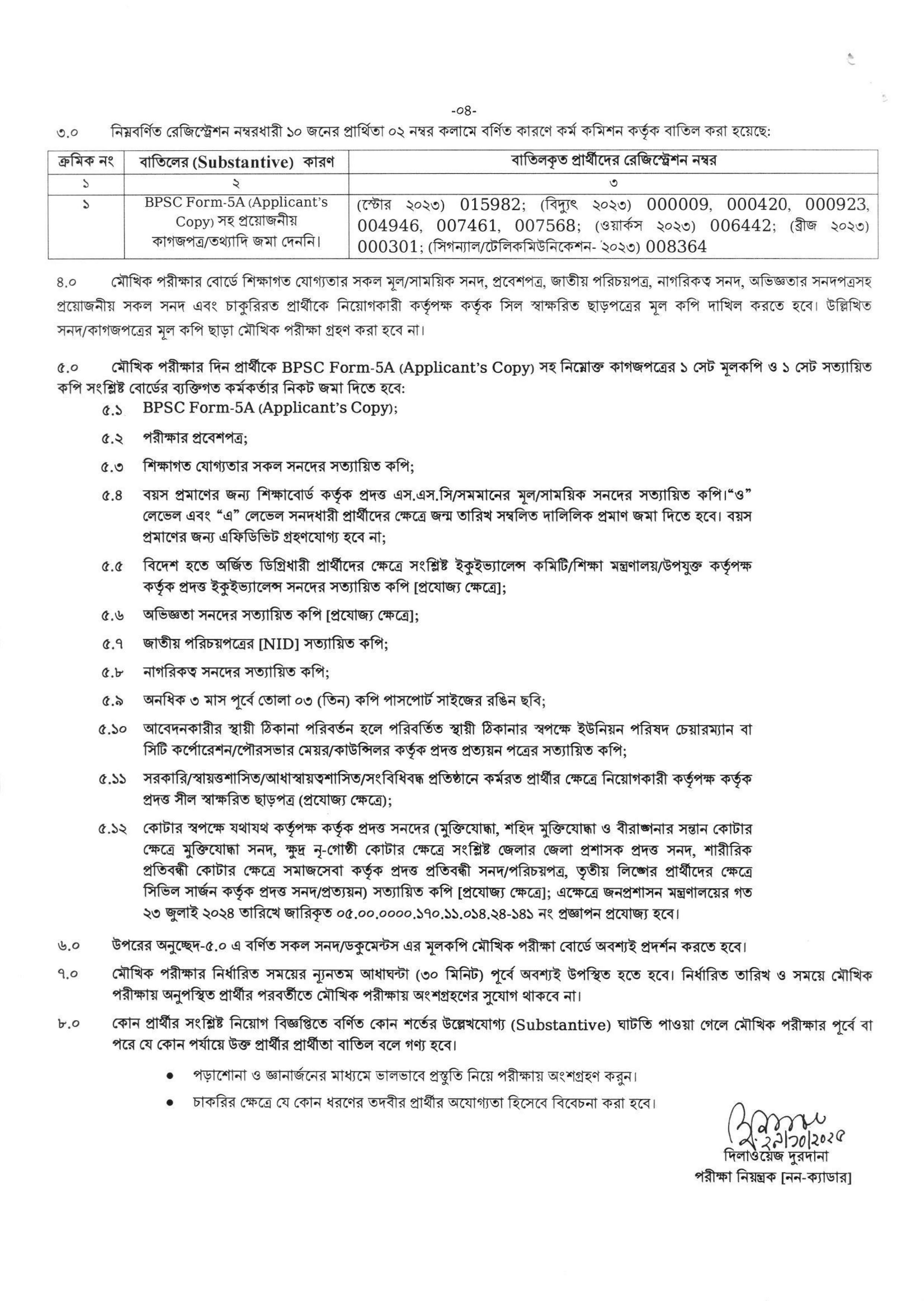 মৌখিক পরীক্ষার দিন প্রার্থীদের শিক্ষাগত যোগ্যতার সকল মূল/সাময়িক সনদ, প্রবেশপত্র, জাতীয় পরিচয়পত্র, নাগরিকত্ব সনদ, অভিজ্ঞতার সনদপত্র (যদি থাকে) এবং সরকারি/স্বায়ত্তশাসিত প্রতিষ্ঠানে কর্মরত প্রার্থীর ক্ষেত্রে নিয়োগকারী কর্তৃপক্ষ কর্তৃক সিল স্বাক্ষরিত ছাড়পত্রের মূল কপি দাখিল করতে হবে। উল্লিখিত সনদ/কাগজপত্রের মূল কপি ছাড়া মৌখিক পরীক্ষা গ্রহণ করা হবে না। এছাড়াও, প্রার্থীদের BPSC Form-5A সহ প্রয়োজনীয় কাগজপত্রের ১ সেট মূলকপি ও ১ সেট সত্যায়িত কপি সংশ্লিষ্ট বোর্ডের ব্যক্তিগত কর্মকর্তার নিকট জমা দিতে হবে।