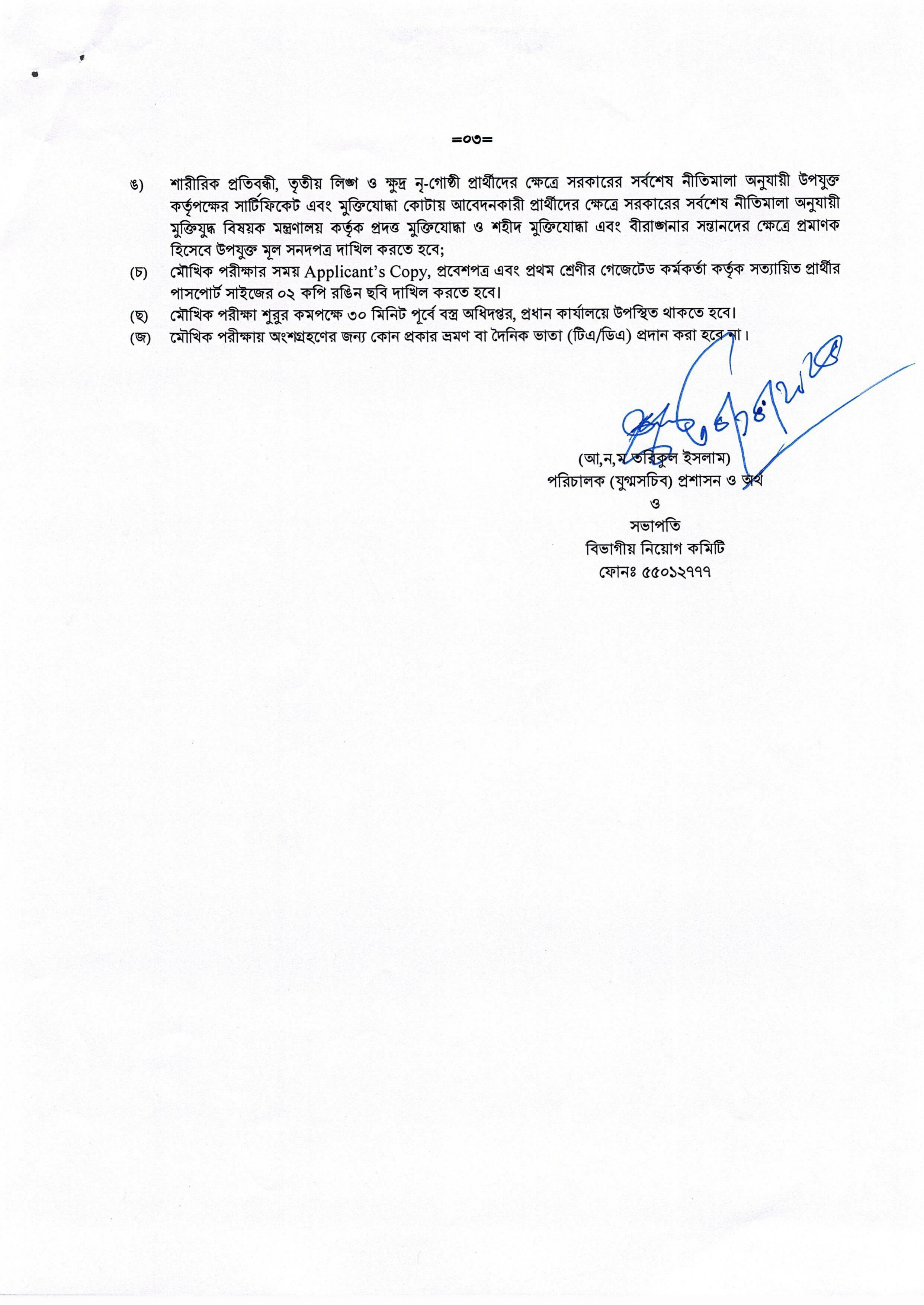 মৌখিক পরীক্ষা শুরুর কমপক্ষে ৩০ মিনিট পূর্বে উল্লিখিত স্থানে উপস্থিত থাকতে হবে। মৌখিক পরীক্ষায় অংশগ্রহণের জন্য কোন প্রকার ভ্রমণ বা দৈনিক ভাতা (টিএ/ডিএ) প্রদান করা হবে না।