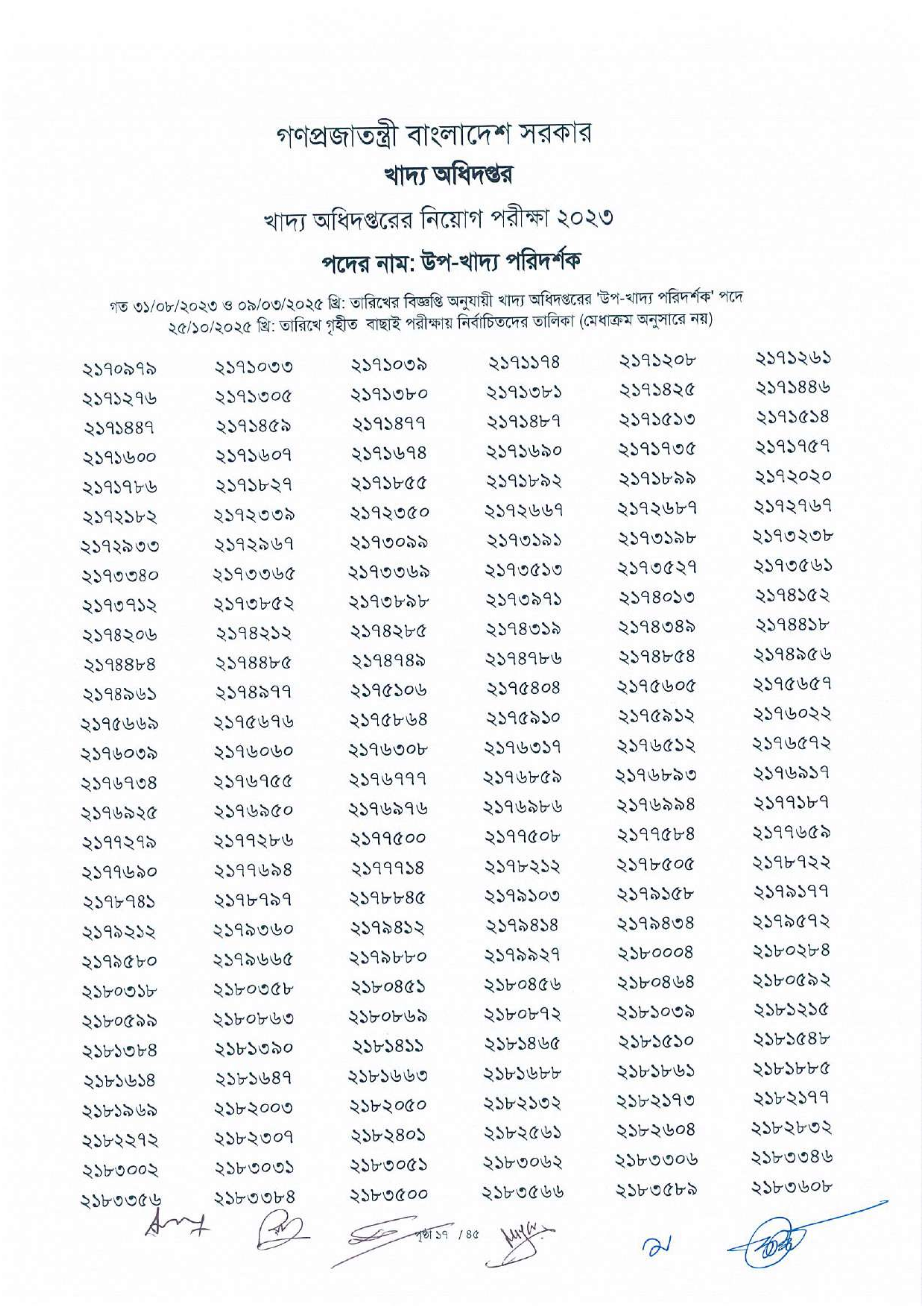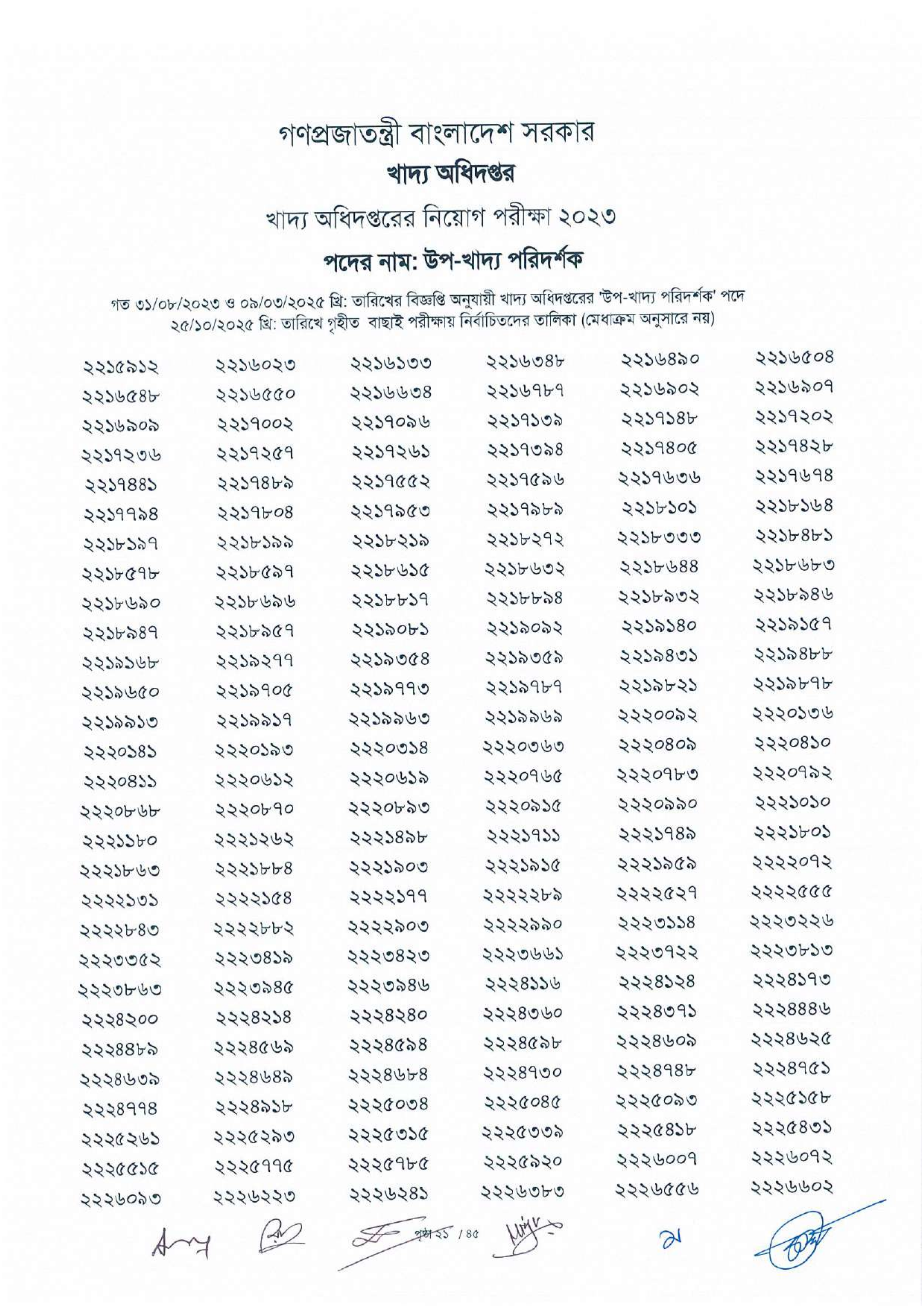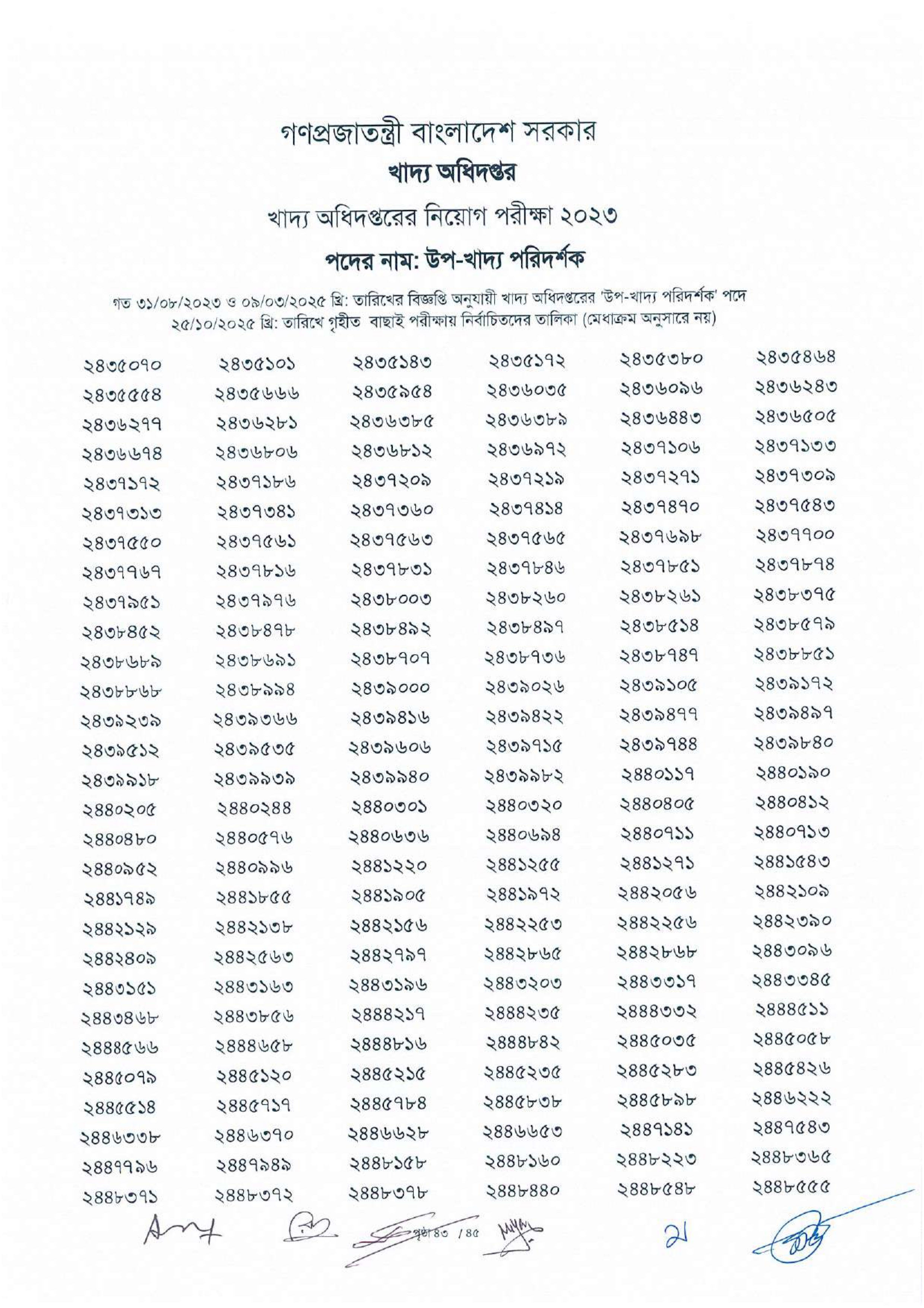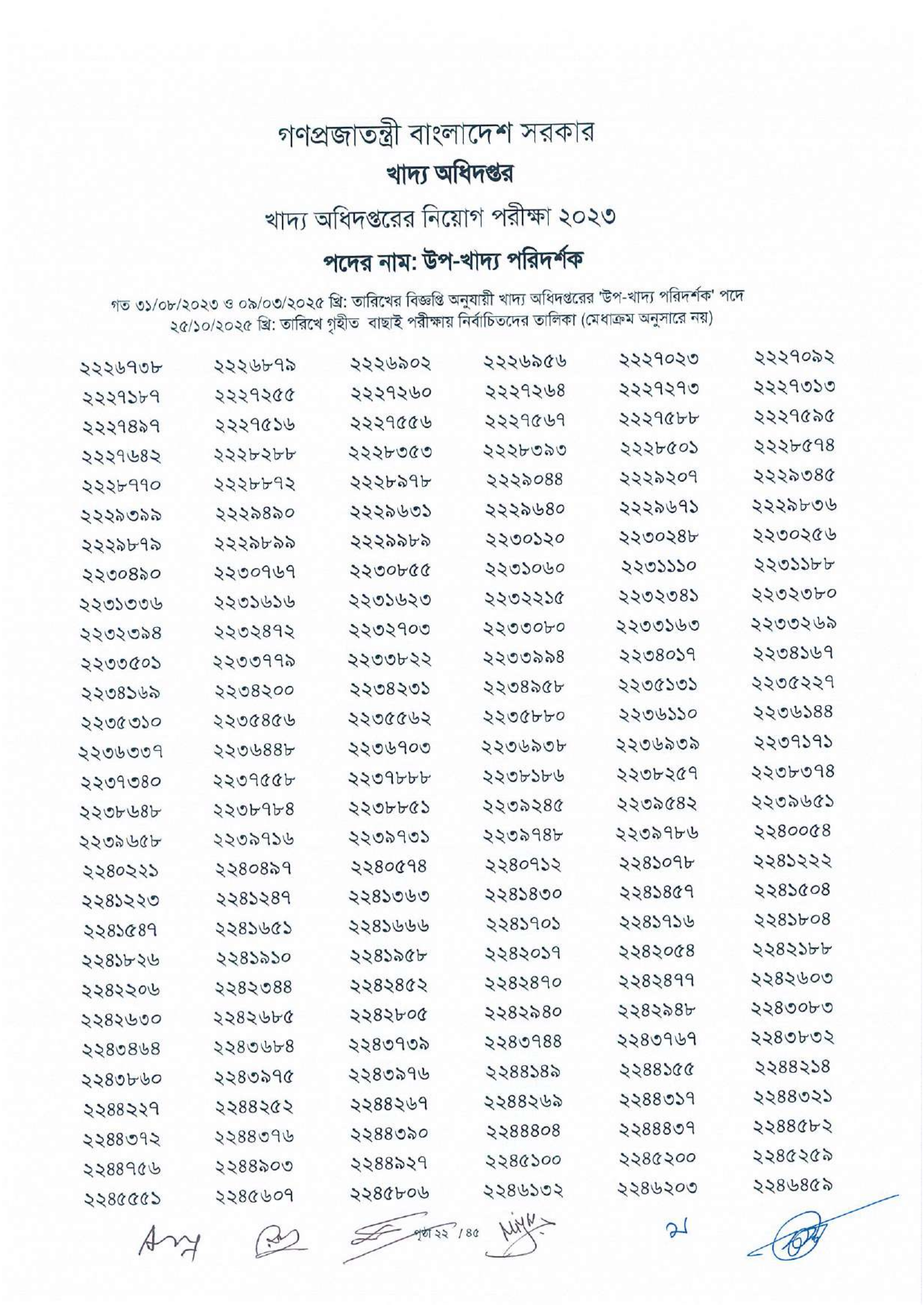 নির্বাচিত প্রার্থীদের লিখিত পরীক্ষার তারিখ ও সময় যথাসময়ে খাদ্য অধিদপ্তরের ওয়েবসাইট এবং অন্যান্য মাধ্যমে জানানো হবে।
