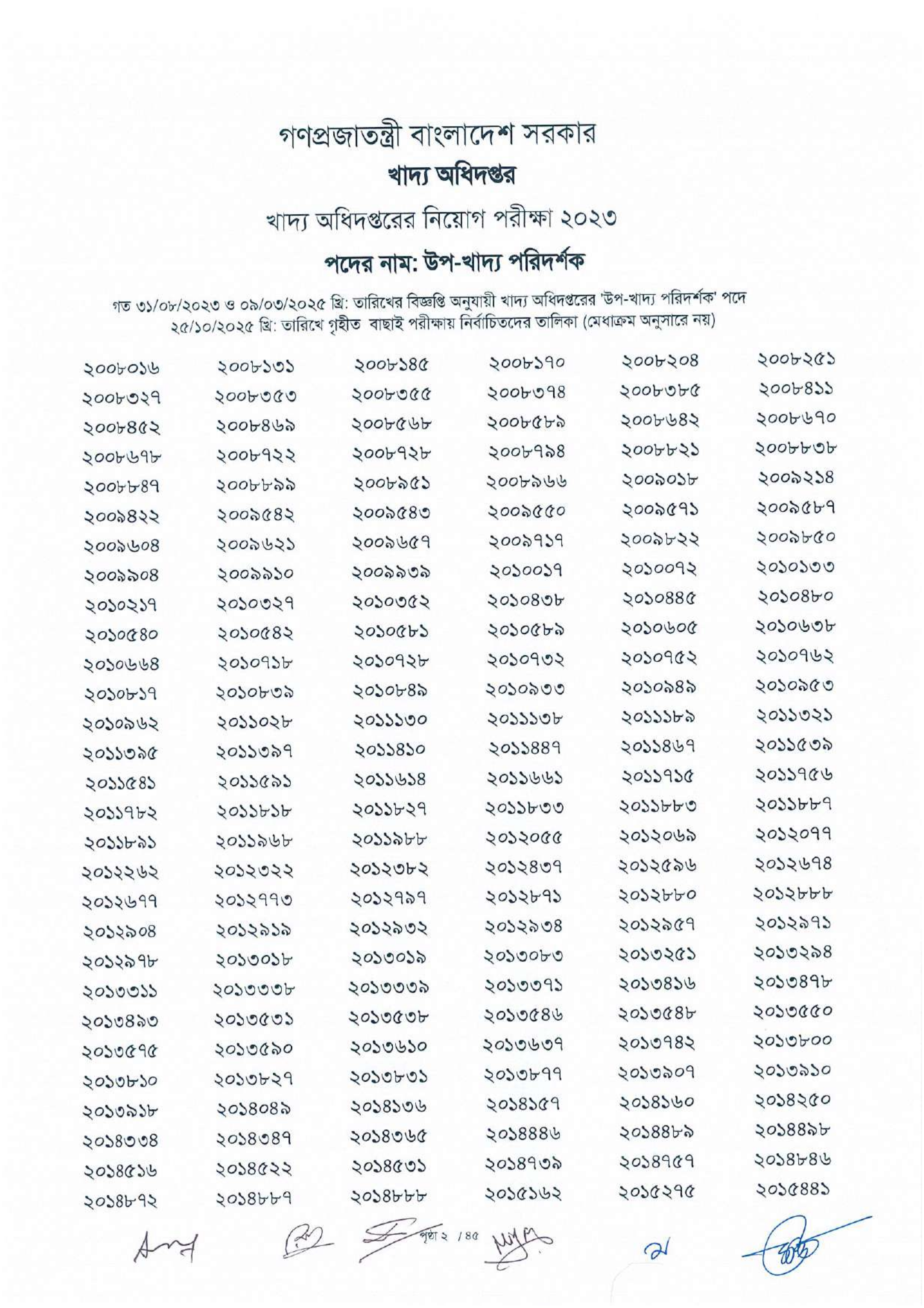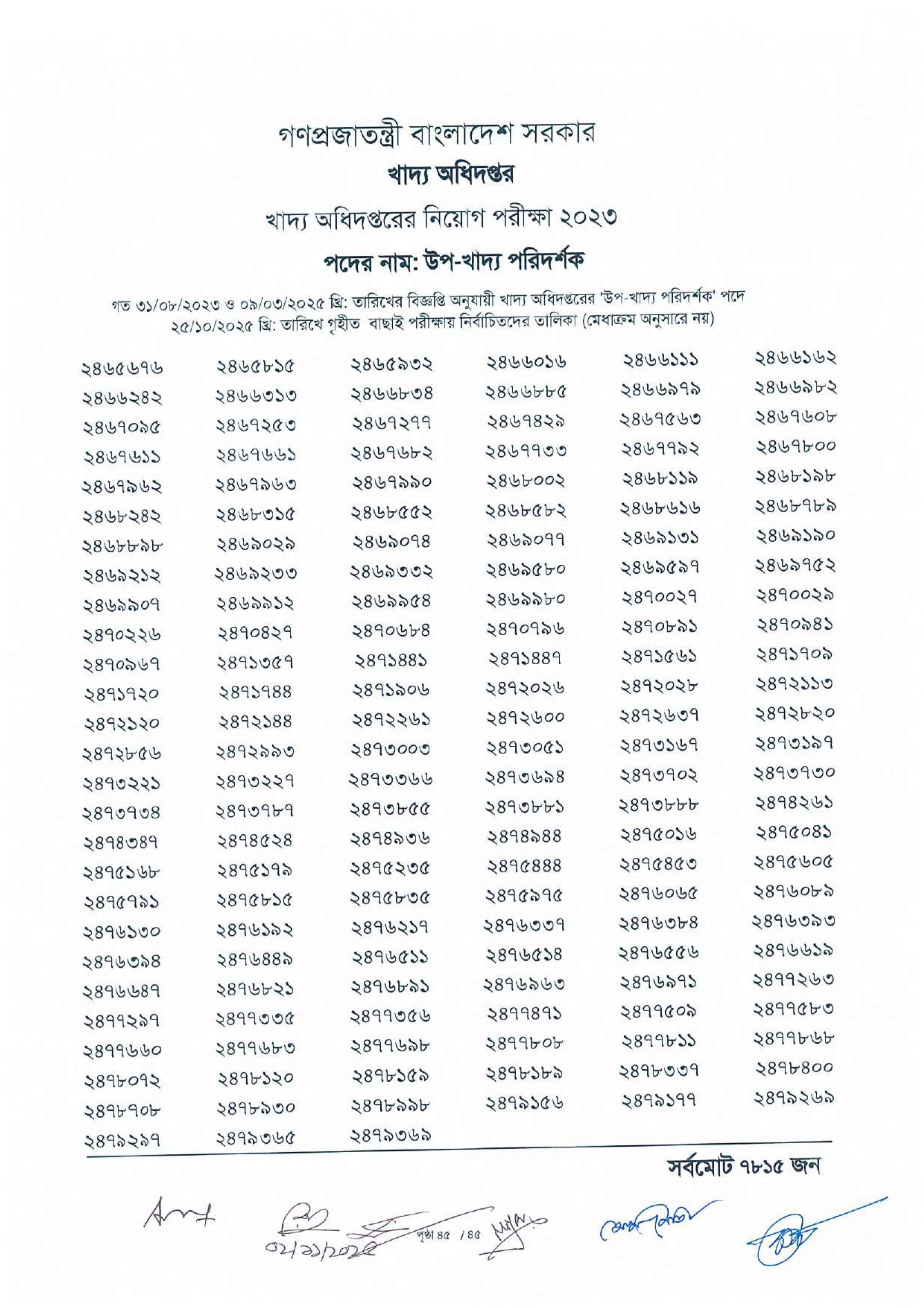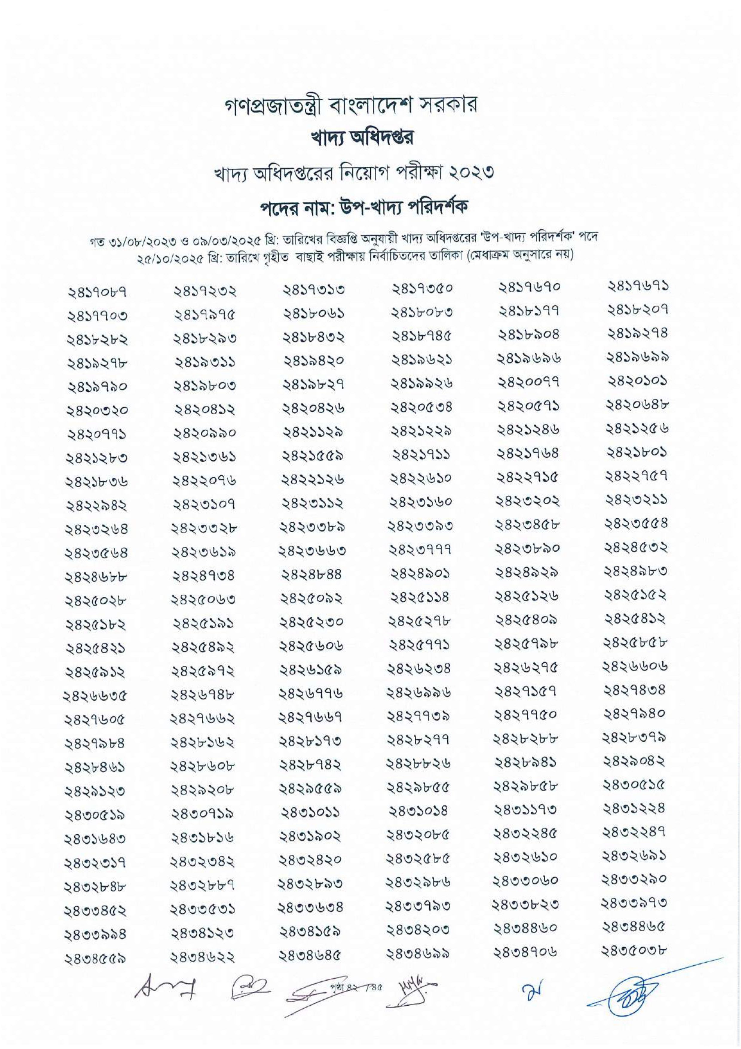 গণপ্রজাতন্ত্রী বাংলাদেশ সরকারের খাদ্য অধিদপ্তর কর্তৃক আয়োজিত উপখাদ্য পরিদর্শক পদের বাছাই পরীক্ষার ফলাফল প্রকাশিত হয়েছে। এই পরীক্ষায় সর্বমোট ৭৮১৫ জন প্রার্থীকে প্রাথমিকভাবে নির্বাচিত করা হয়েছে।
