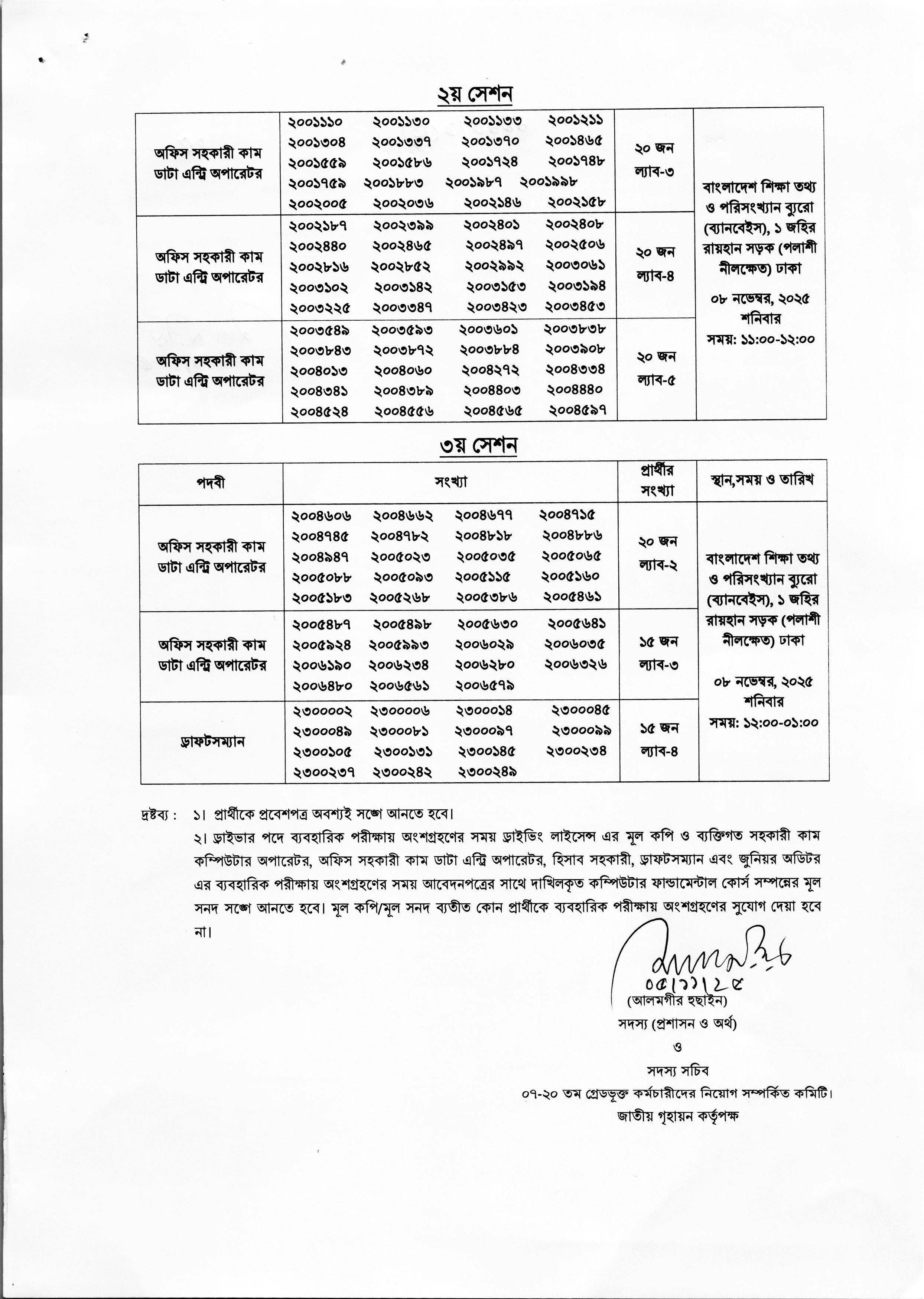 পরীক্ষার স্থান: বাংলাদেশ শিক্ষা তথ্য ও পরিসংখ্যান ব্যুরো (ব্যানবেইস), ১ জহির রায়হান সড়ক (পলাশী নীলক্ষেত), ঢাকা (ল্যাব-২, ল্যাব-৩, ল্যাব-৪, ল্যাব-৫)।
