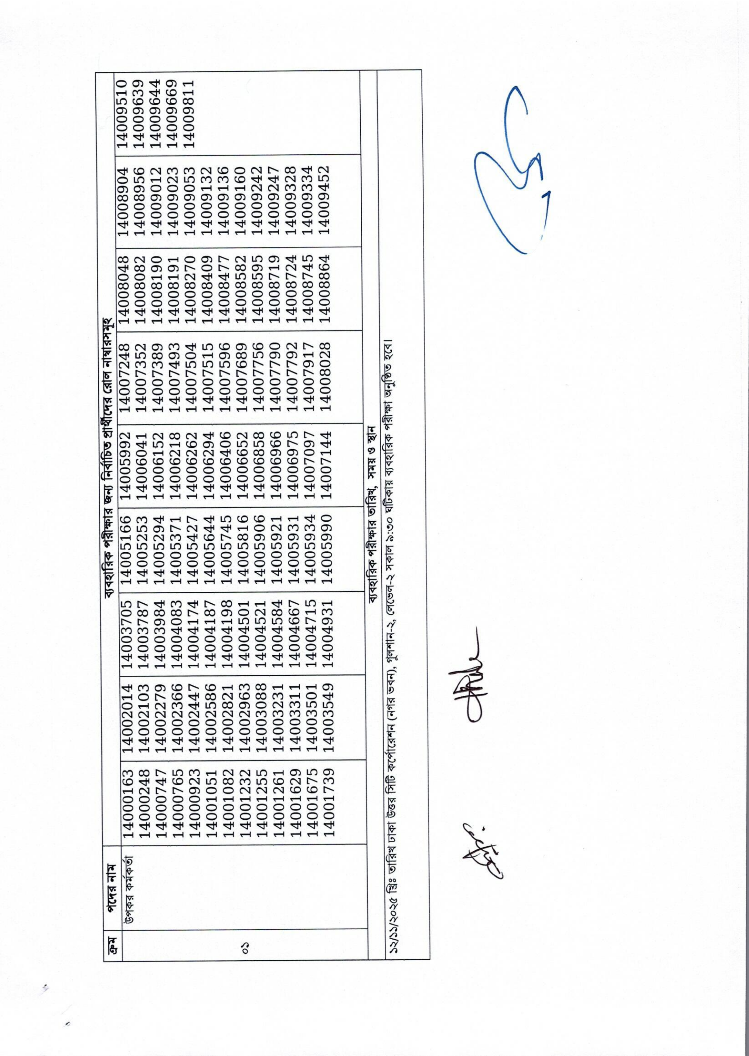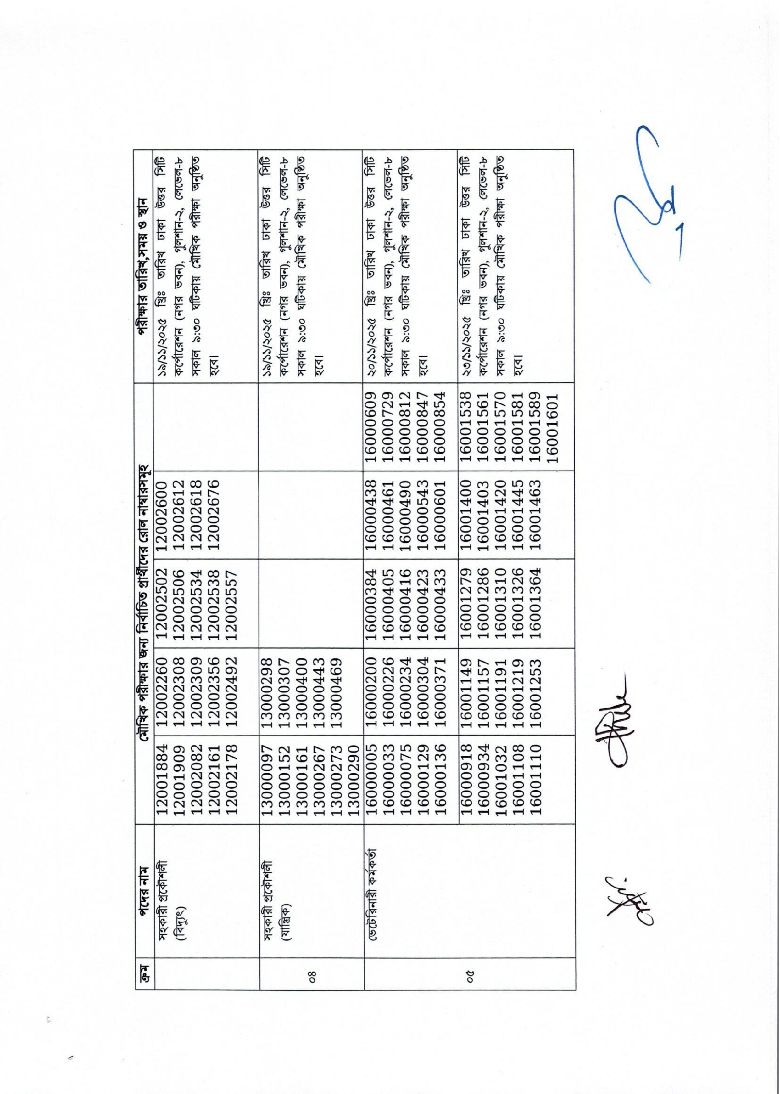 লিখিত পরীক্ষায় উত্তীর্ণ প্রার্থীদের মৌখিক ও ব্যবহারিক (প্রযোজ্য ক্ষেত্রে) পরীক্ষার সময়সূচি ও স্থান সংযুক্ত তালিকায় উল্লিখিত আছে।