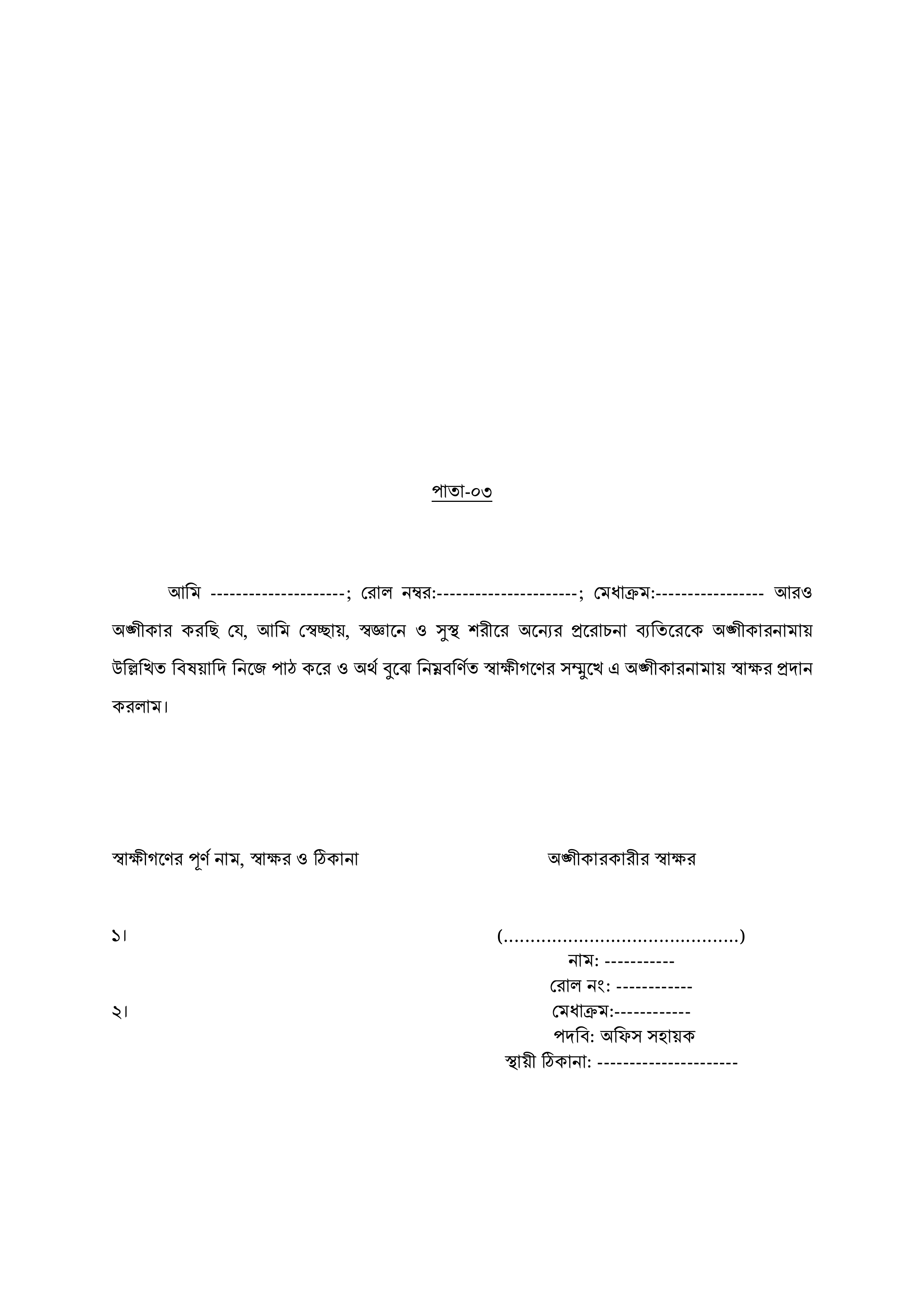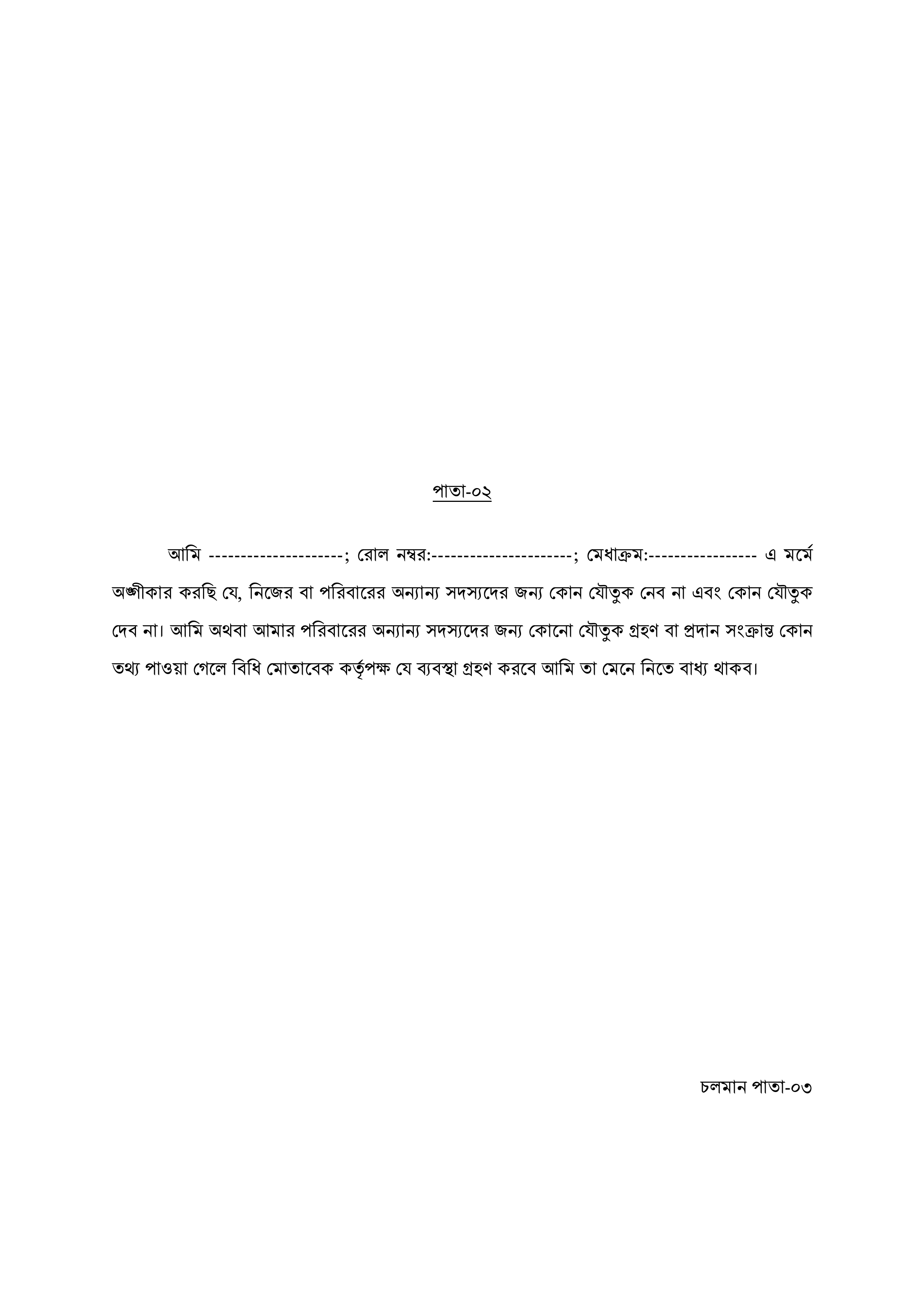 • ৩০০/- টাকার নন-জুডিশিয়াল স্ট্যাম্পে যৌতুক না নেওয়া ও না দেওয়ার বিষয়ে মুচলেকা এবং সকল স্থাবর-অস্থাবর সম্পত্তির বিবরণ সম্বলিত একটি ঘোষণাপত্র জমা দিতে হবে।
