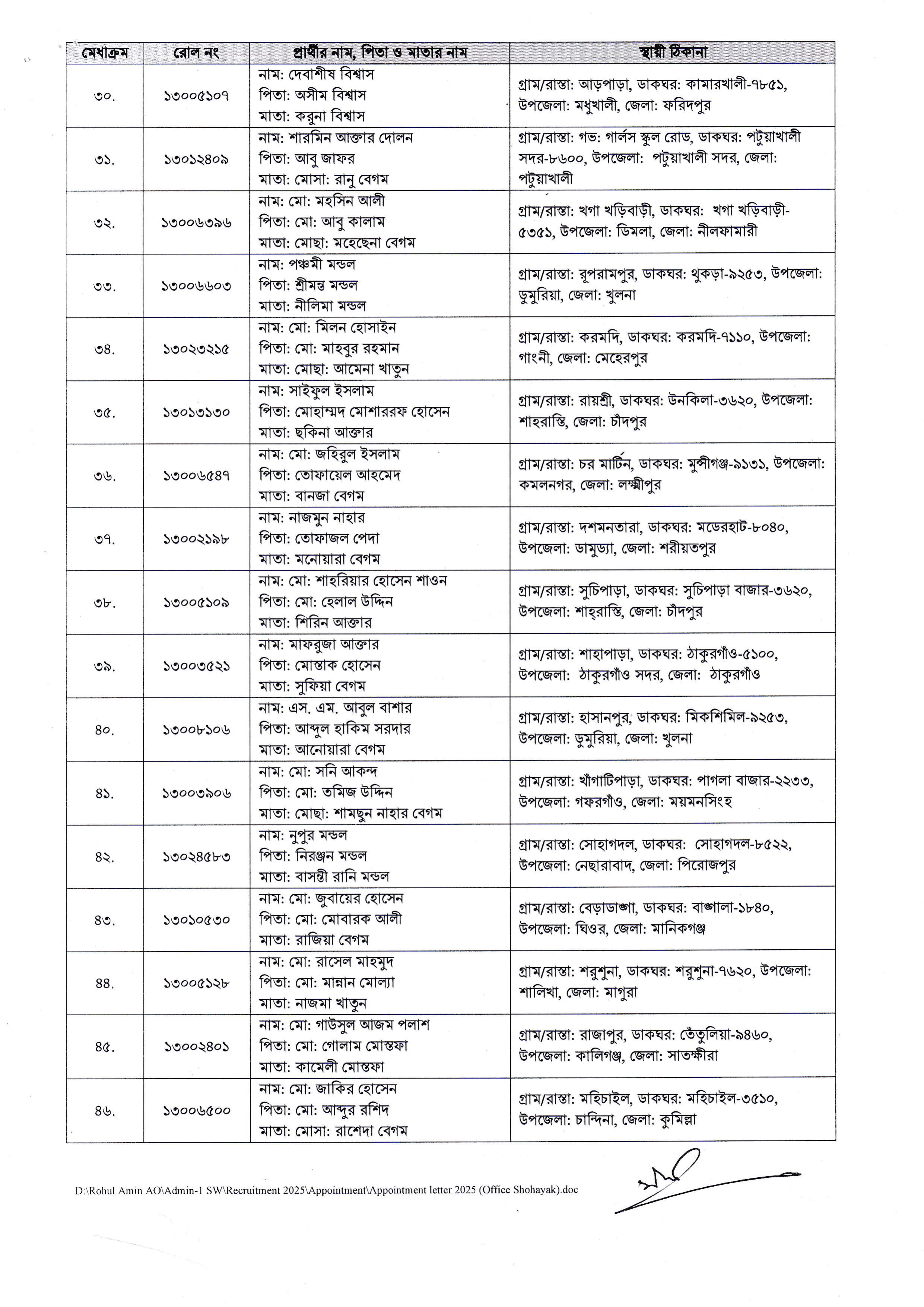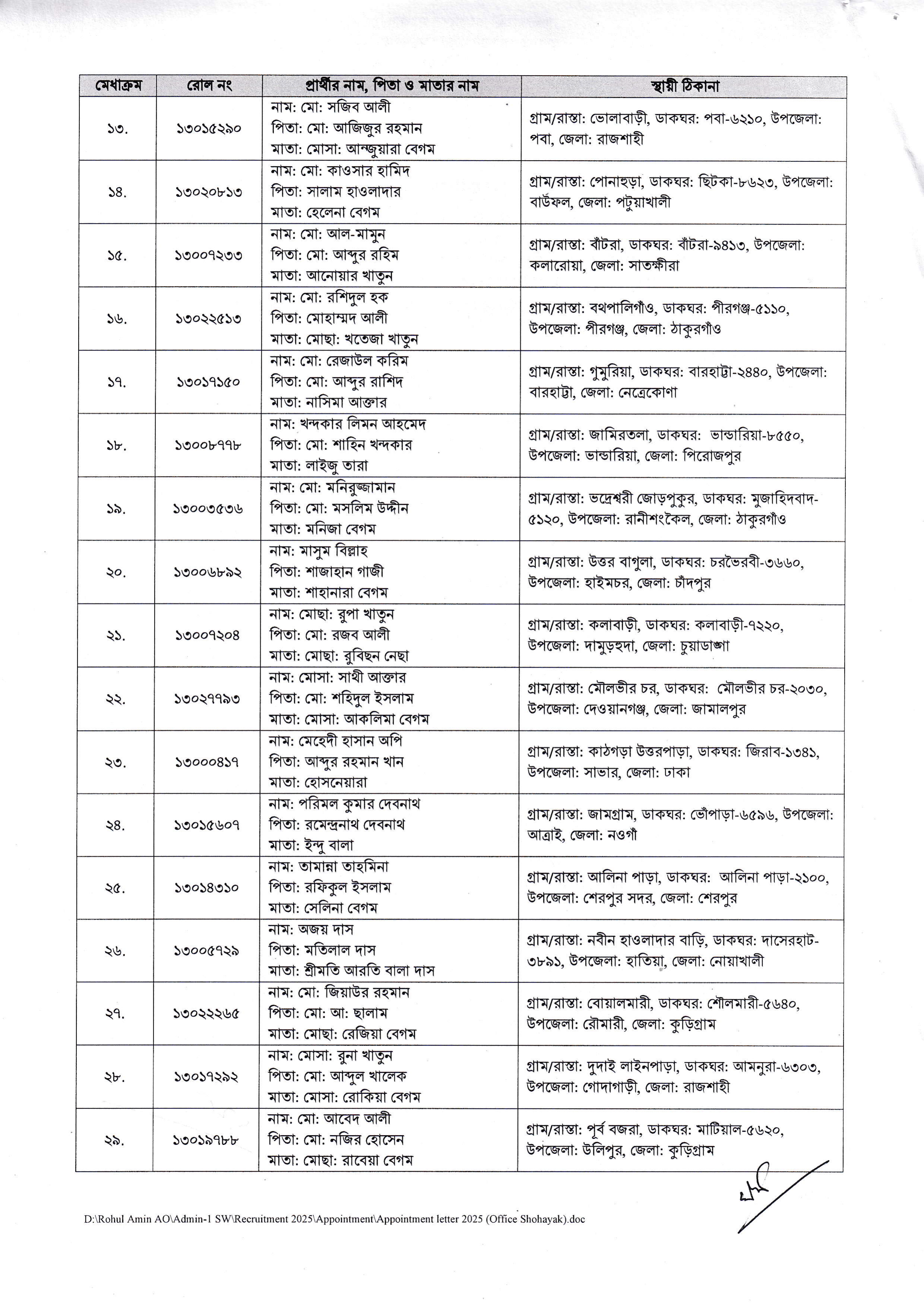• নির্ধারিত সময়ের মধ্যে যোগদানে ব্যর্থ হলে এই নিয়োগপত্র বাতিল বলে গণ্য হবে।