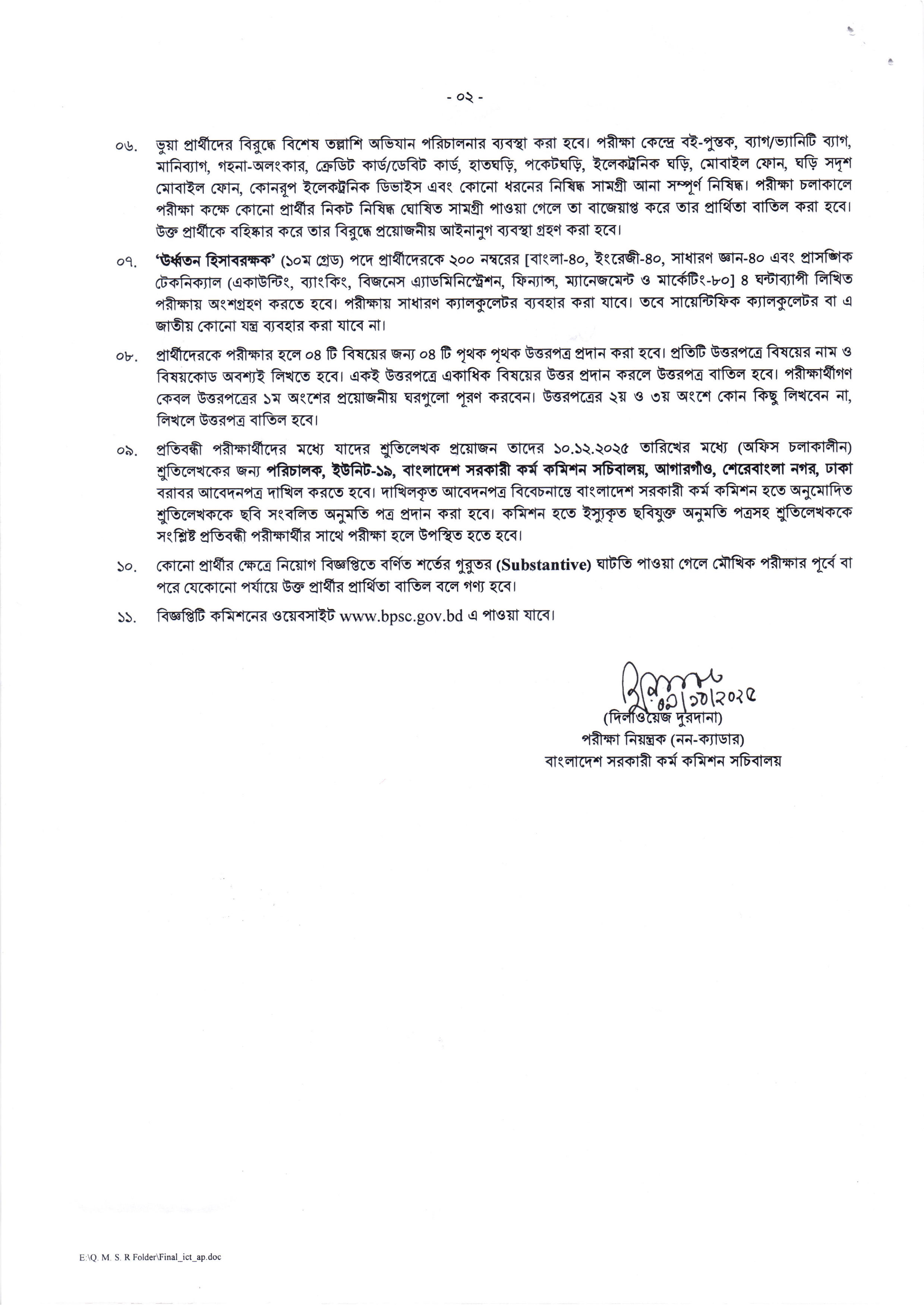 প্রতিবন্ধী পরীক্ষার্থীদের মধ্যে যাদের শ্রুতিলেখক প্রয়োজন, তাদের ১০.১২.২০২৫ তারিখের মধ্যে (অফিস চলাকালীন) পরিচালক, ইউনিট-১৯, বাংলাদেশ সরকারী কর্ম কমিশন সচিবালয় বরাবর আবেদনপত্র দাখিল করতে হবে।