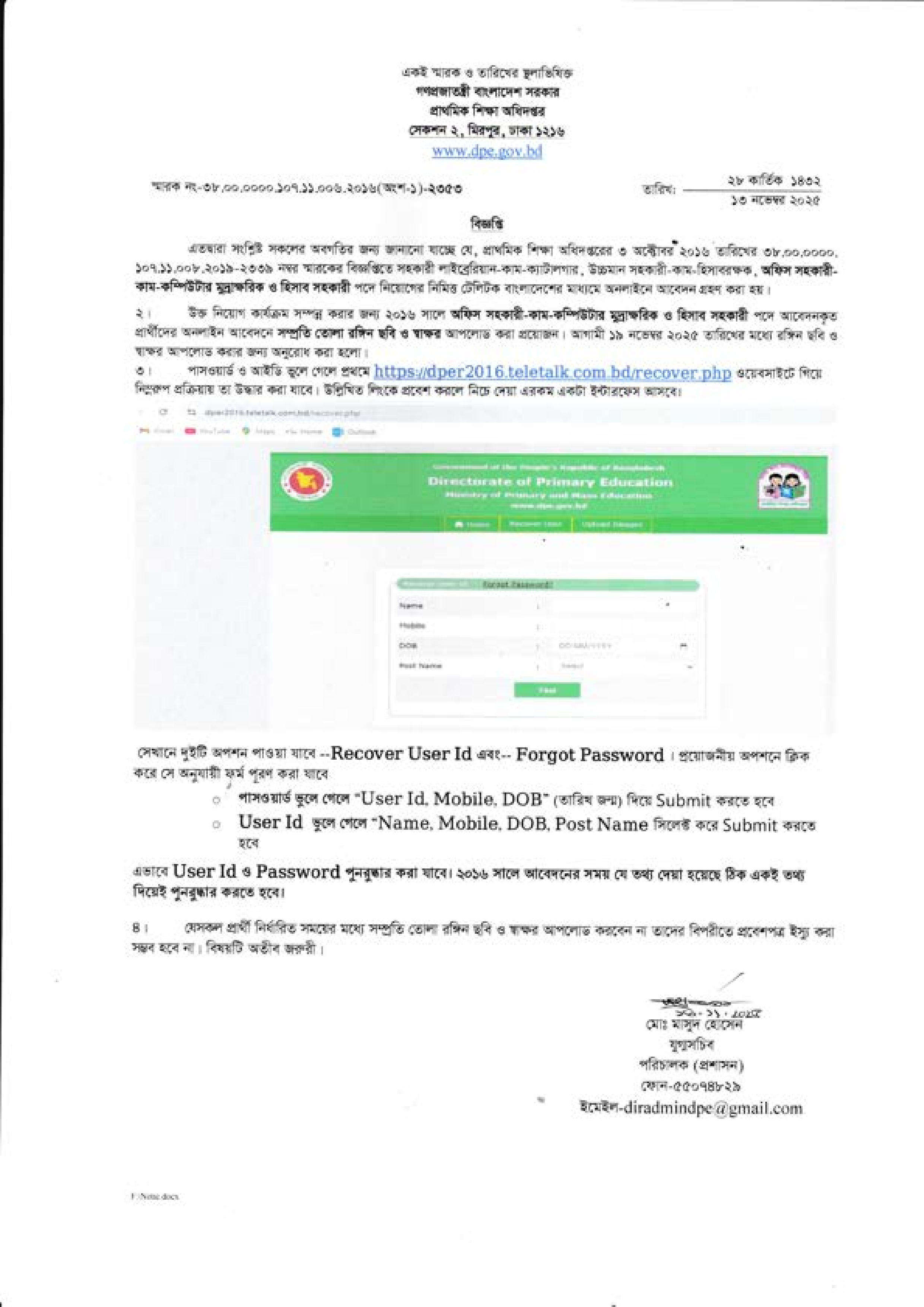 যদি কোনো প্রার্থী তার পাসওয়ার্ড বা ইউজার আইডি ভুলে যান, তবে বিজ্ঞপ্তিতে প্রদত্ত নির্দেশনা অনুসরণ করে তা পুনরুদ্ধার করতে পারবেন।